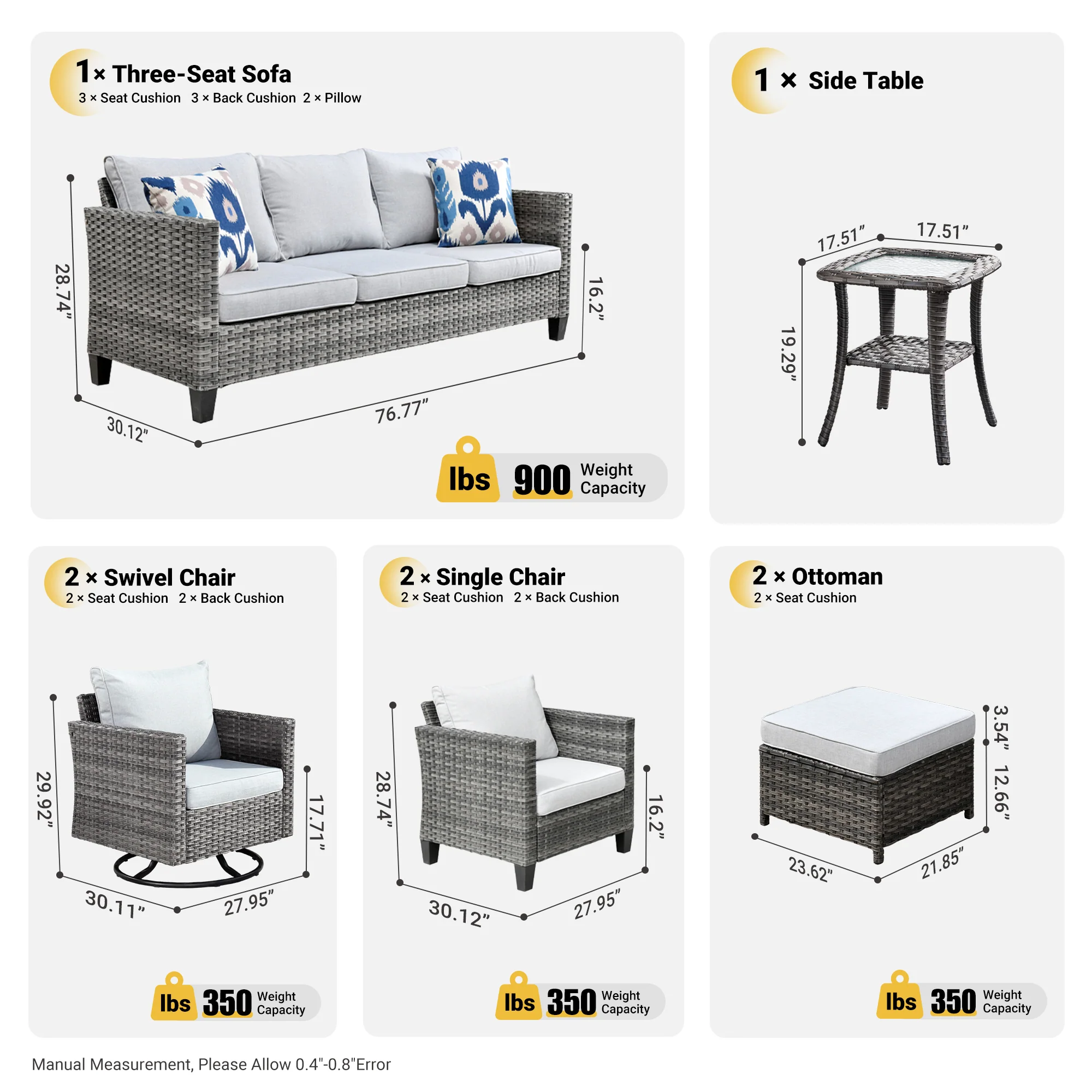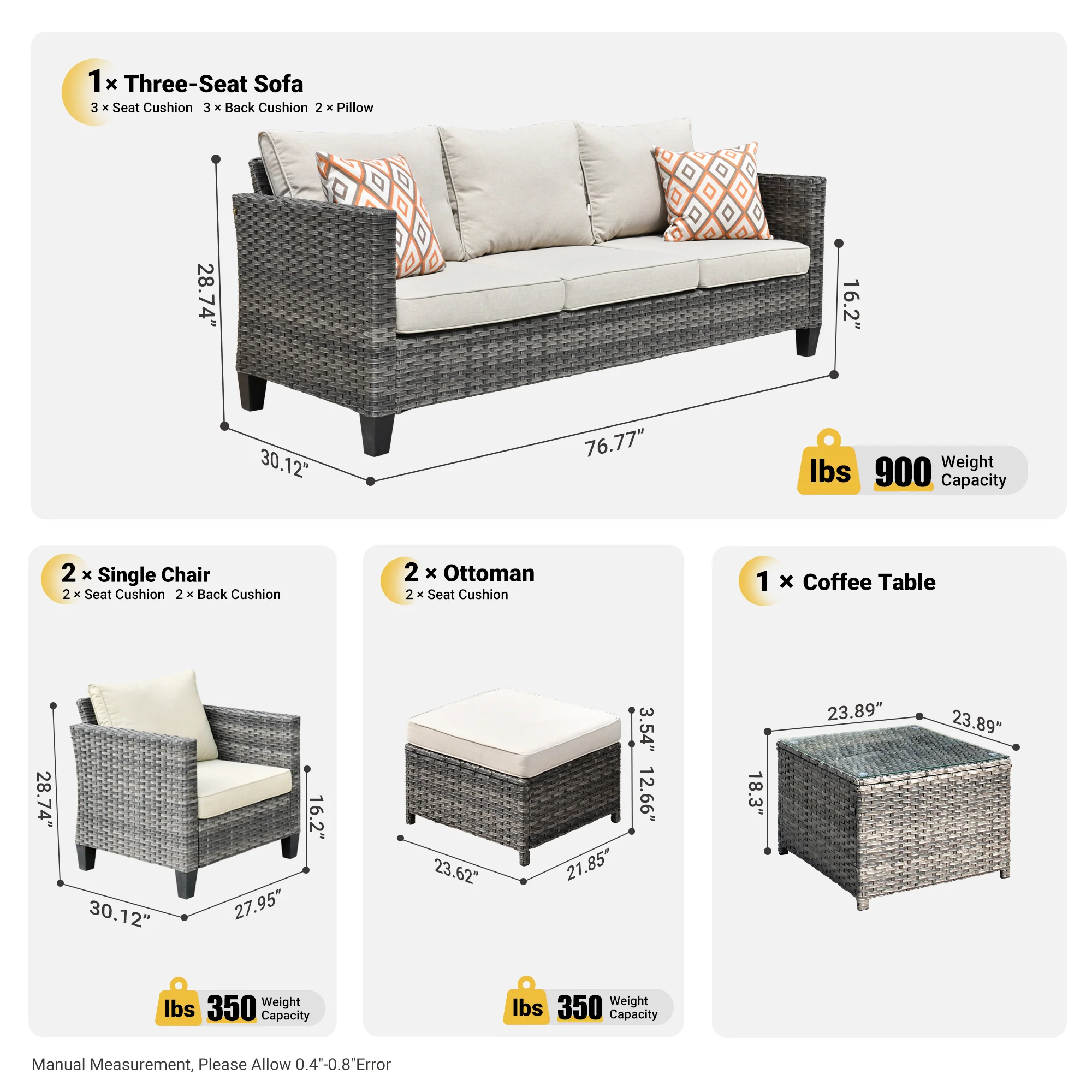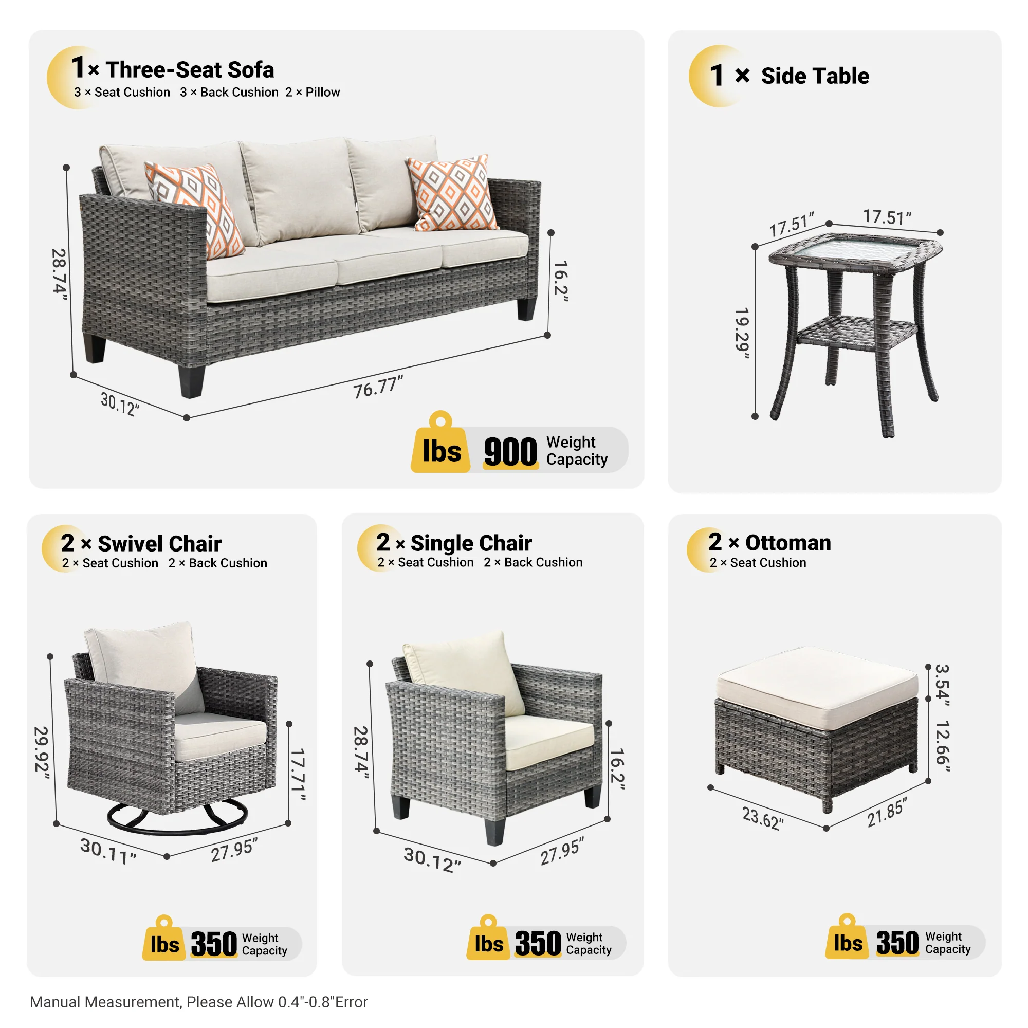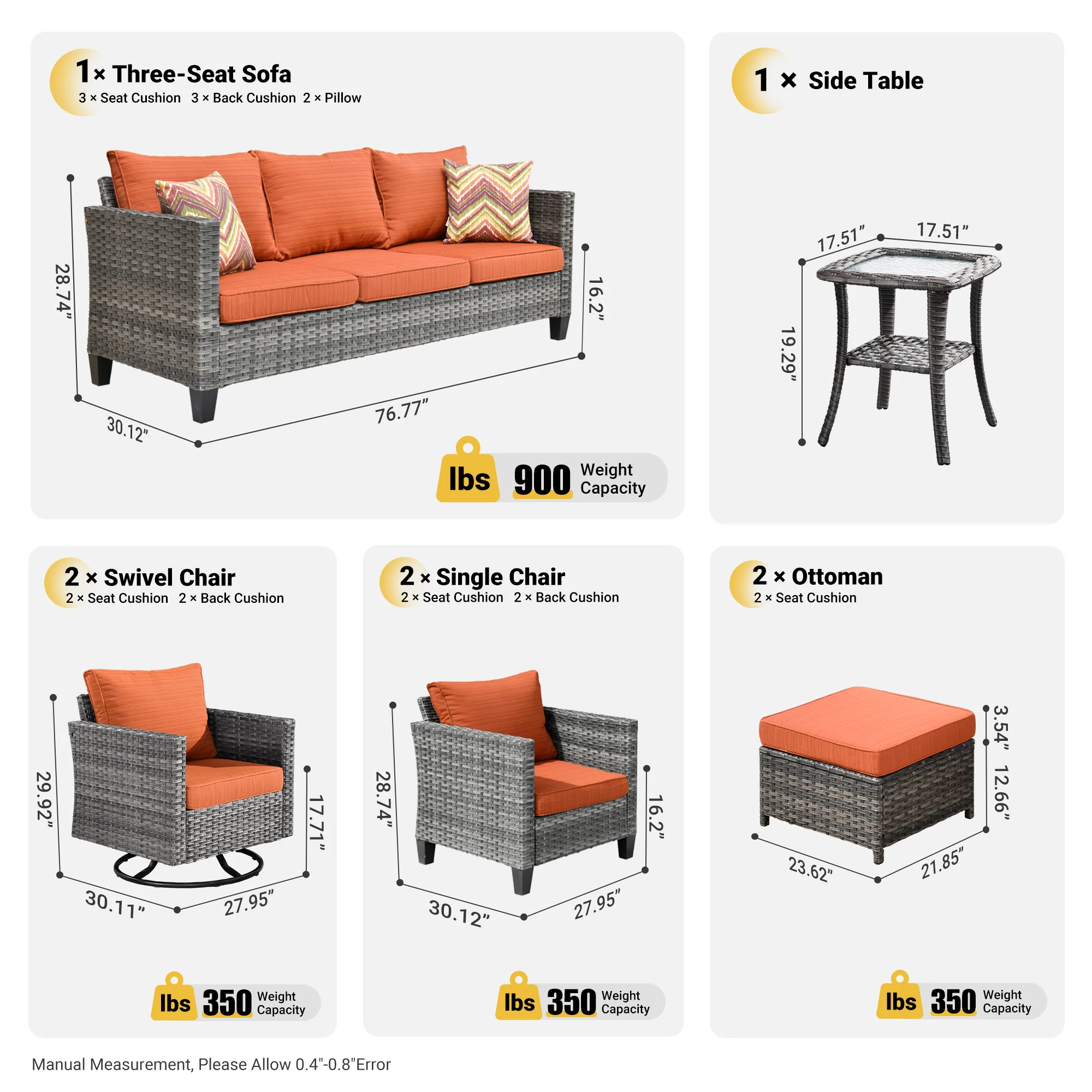 Ovios Patio Furniture Set Bigger Size Sunbrella 12-Piece, King Series, Fully Assembled, Couch is Separate