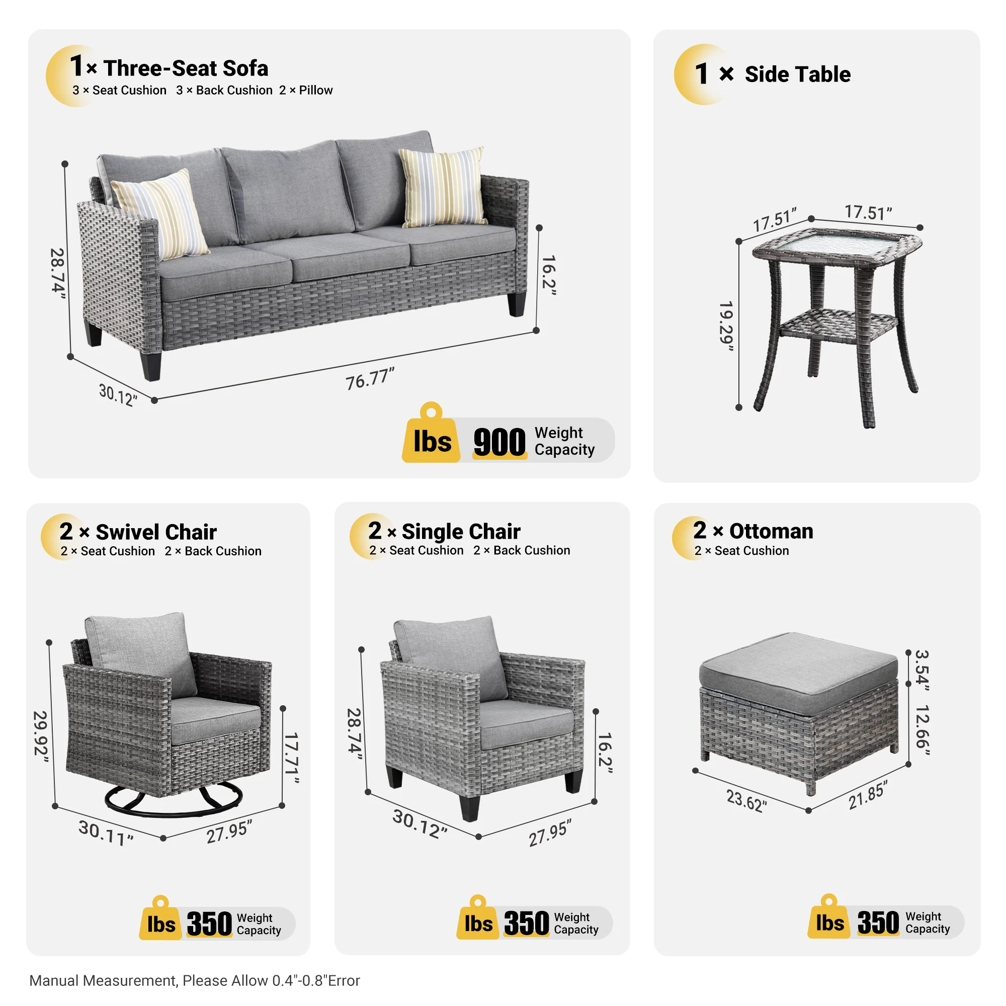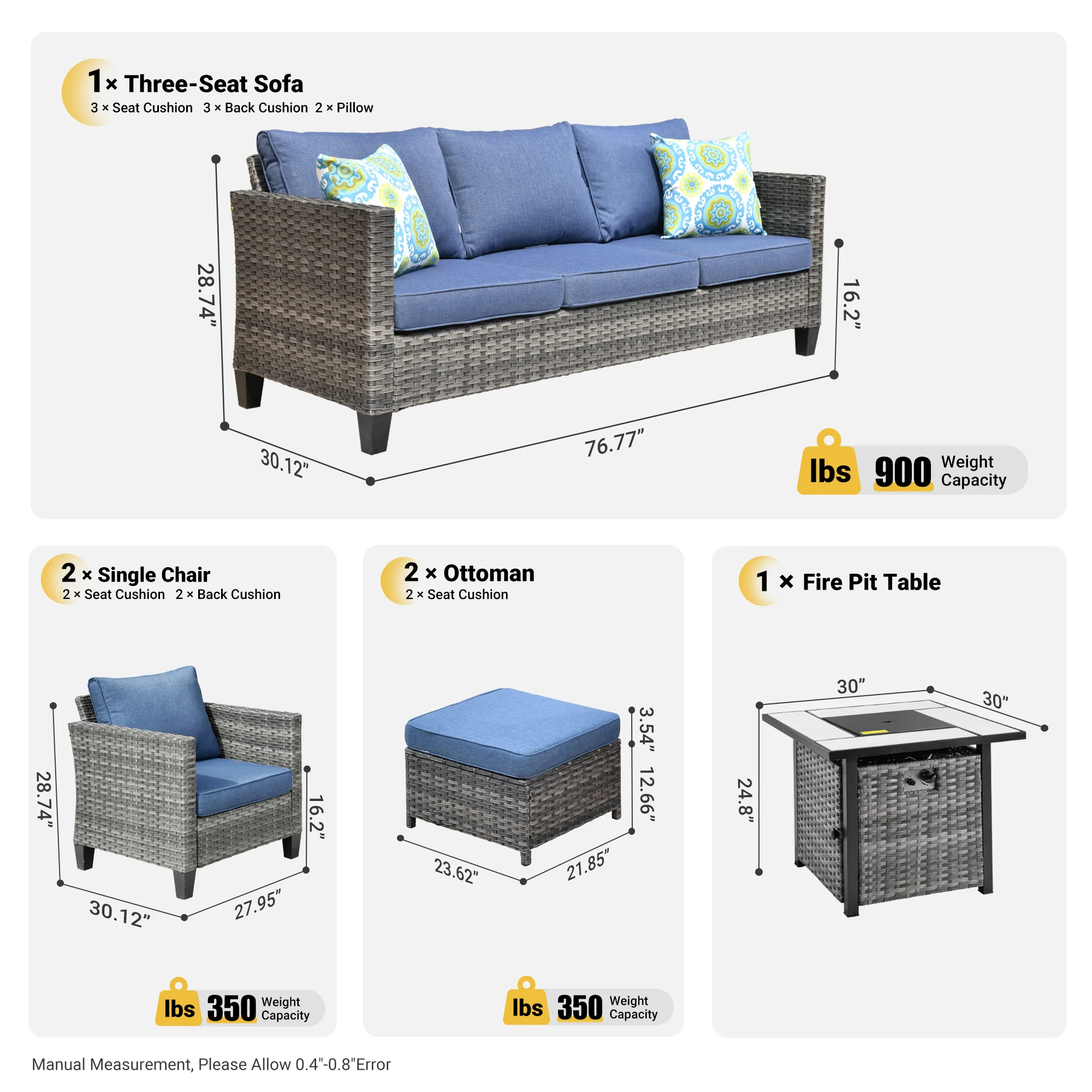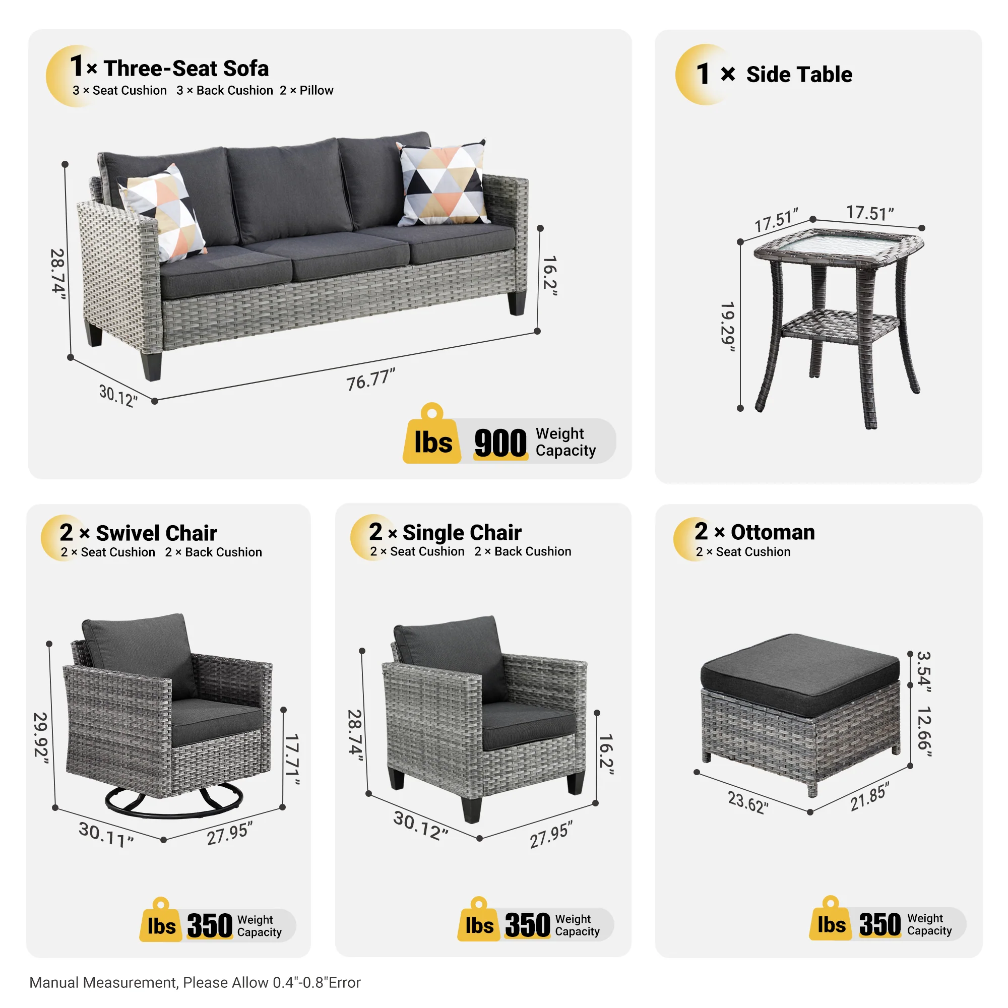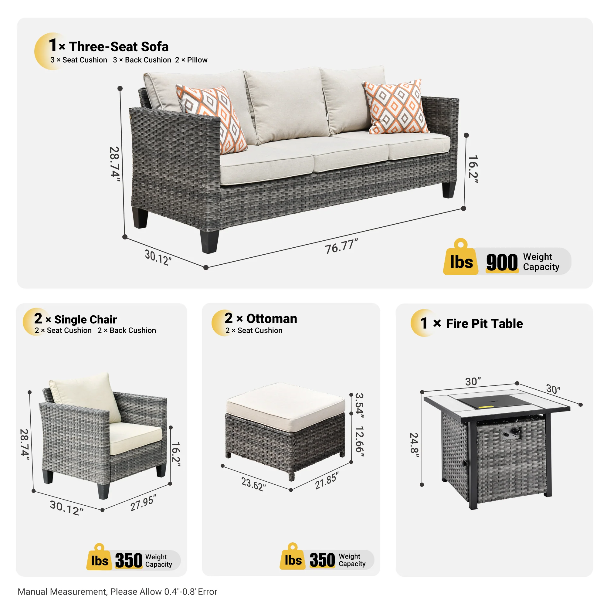Ovios Patio Furniture Set Bigger Size Sunbrella 12-Piece, King Series, Fully Assembled, Couch is Separate
