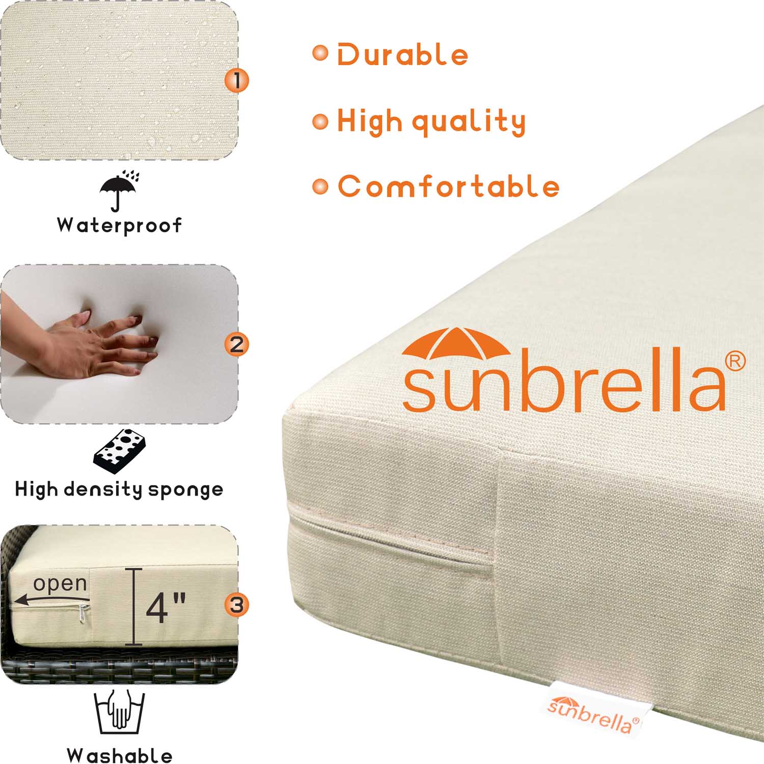 Ovios Replacement Seat Back Cushions Set with Olefin Fabric and Zipper, 25'' x 25'', Not suitable for Ovios Patio Furniture