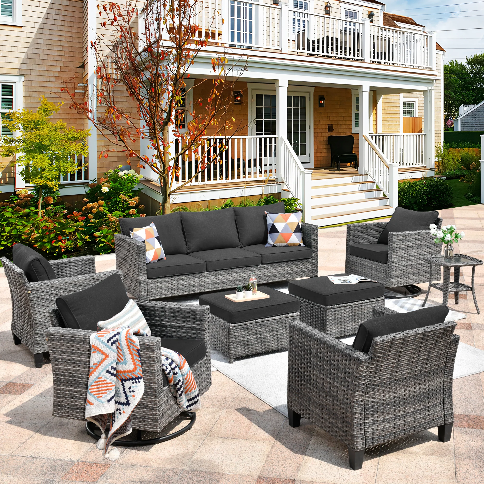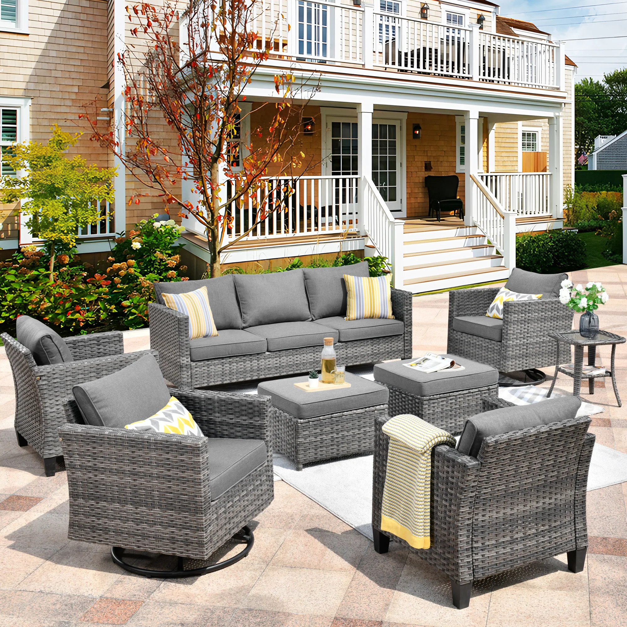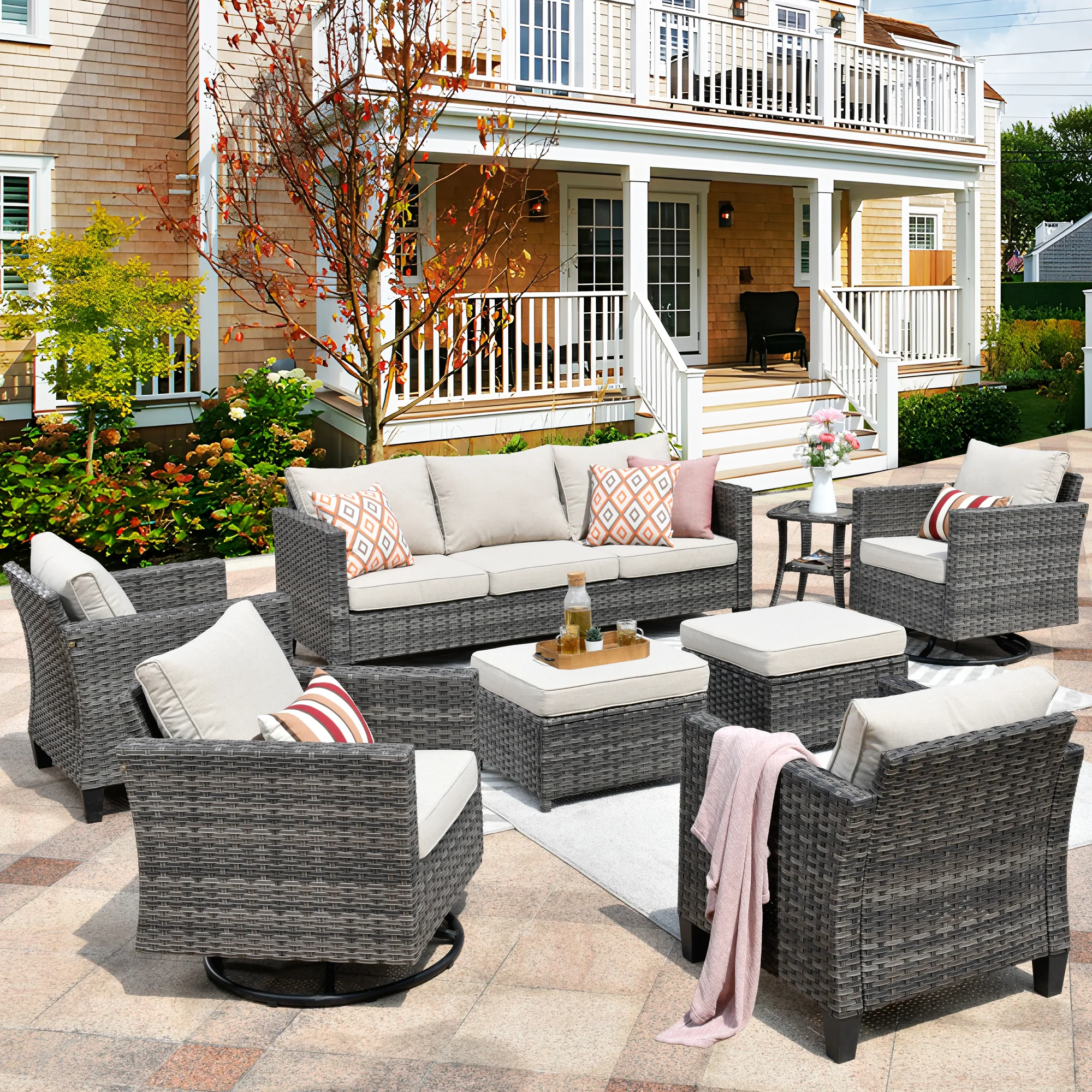 Ovios Patio Conversation Set 8-Piece with Swivel Rocking Chairs and Table
