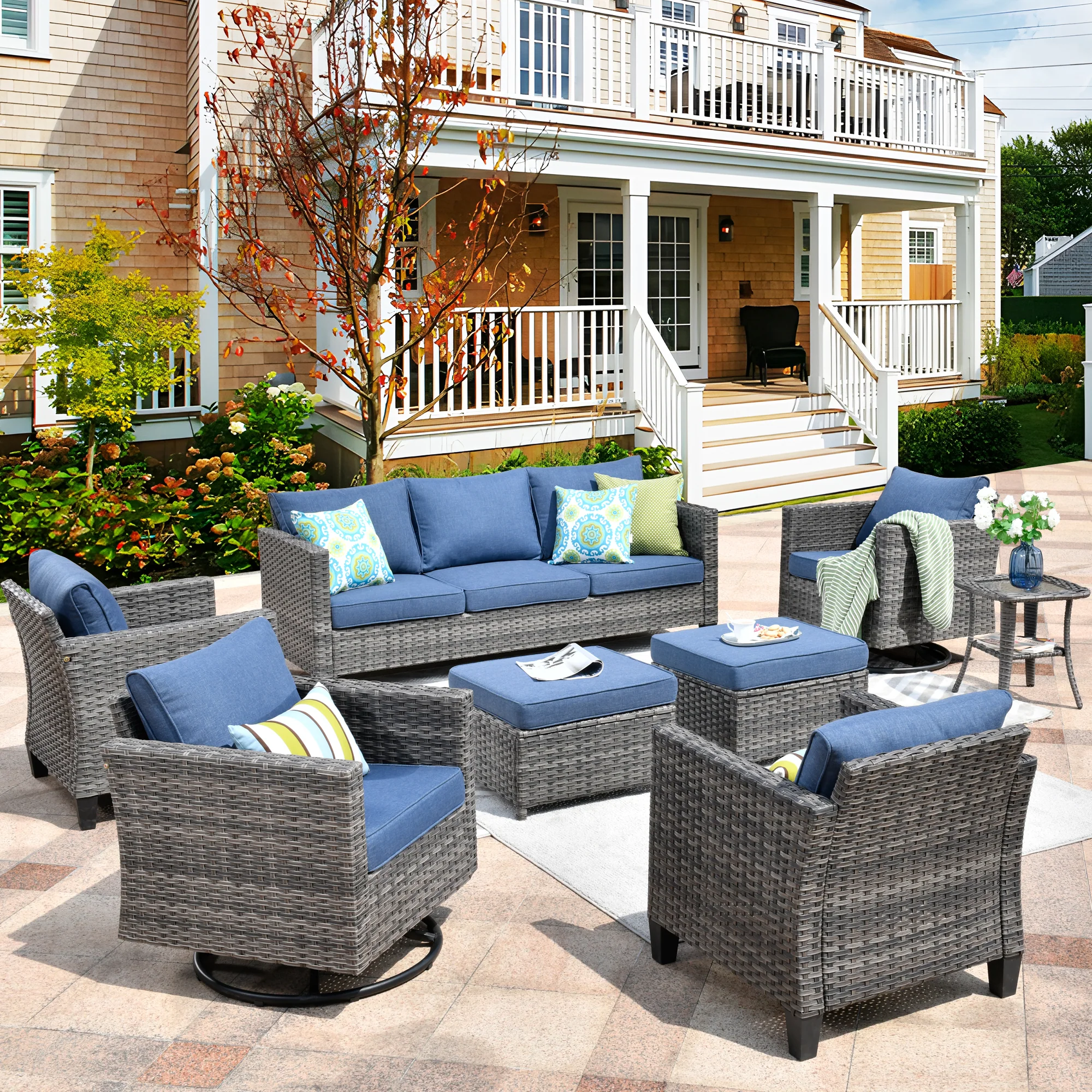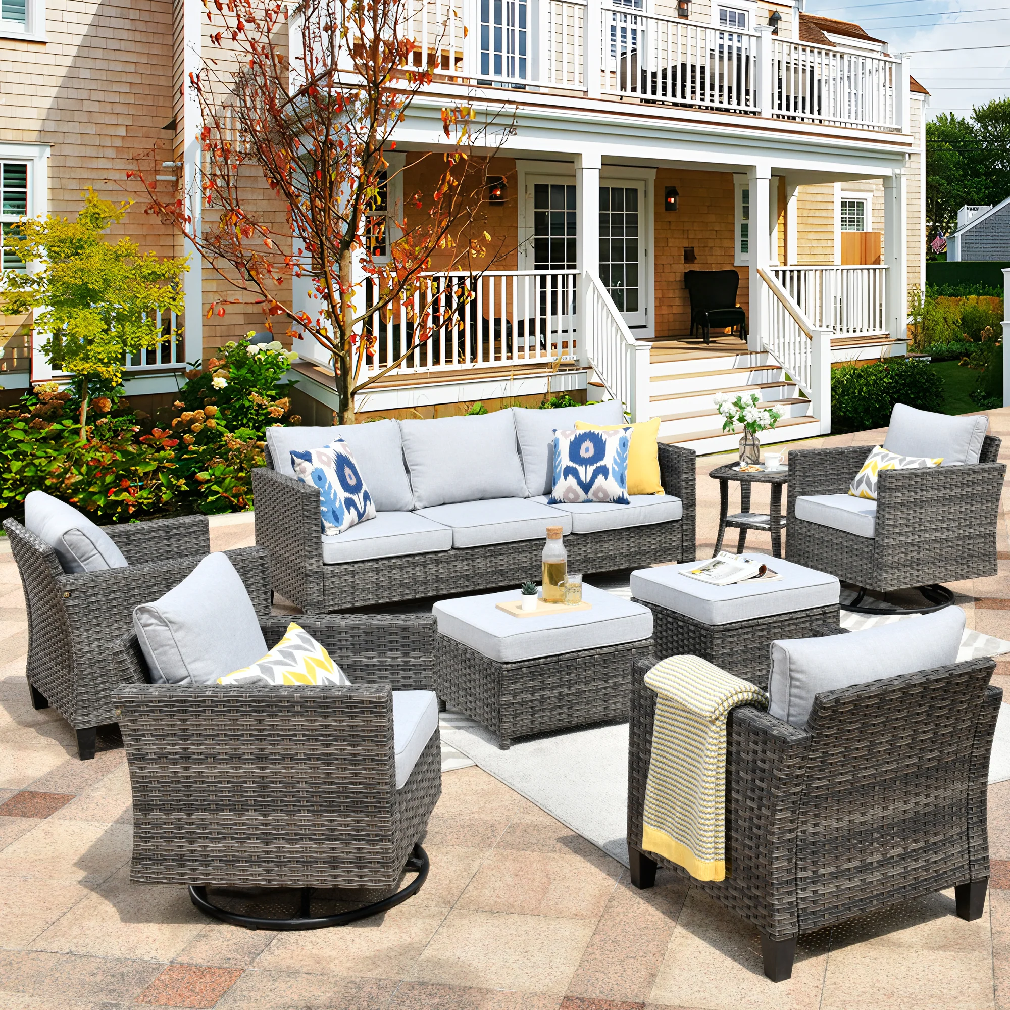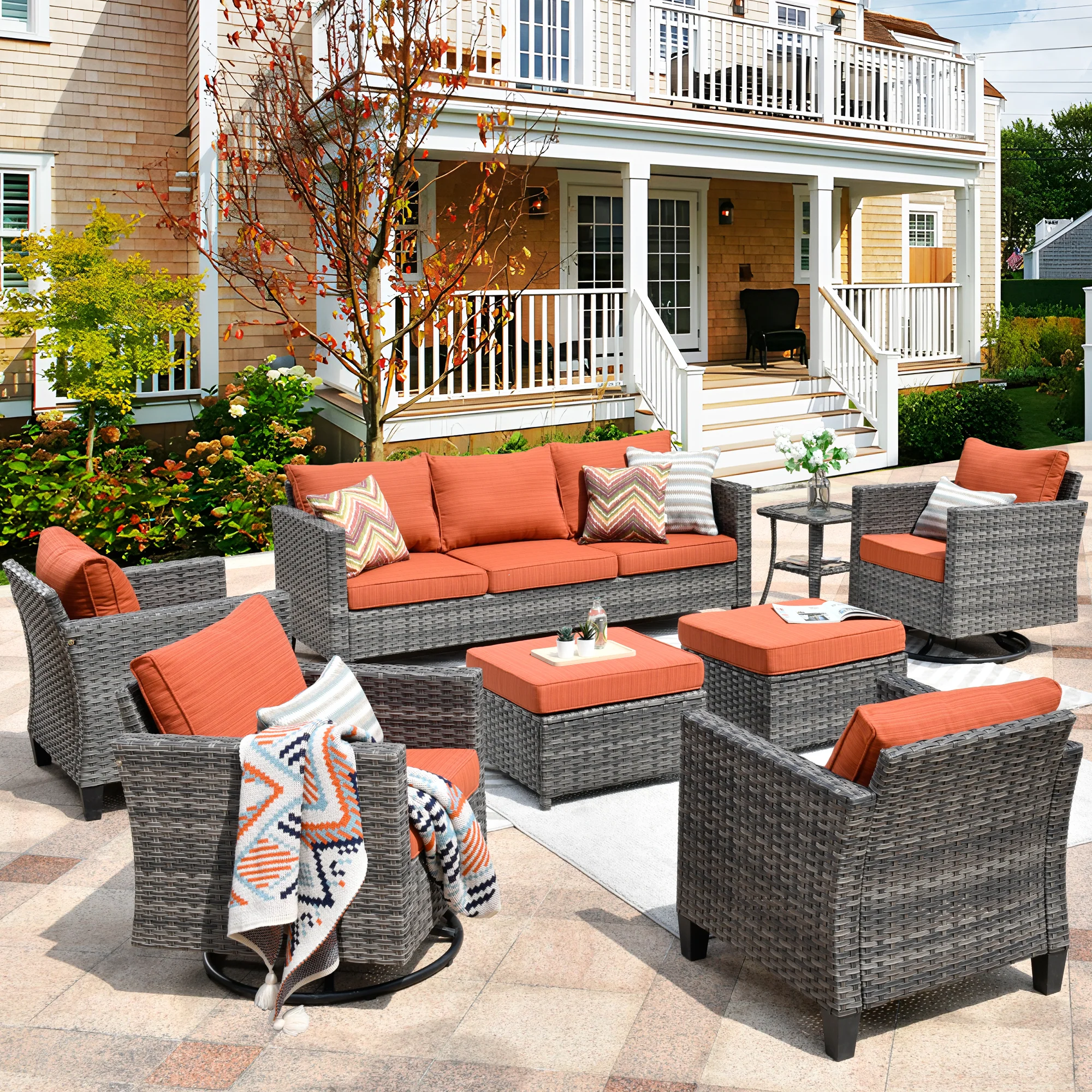 Ovios Patio Conversation Set 8-Piece with Swivel Rocking Chairs and Table