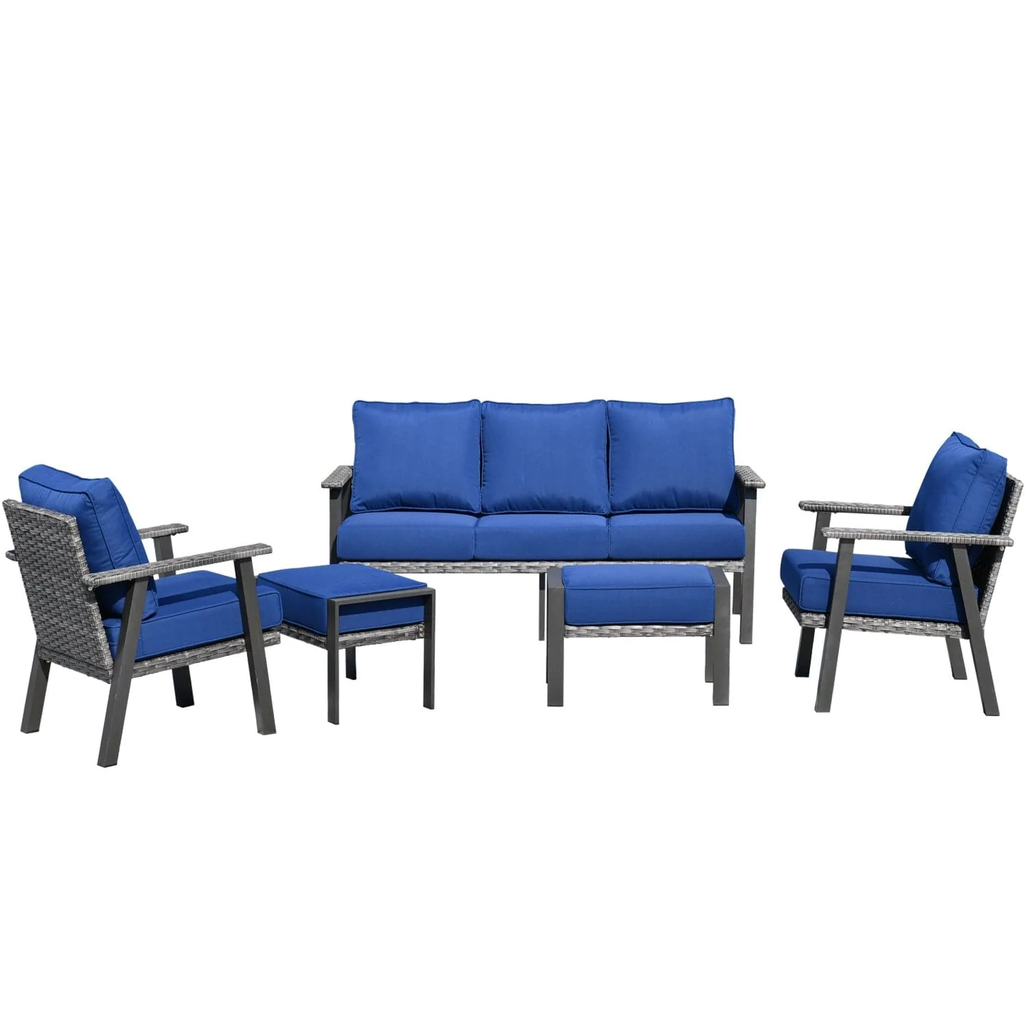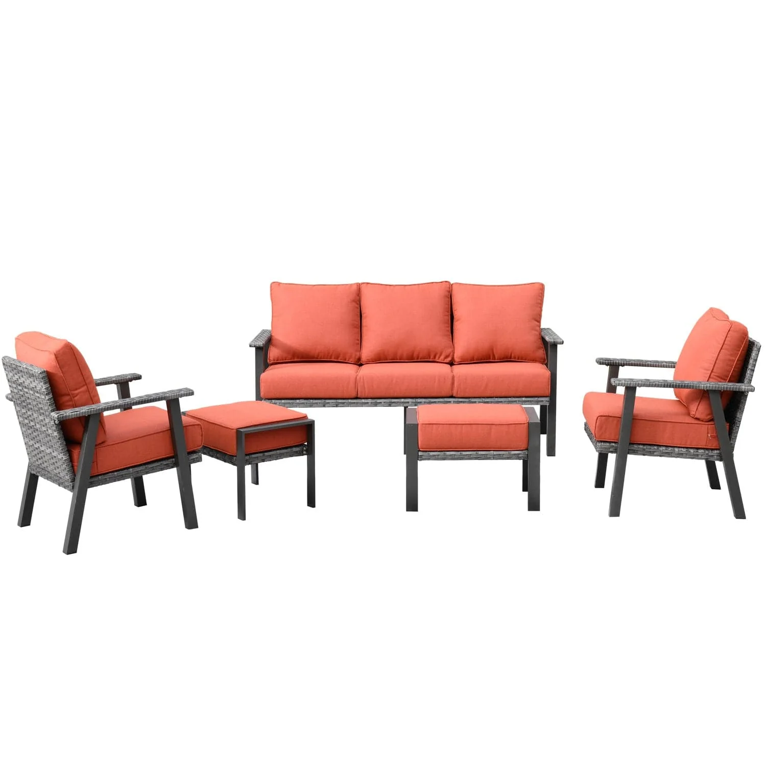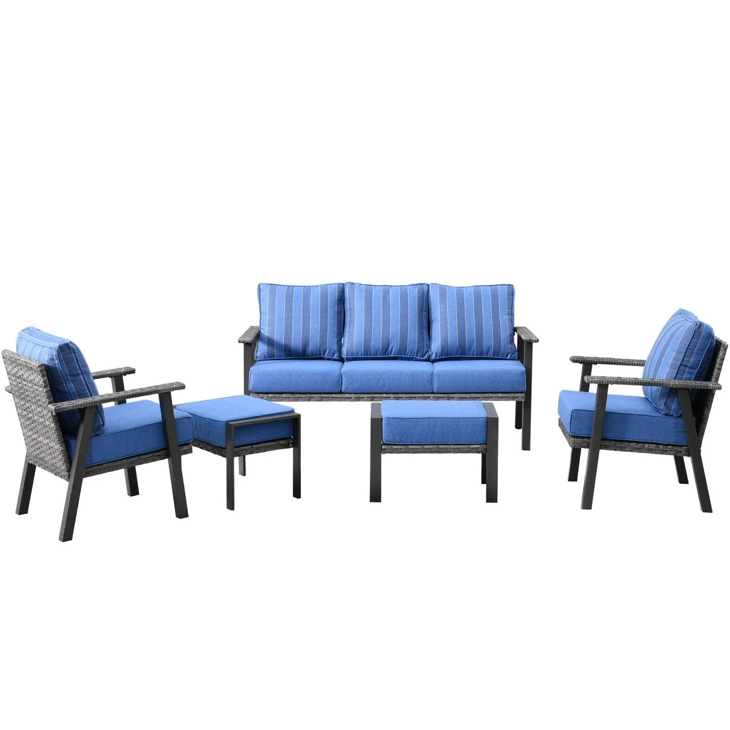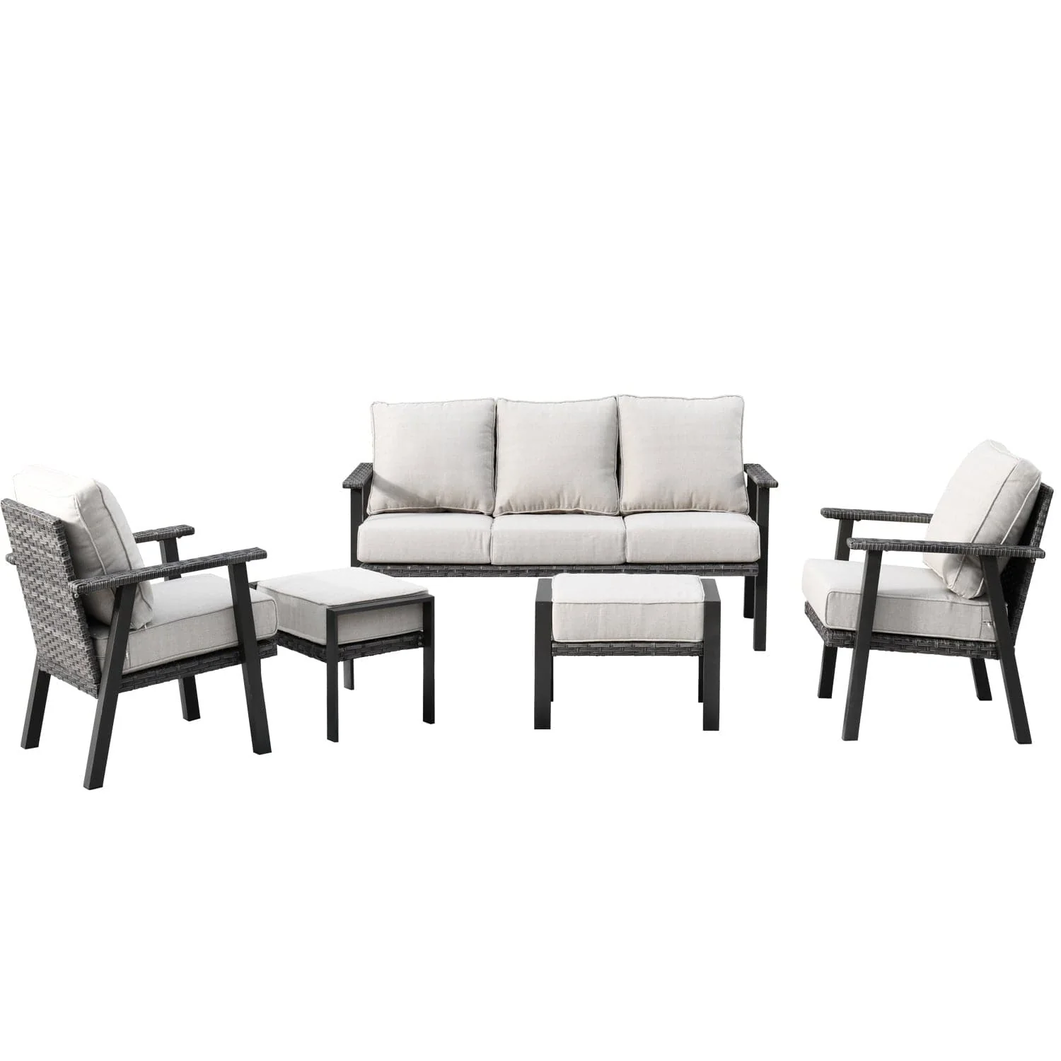 Ovios Patio Conversation Set 5 Piece with 2 Ottoman and 5'' Cushion, Olefin Fabric