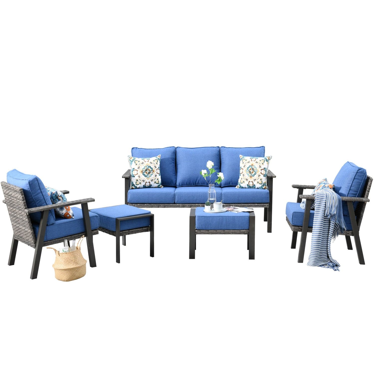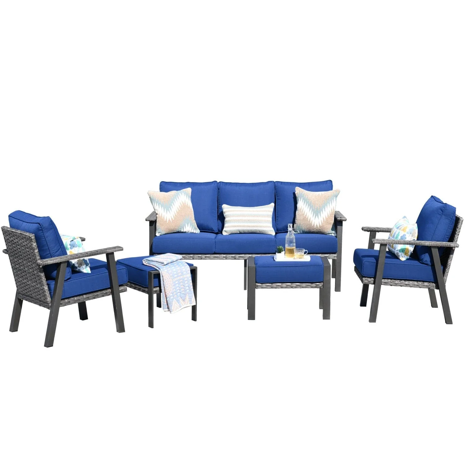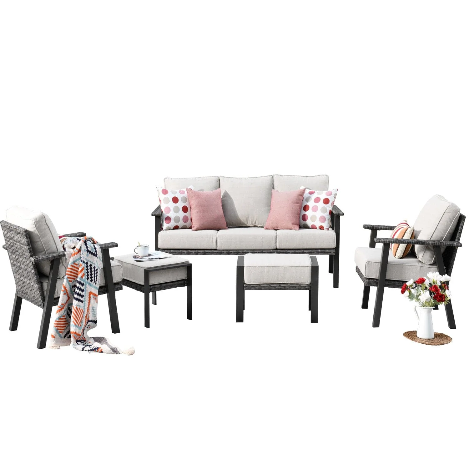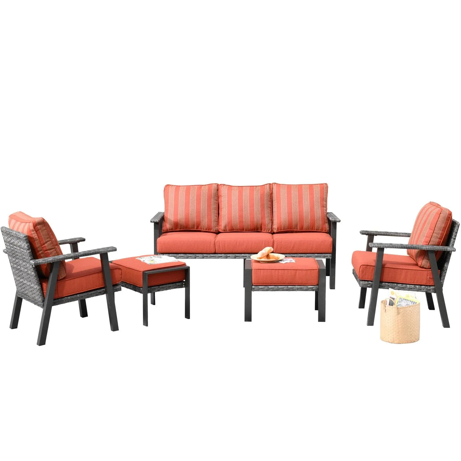 Ovios Patio Conversation Set 5 Piece with 2 Ottoman and 5'' Cushion, Olefin Fabric