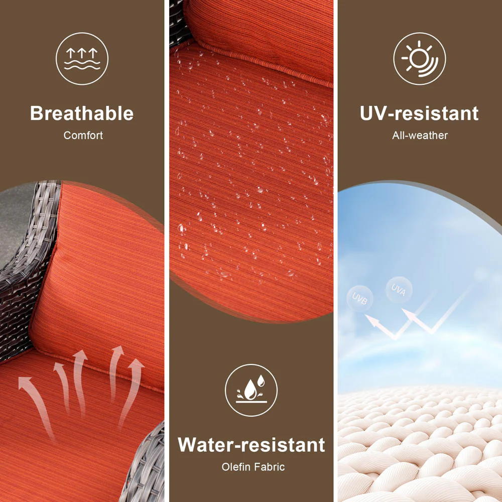 Ovios Patio Furniture Set 6-Piece with Swivel Rocking Chairs and Table