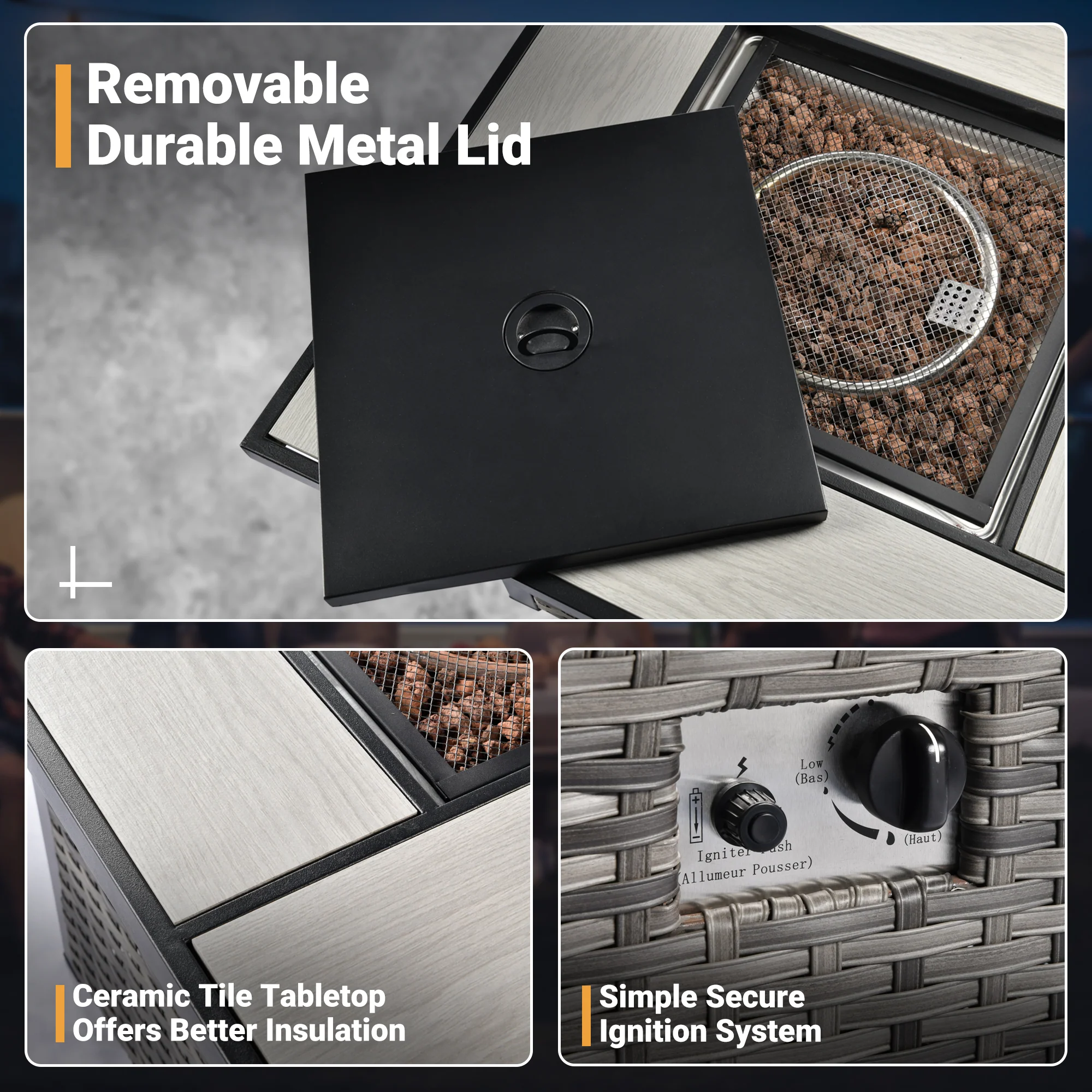 Ovios Patio Conversation Set 6-Piece with 30'' Fire Pit Table and Vultros Set