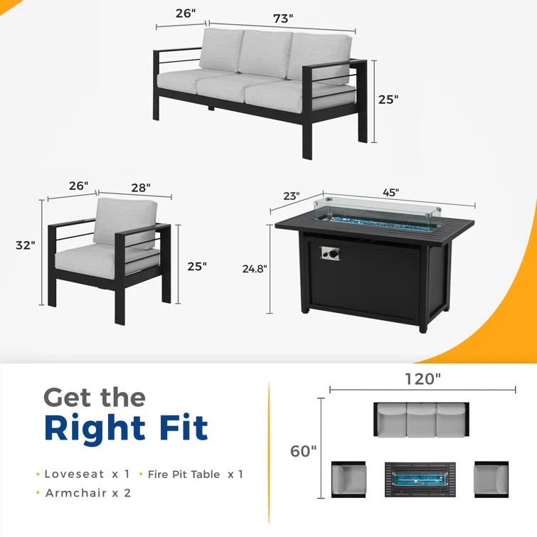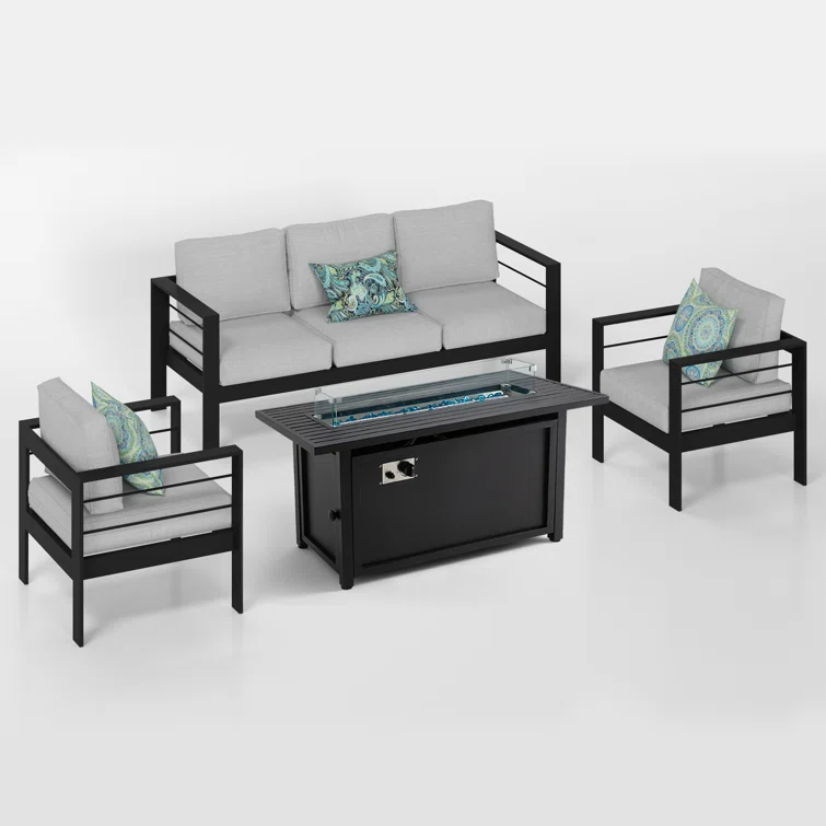 5 - Person Sofa Seating Group With Cushions and Fire Pit Table