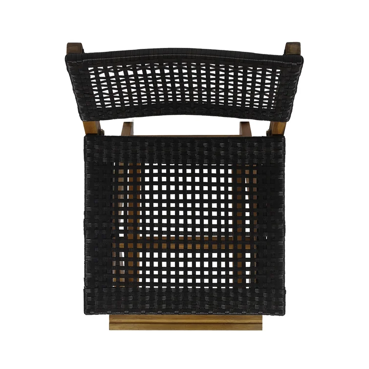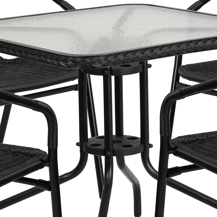 Amlie 28'' Square Glass Metal Table with Rattan Edging and 4 Rattan Stack Chairs
