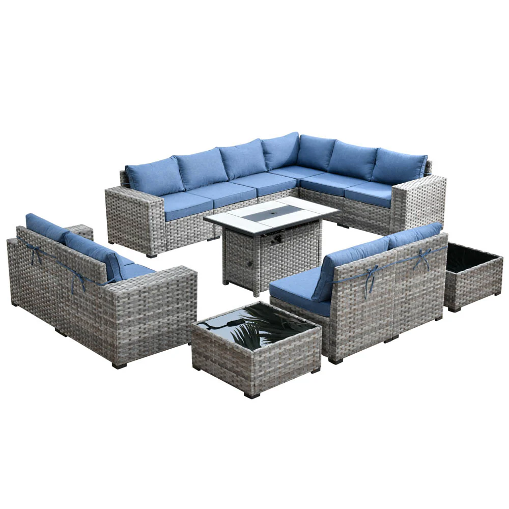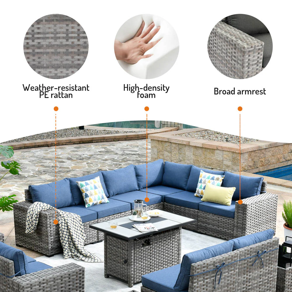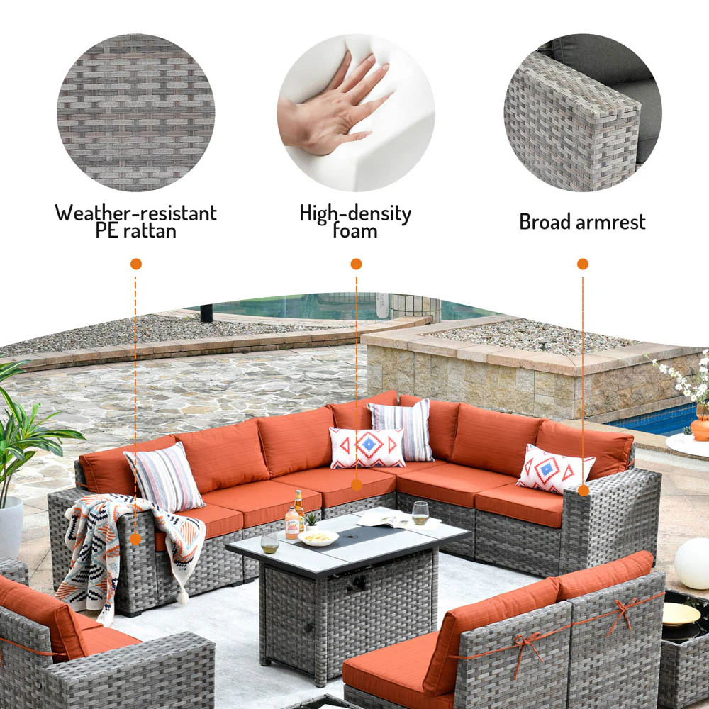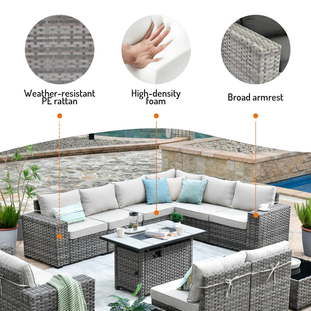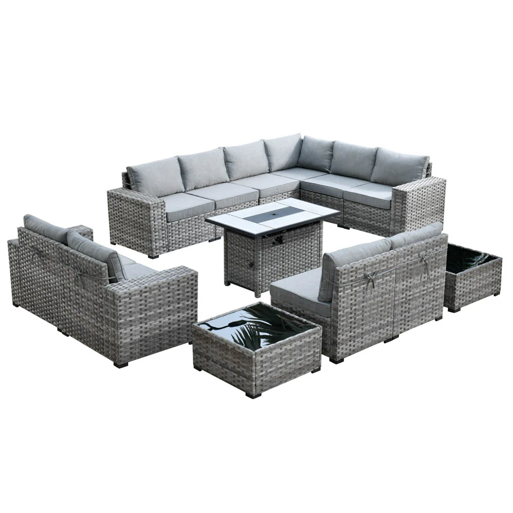 Ovios 13 Pieces Outdoor Furniture with 7.68'' Broad Handrails and Rectangle 42.12'' Fire Pit Table