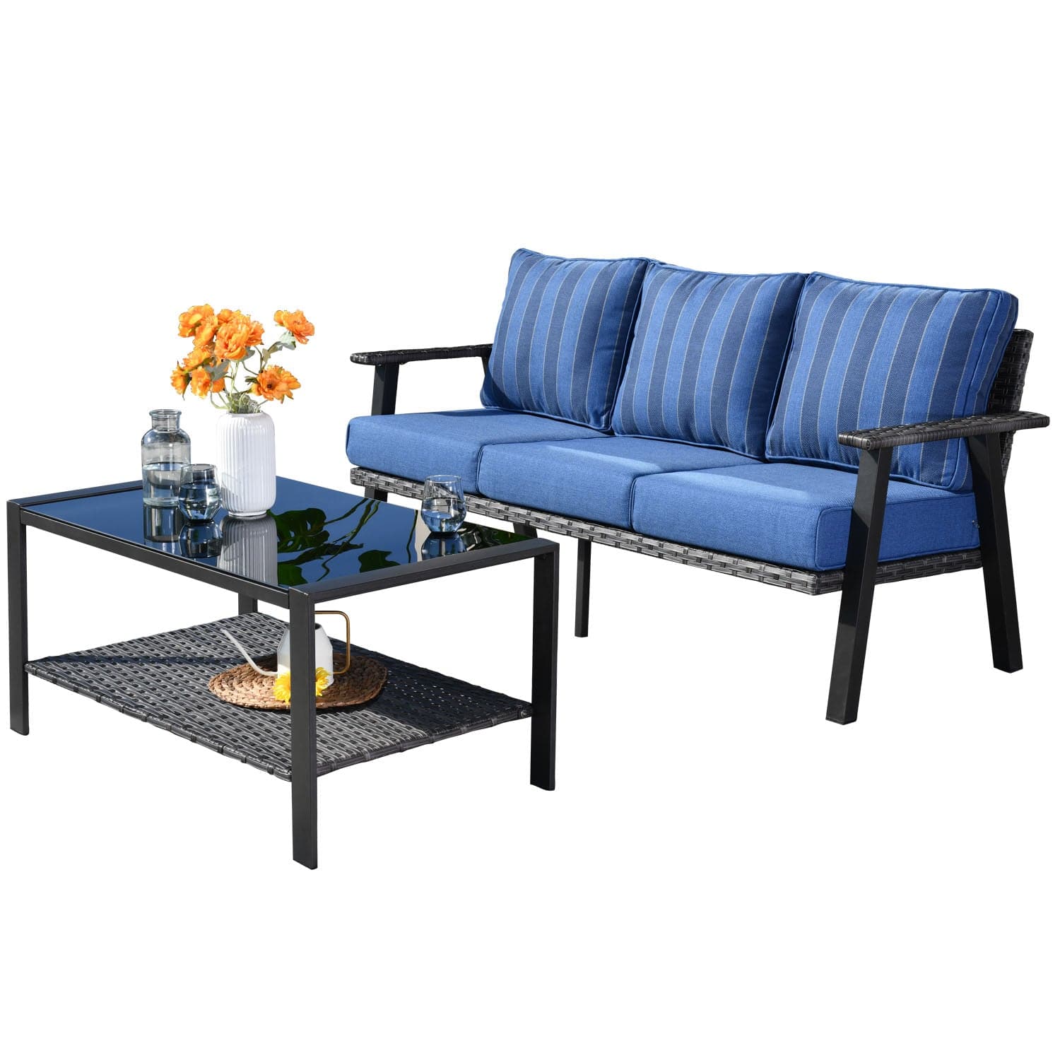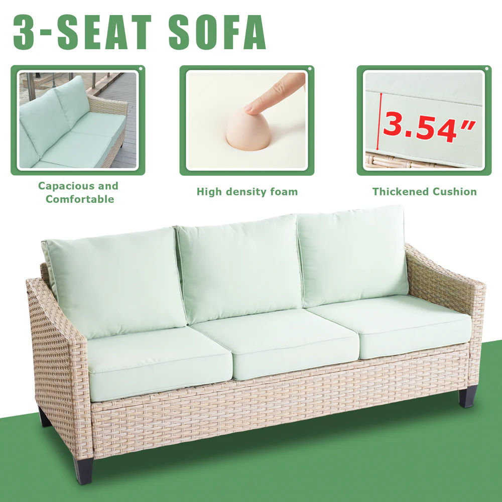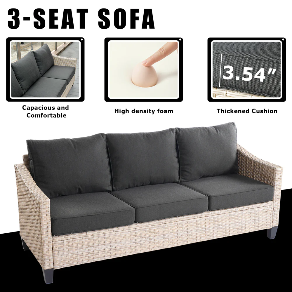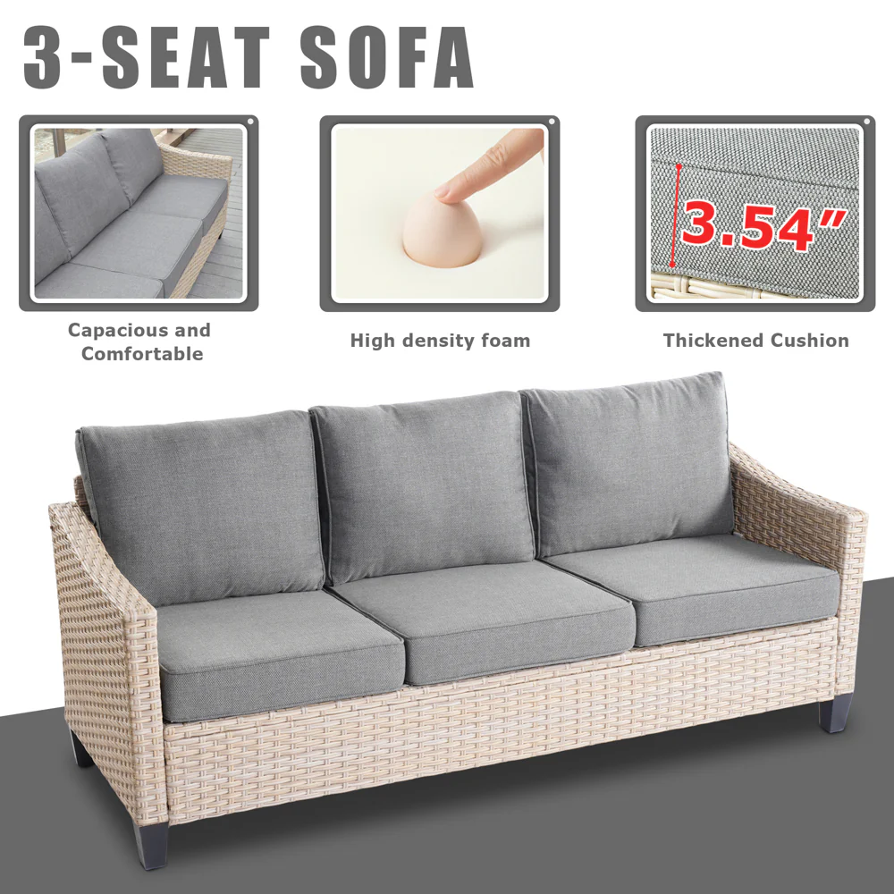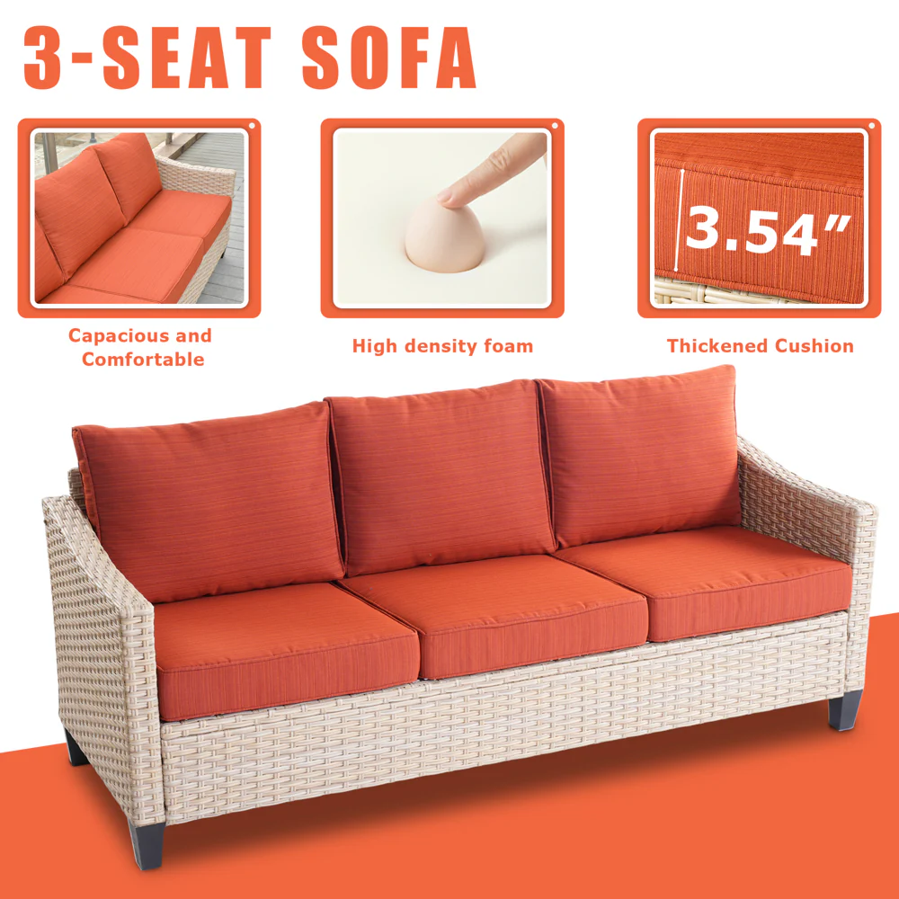 Ovios Patio Furniture Set Bigger Size 3-Piece Couch with Table, King Series, Fully Assembled