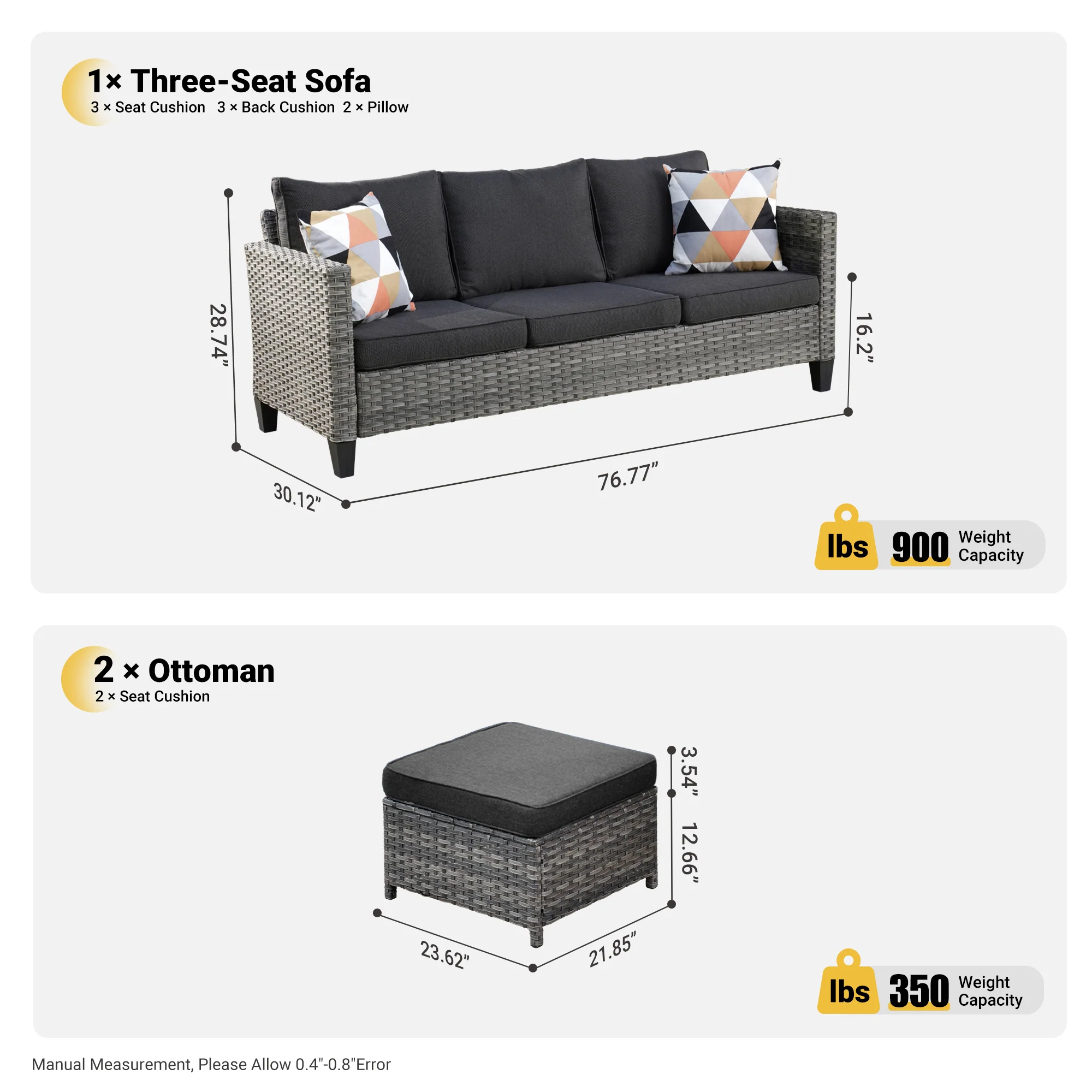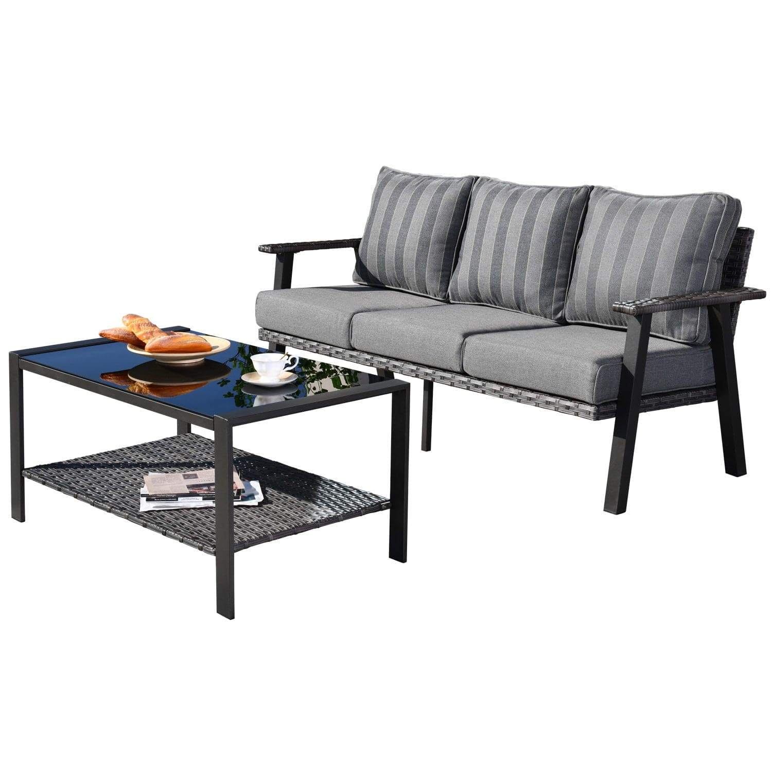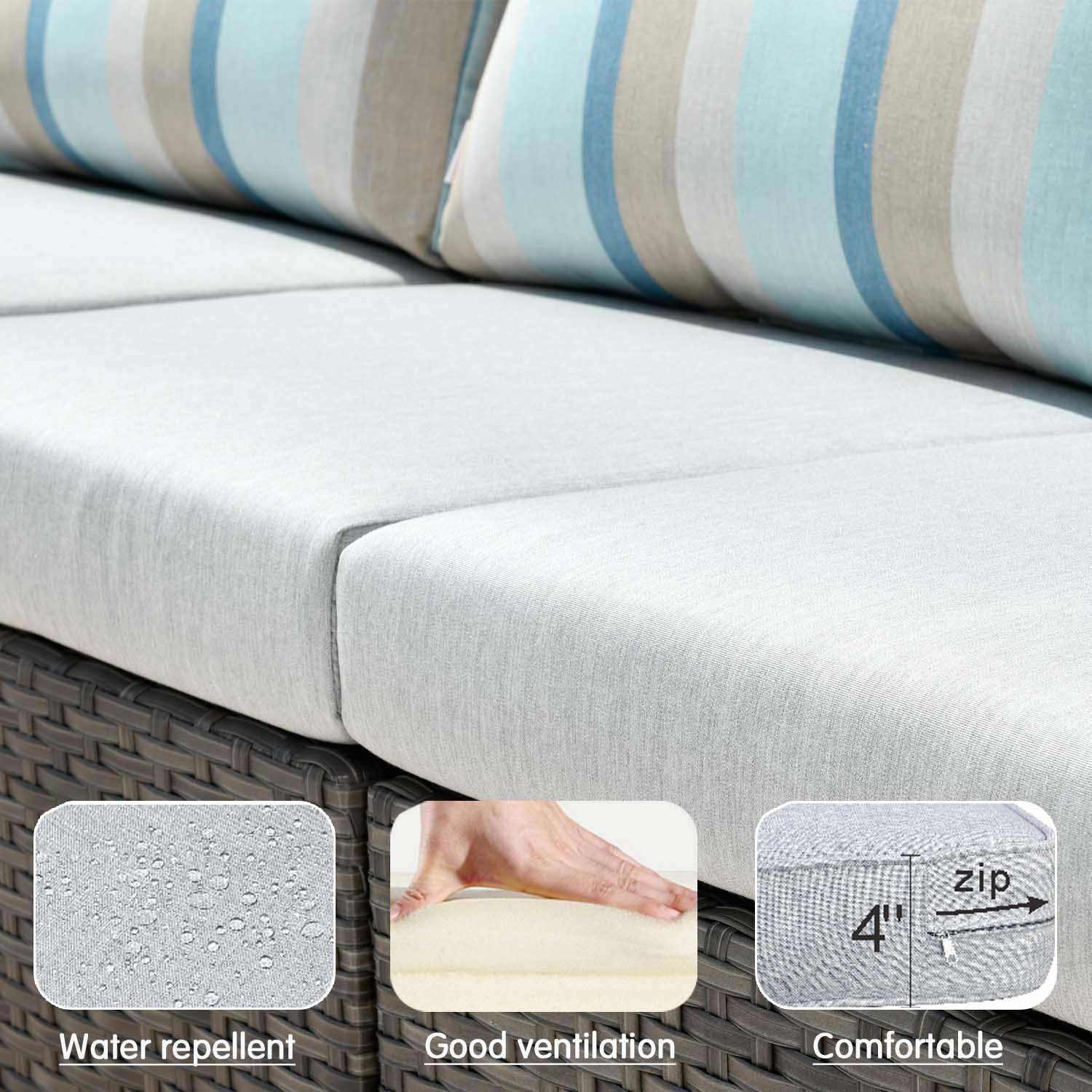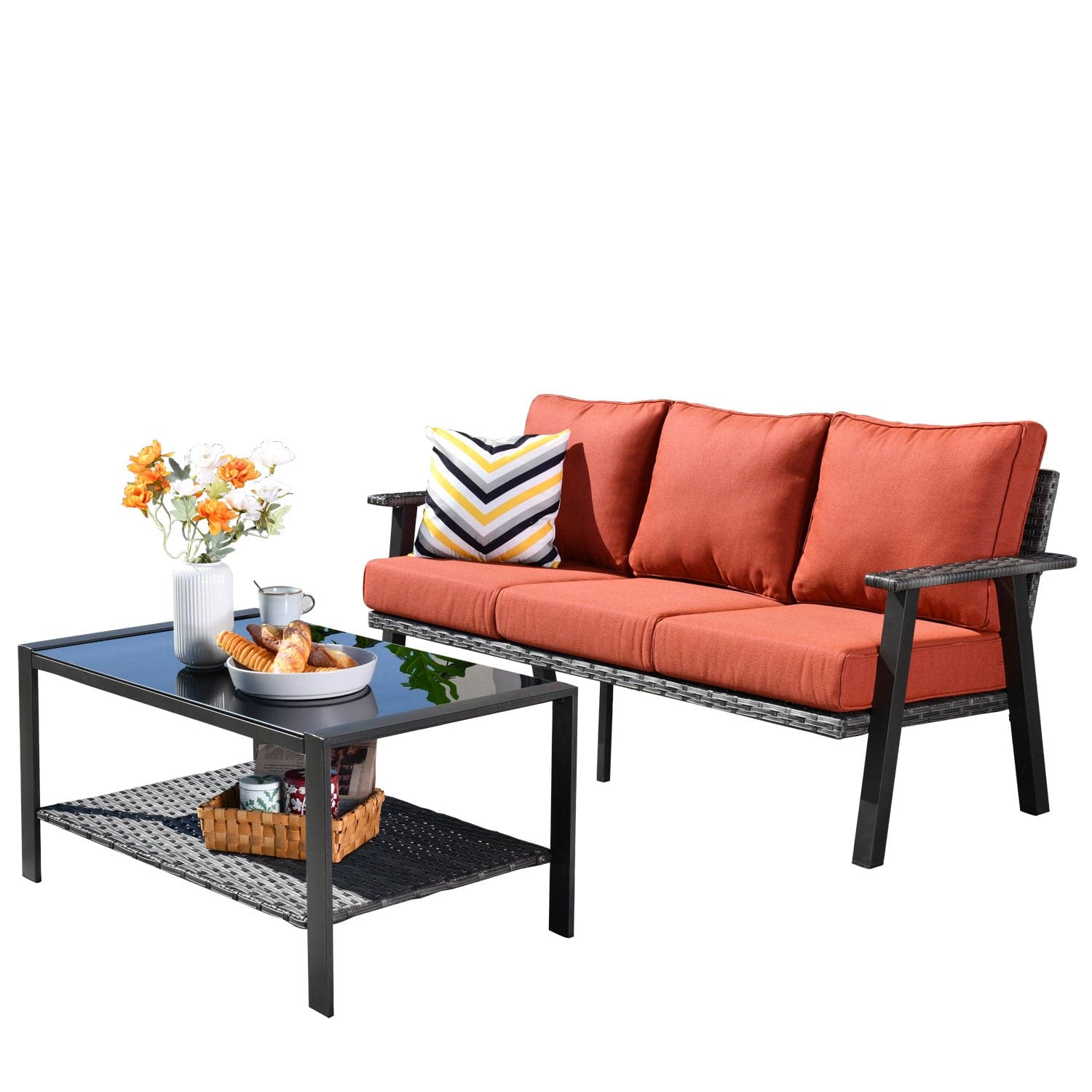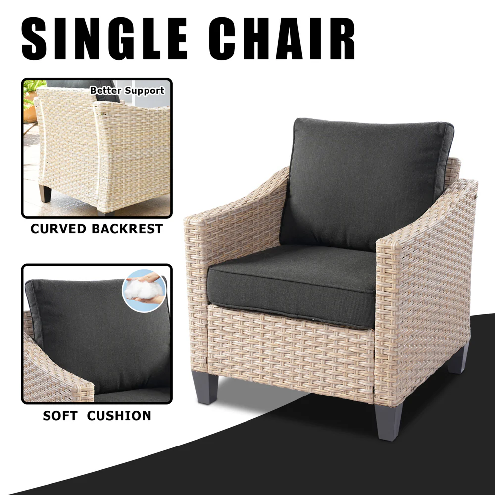 Ovios Patio Furniture Set Bigger Size 3-Piece Couch with Table, King Series, Fully Assembled