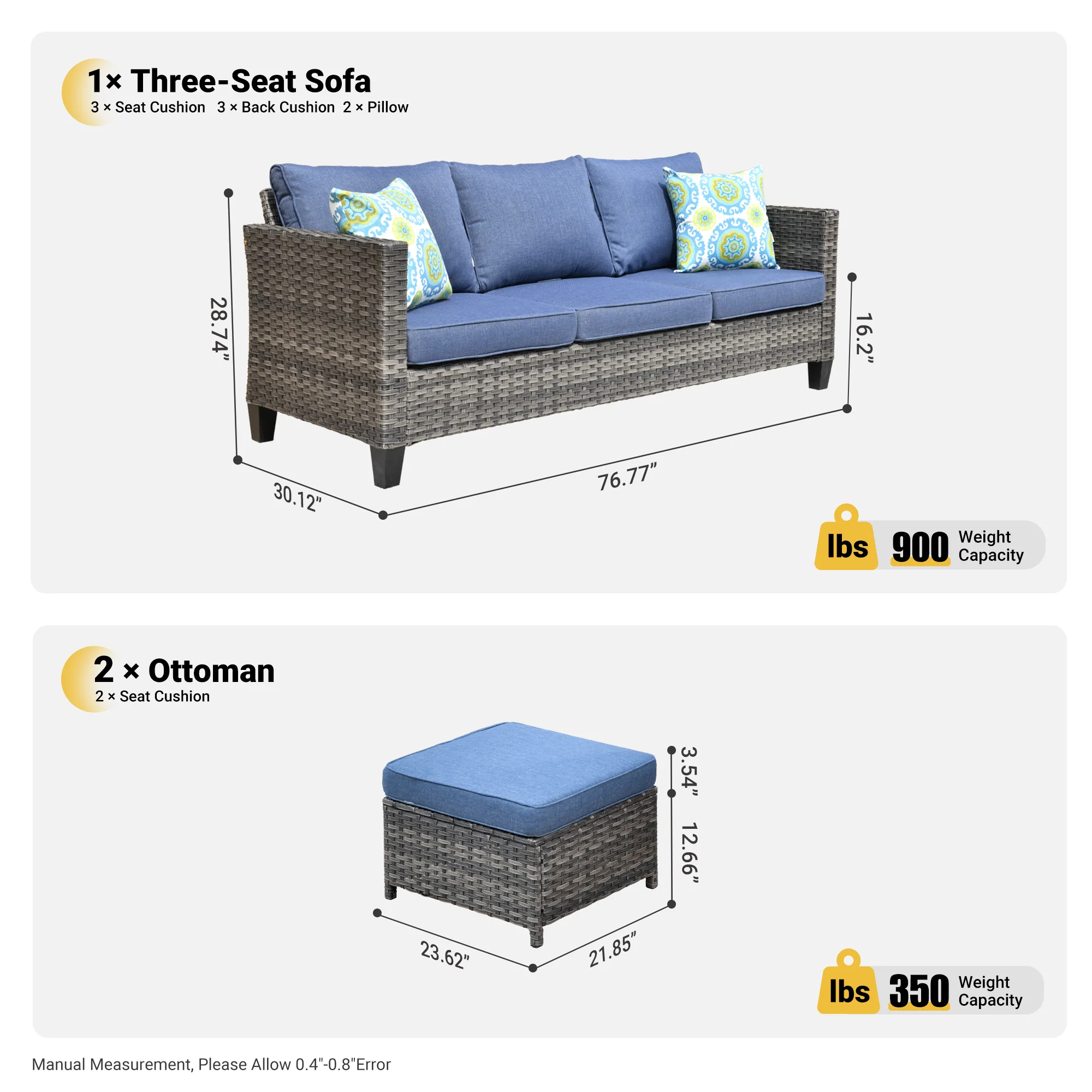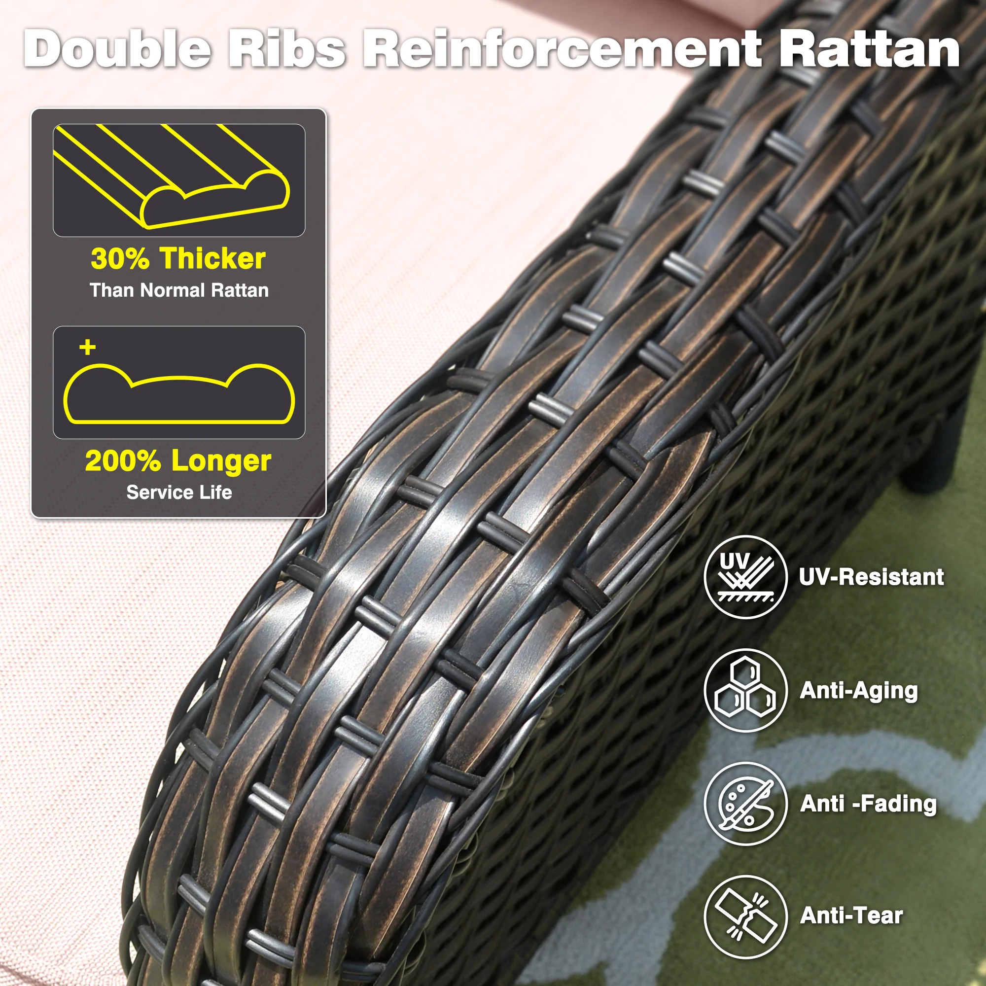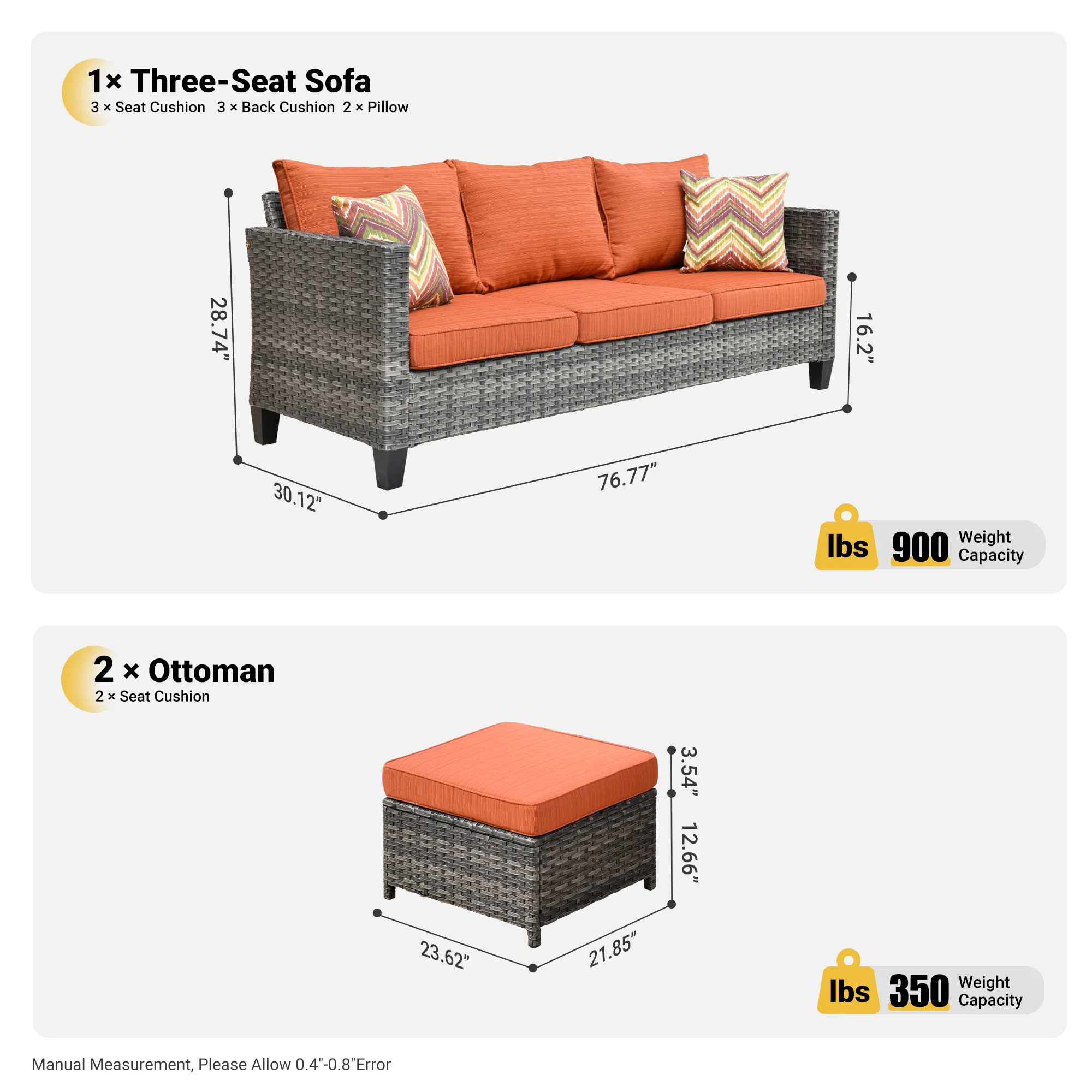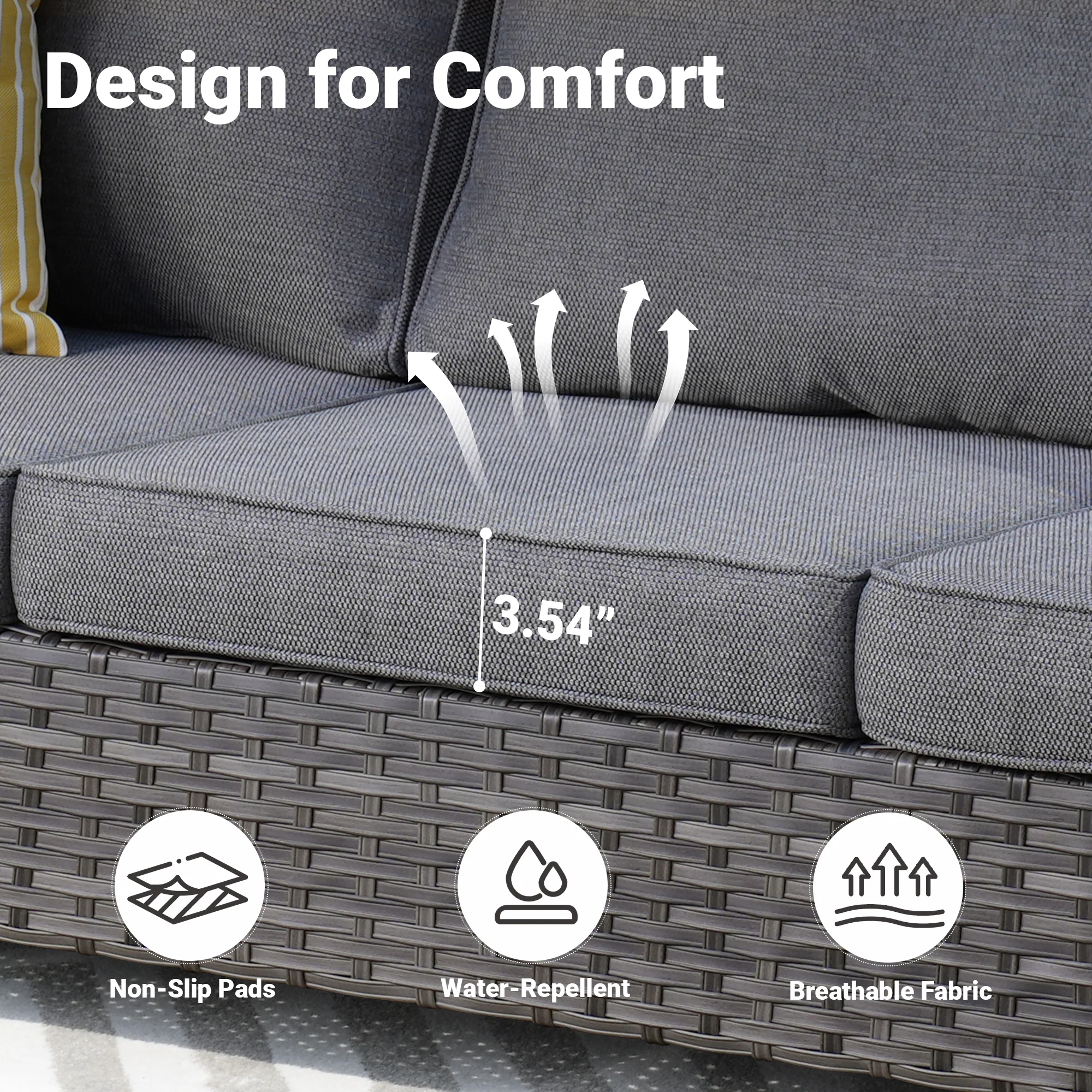 Ovios Patio Furniture Set Bigger Size 3-Piece Couch with Table, King Series, Fully Assembled