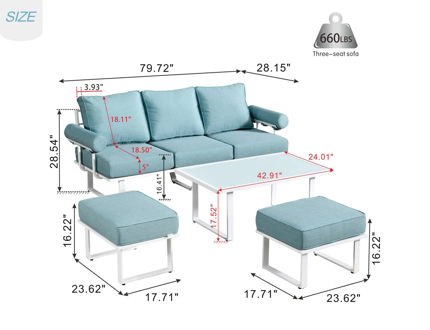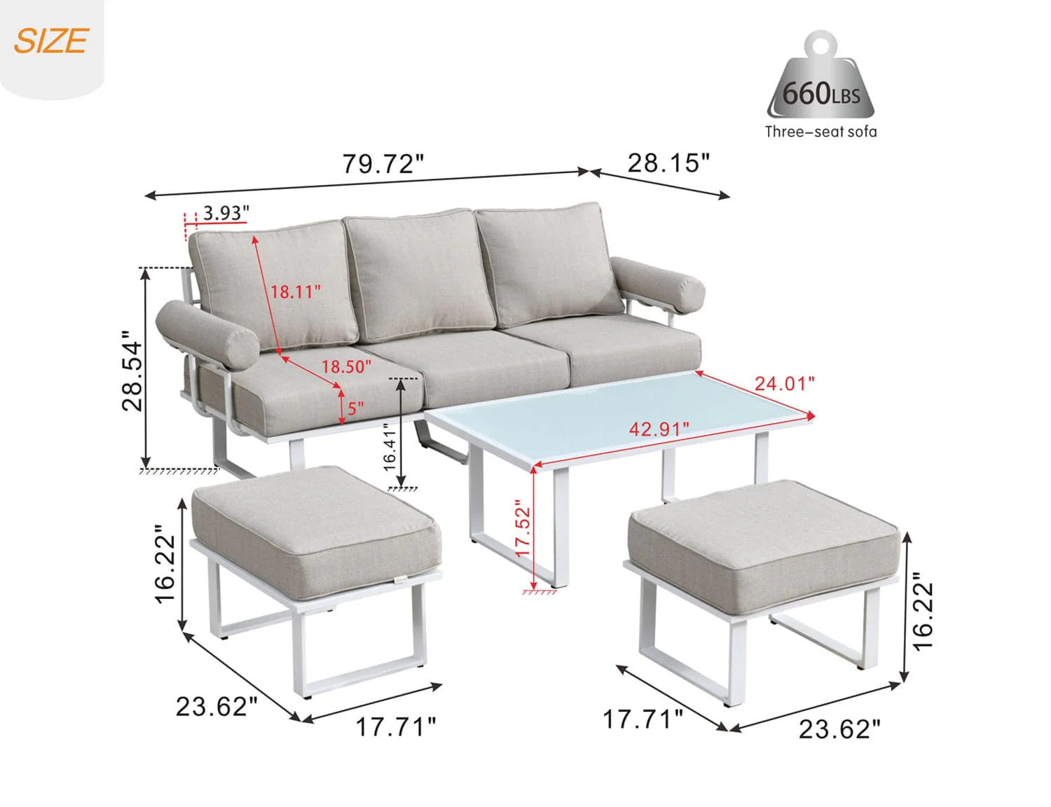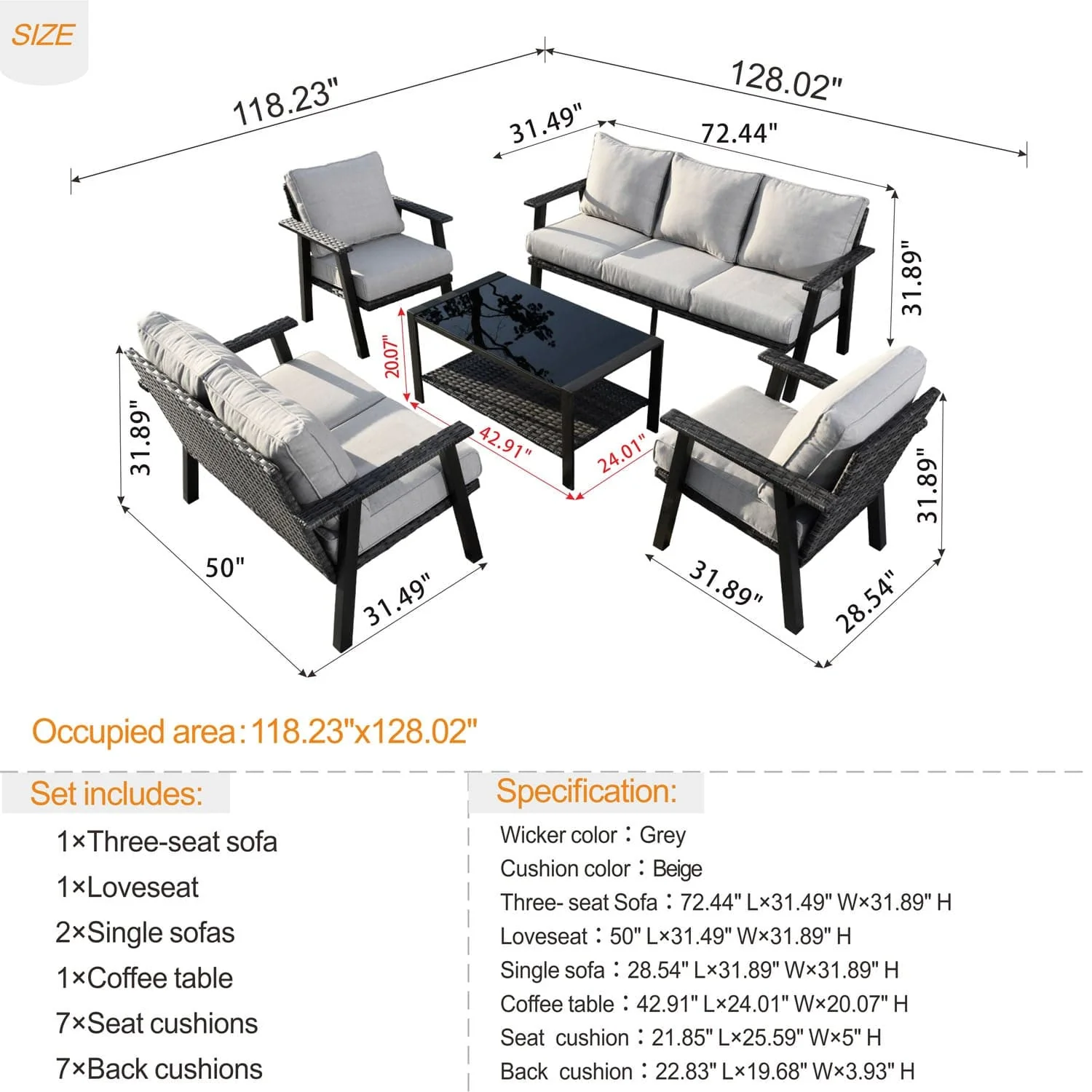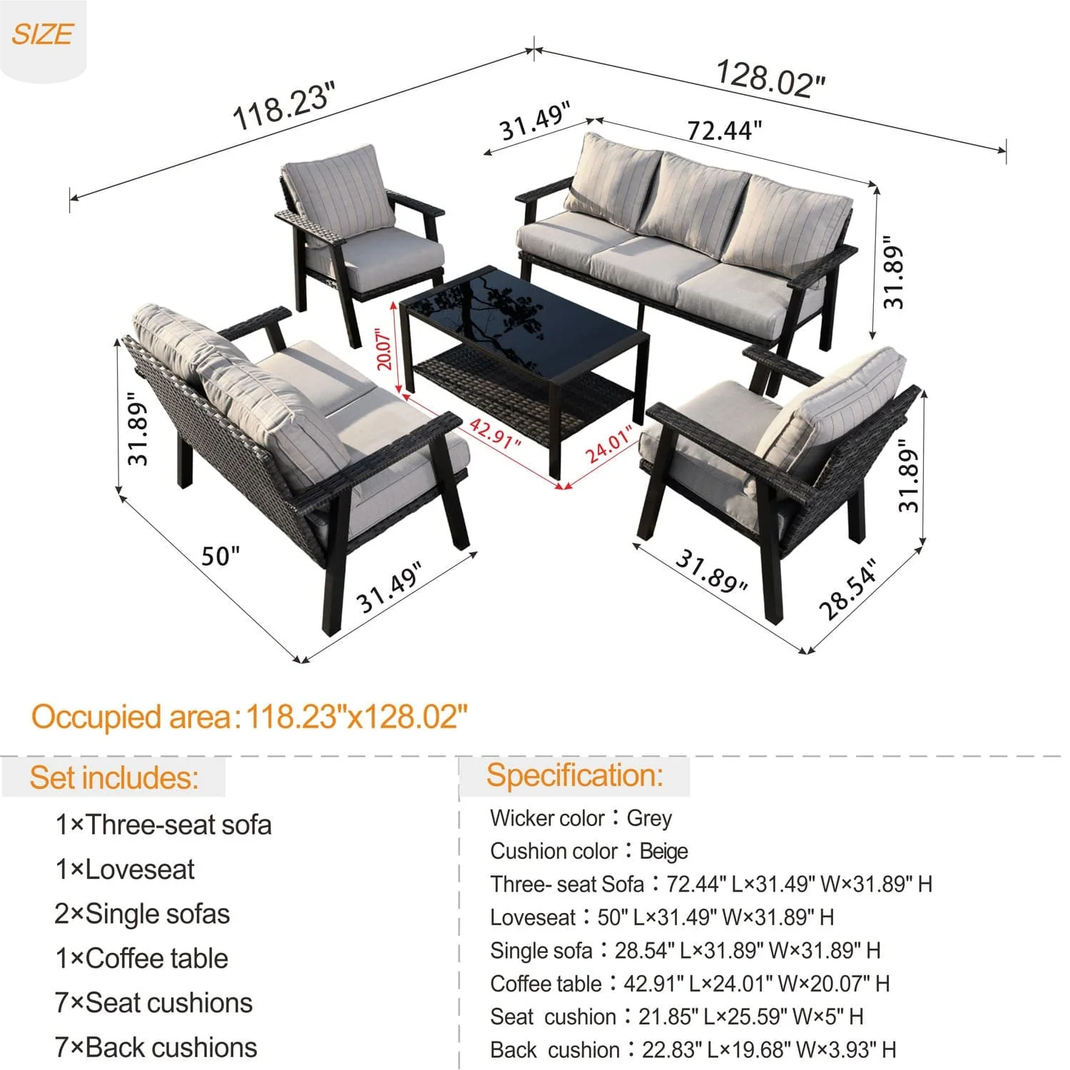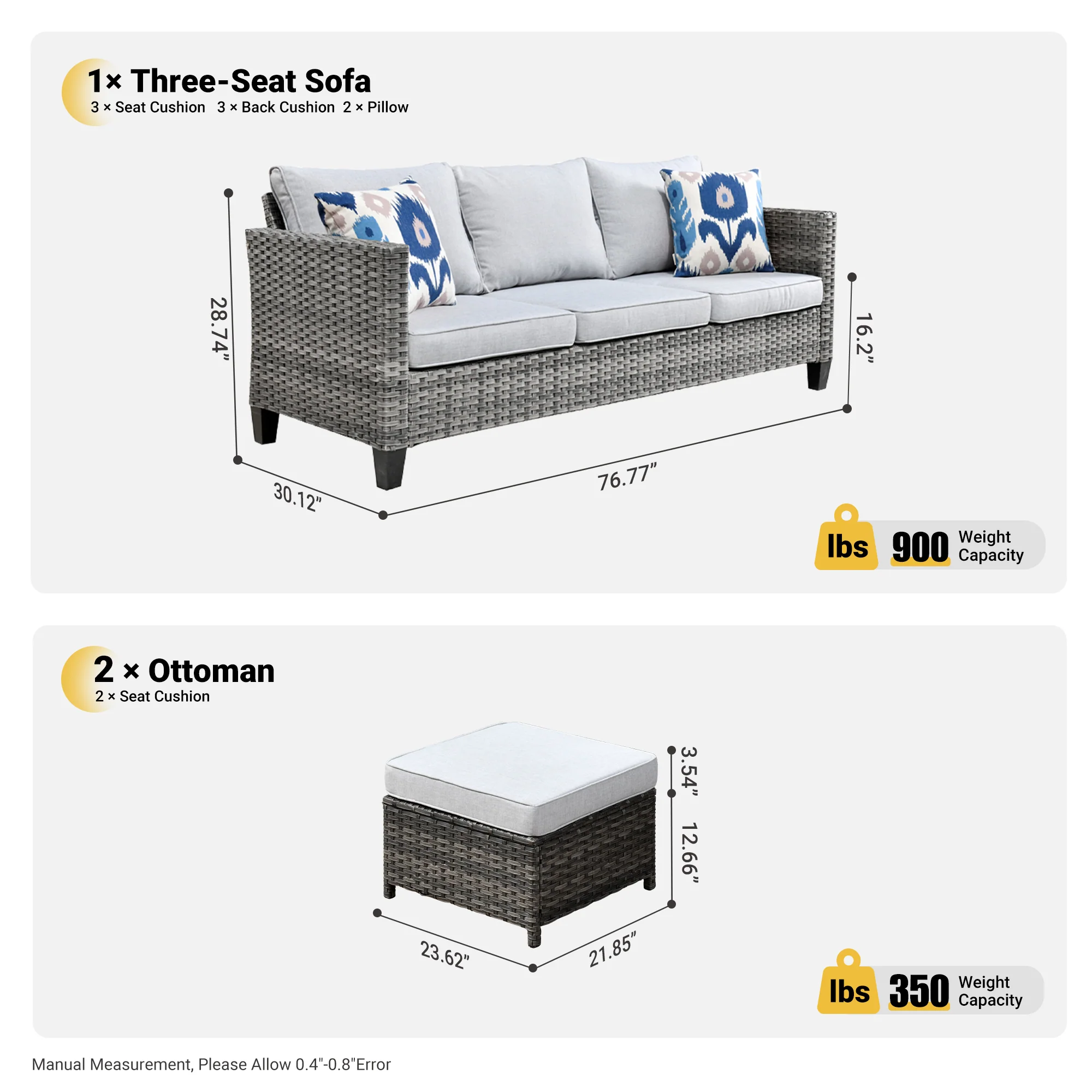 Ovios Patio Furniture Set Bigger Size 3-Piece Couch with Table, King Series, Fully Assembled