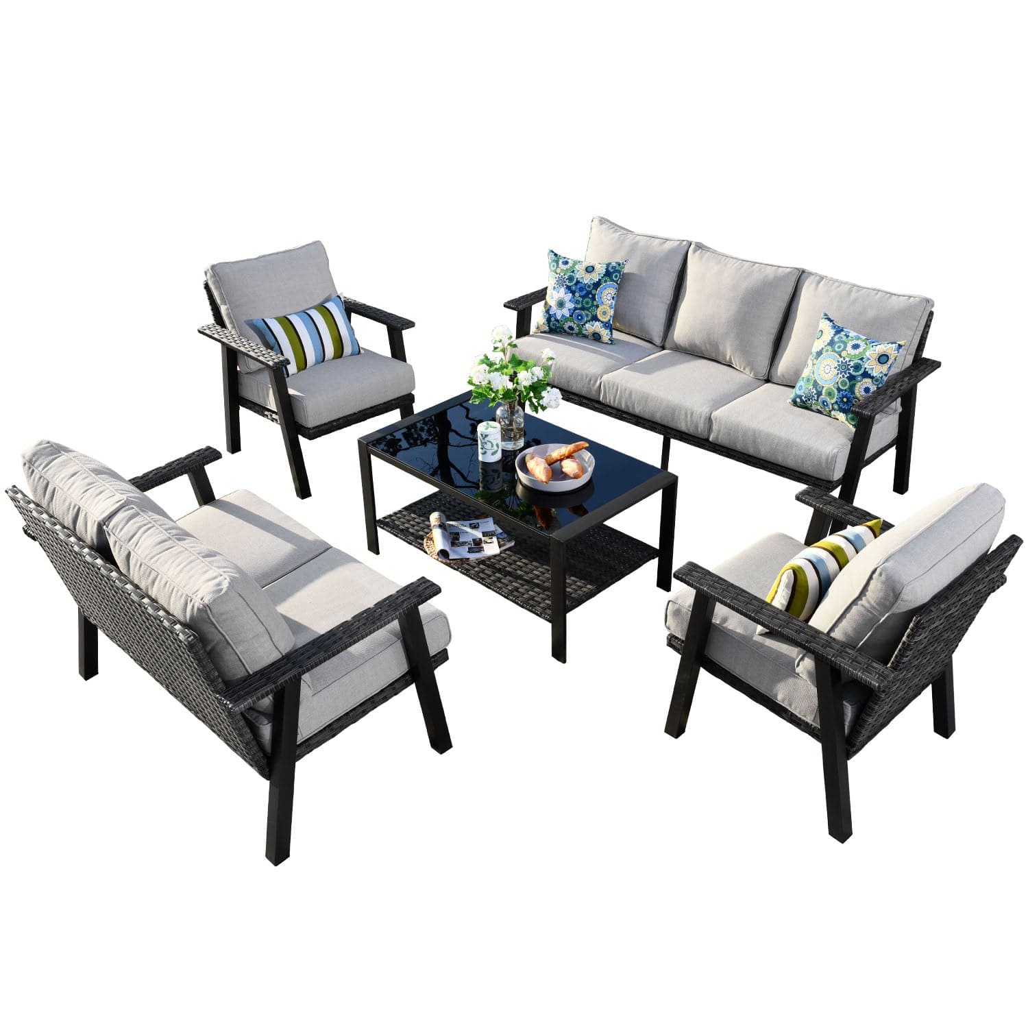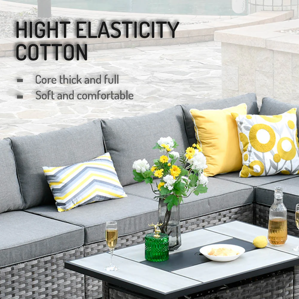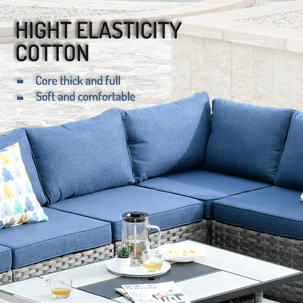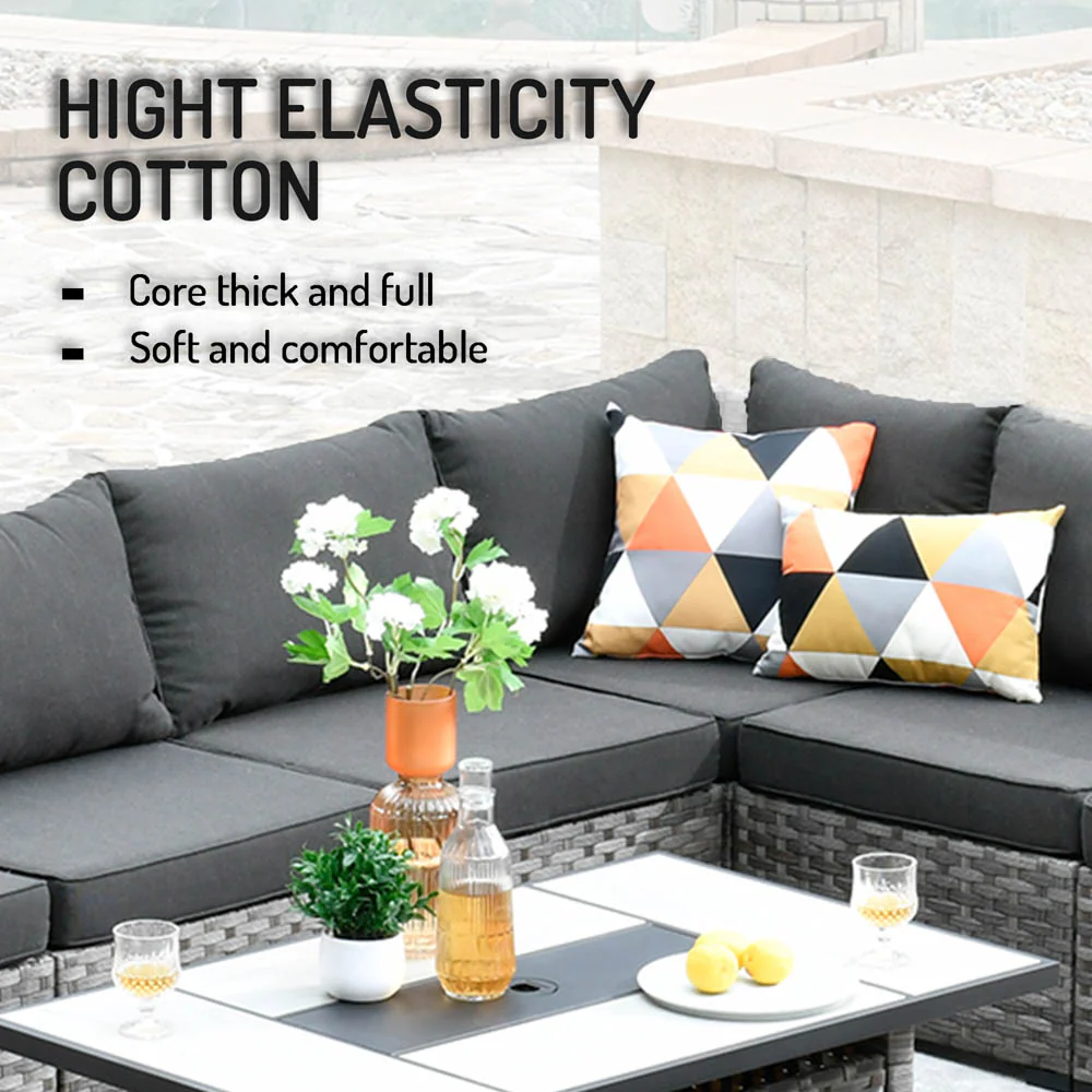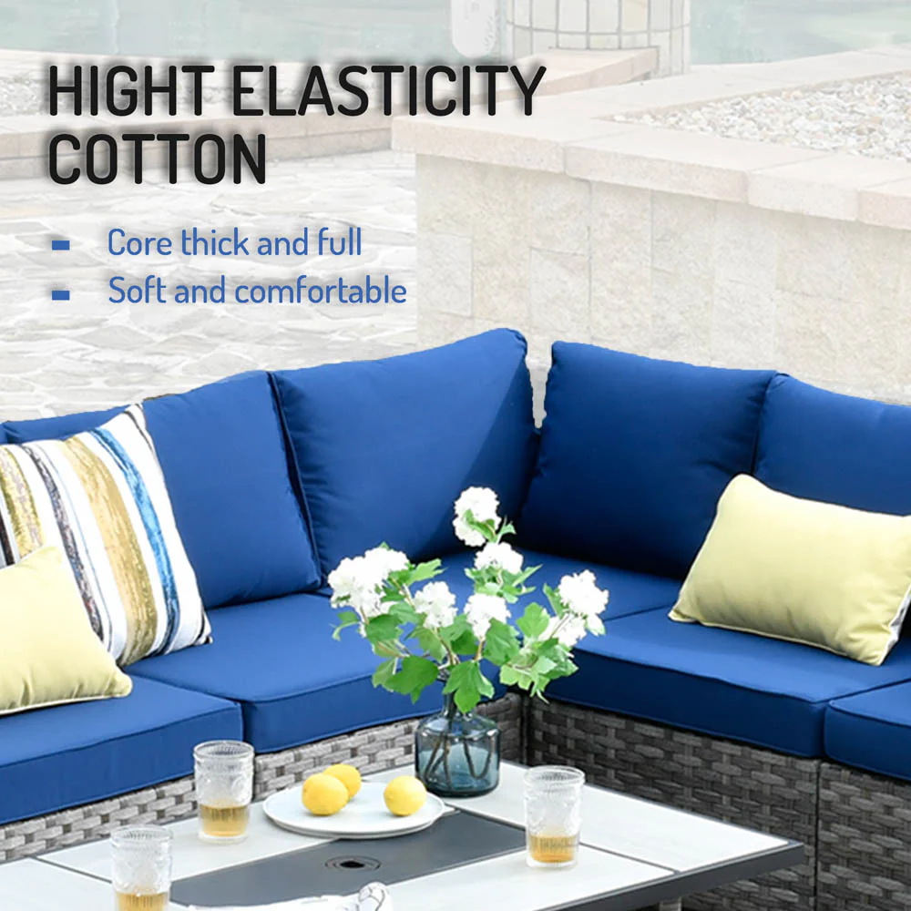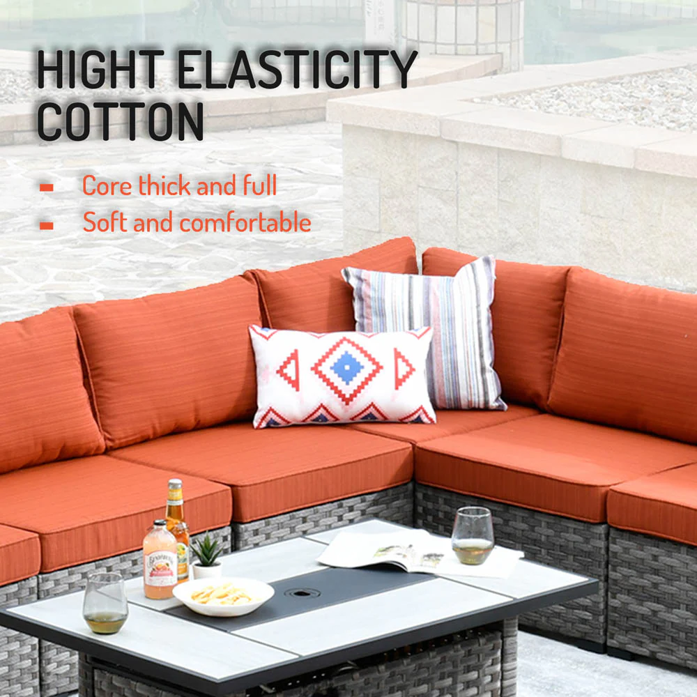 Ovios Patio Conversation Set 7 Person Seating with Table, 5''Cushion, Olefin Fabric