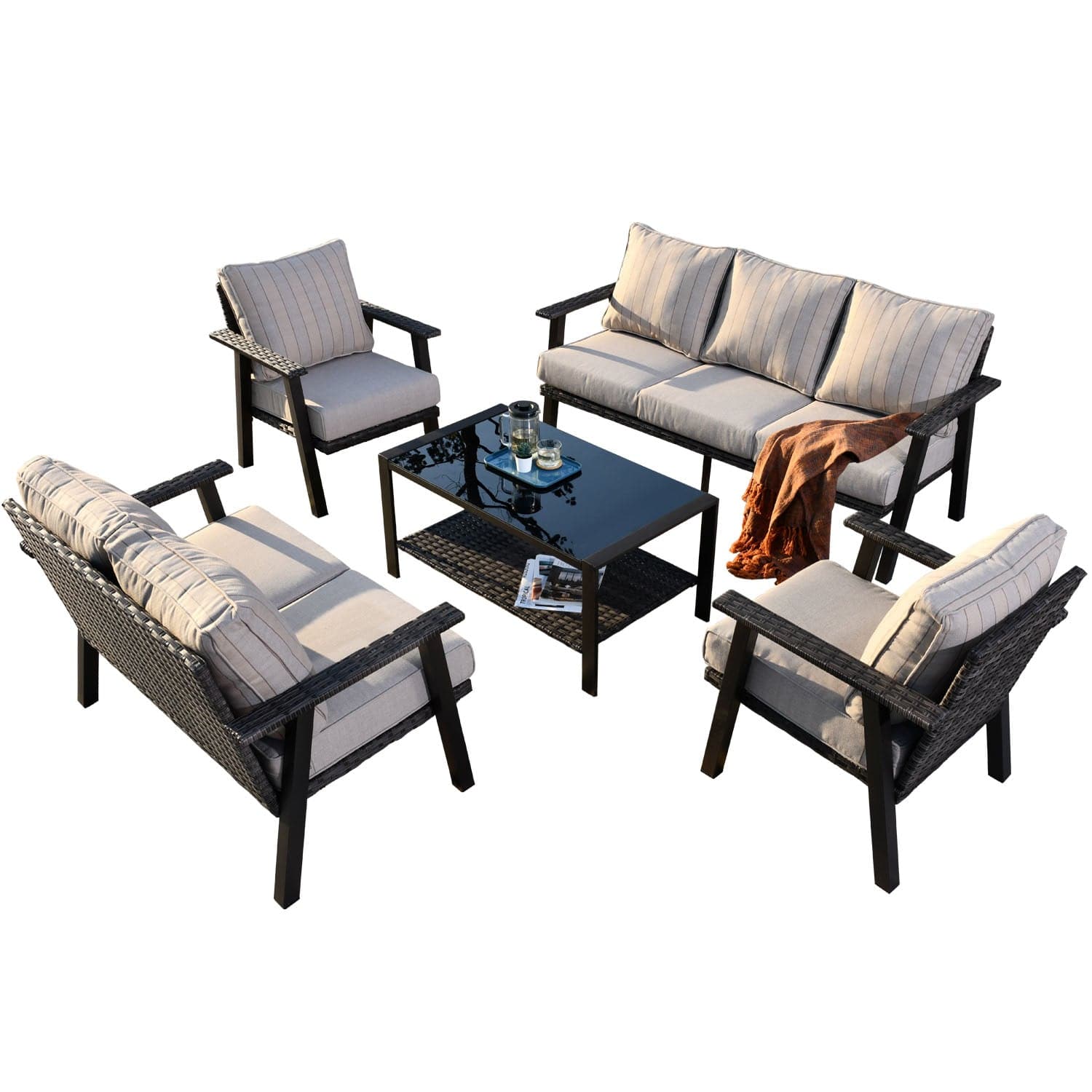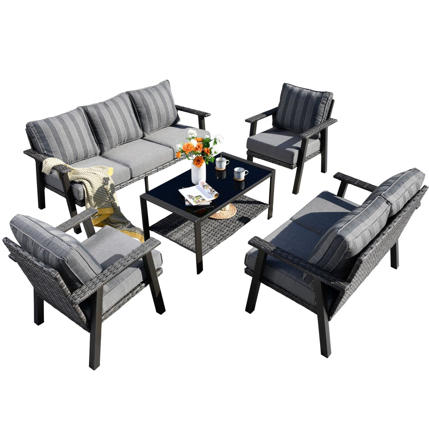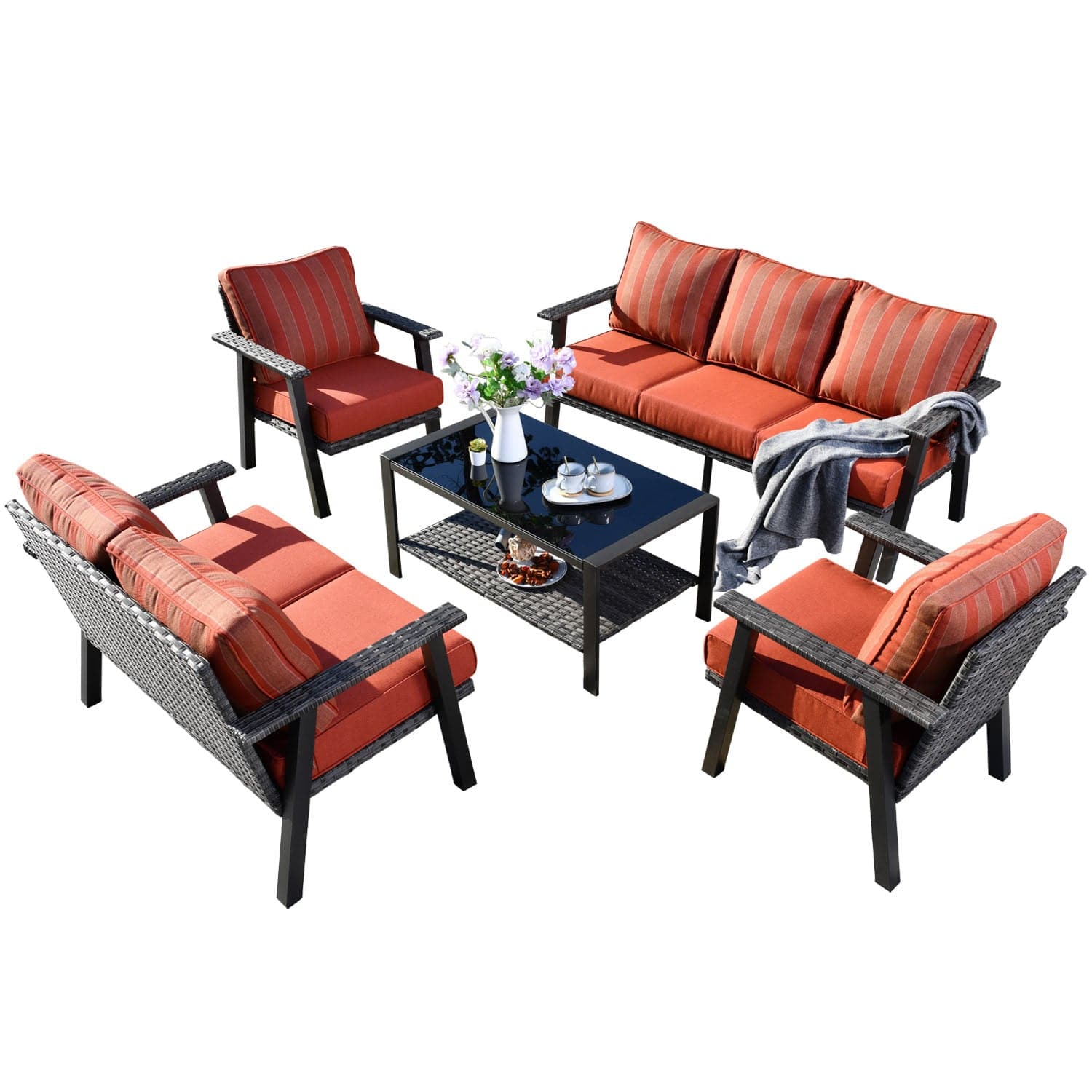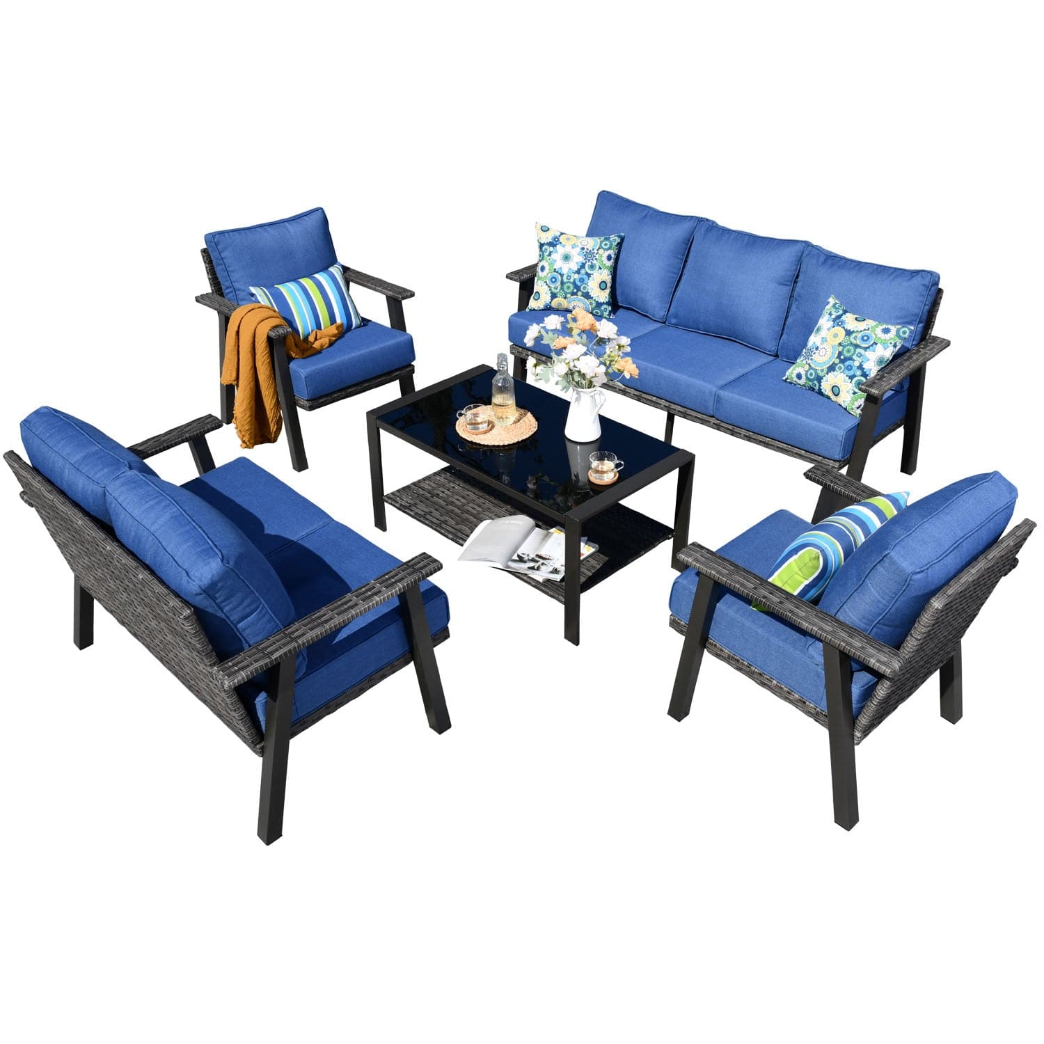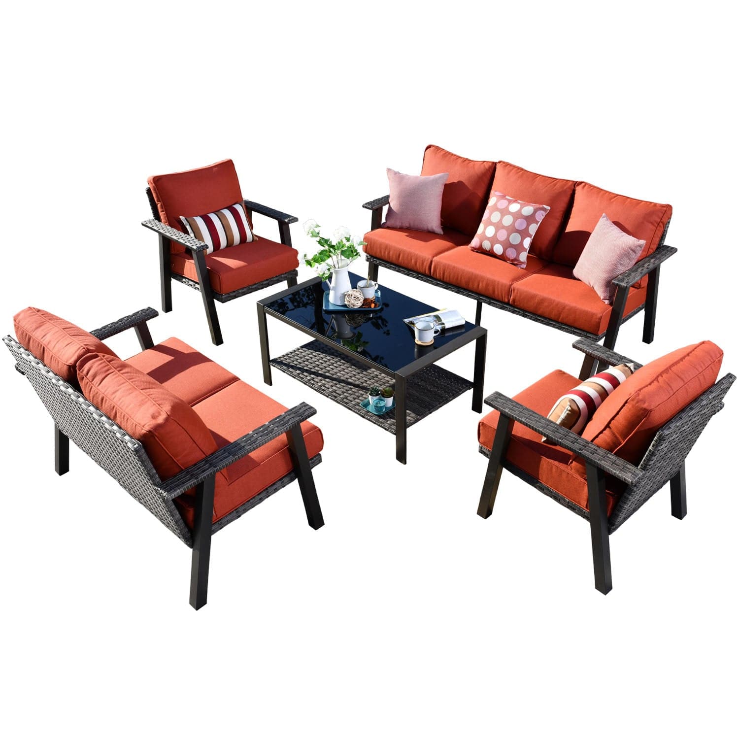 Ovios Patio Conversation Set 7 Person Seating with Table, 5''Cushion, Olefin Fabric