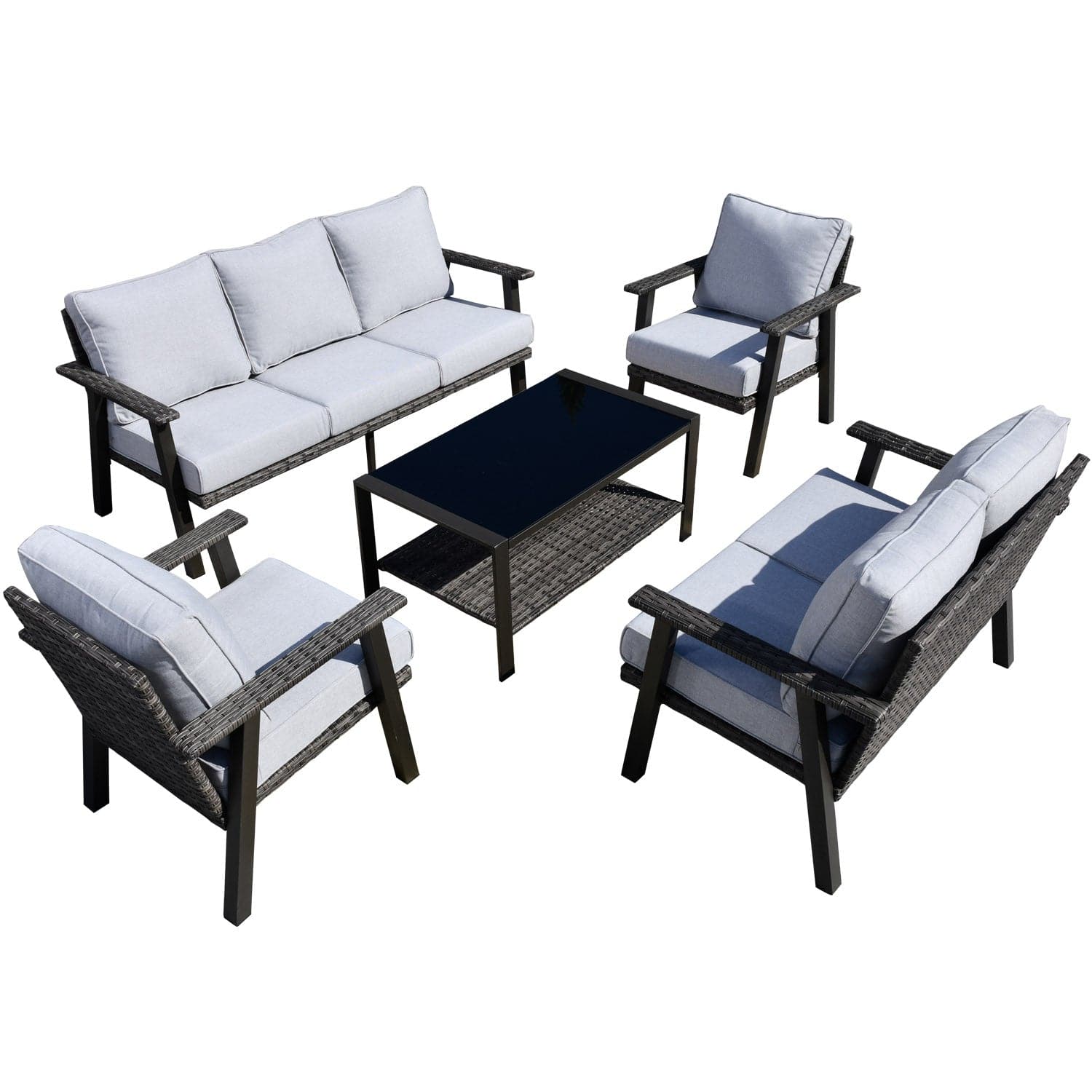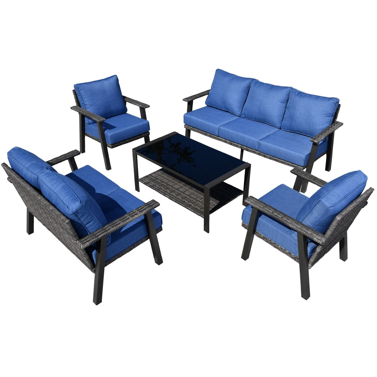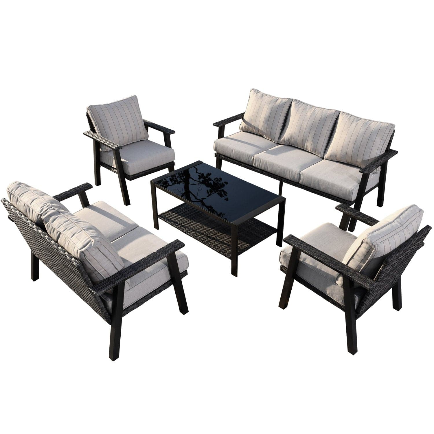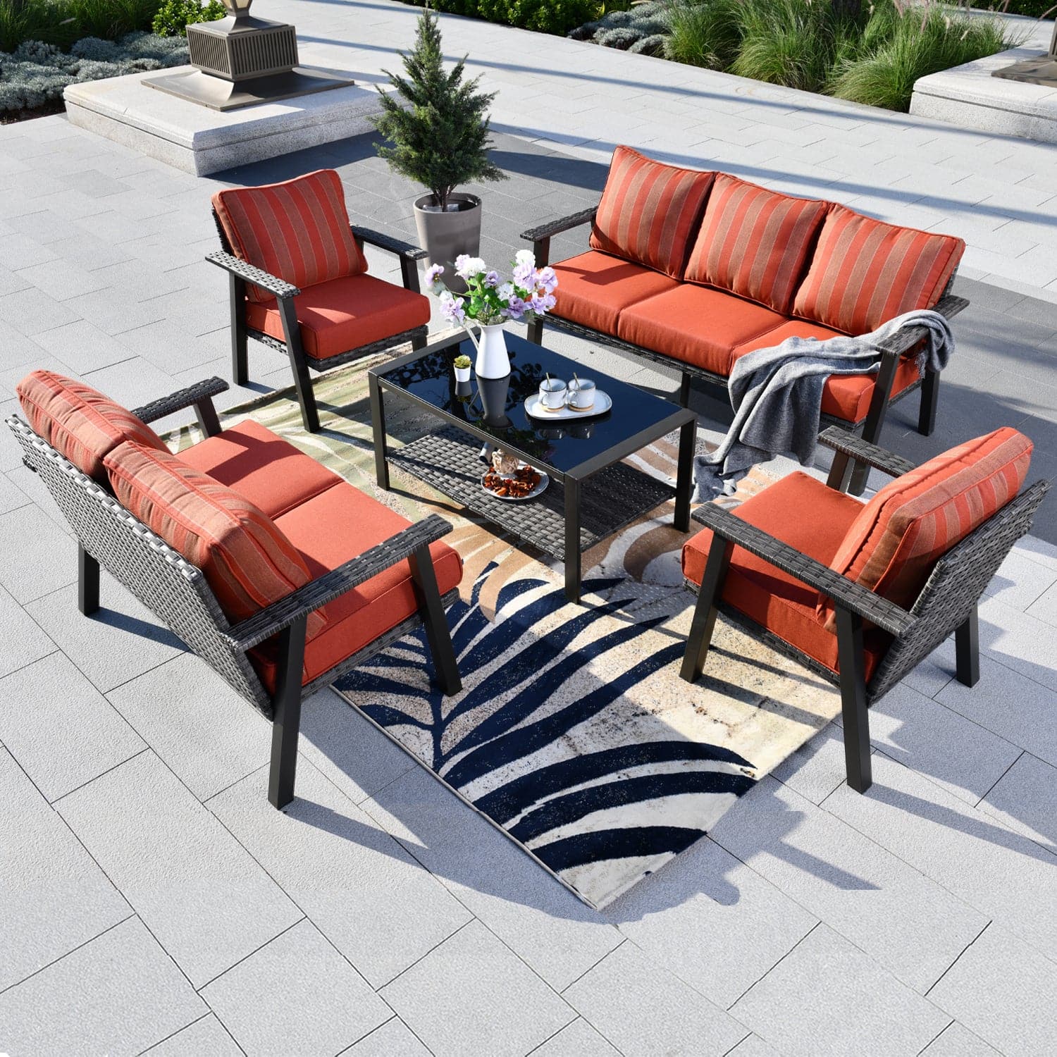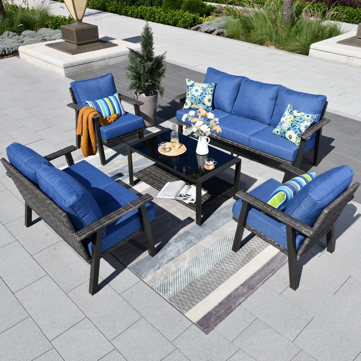 Ovios Patio Conversation Set 7 Person Seating with Table, 5''Cushion, Olefin Fabric