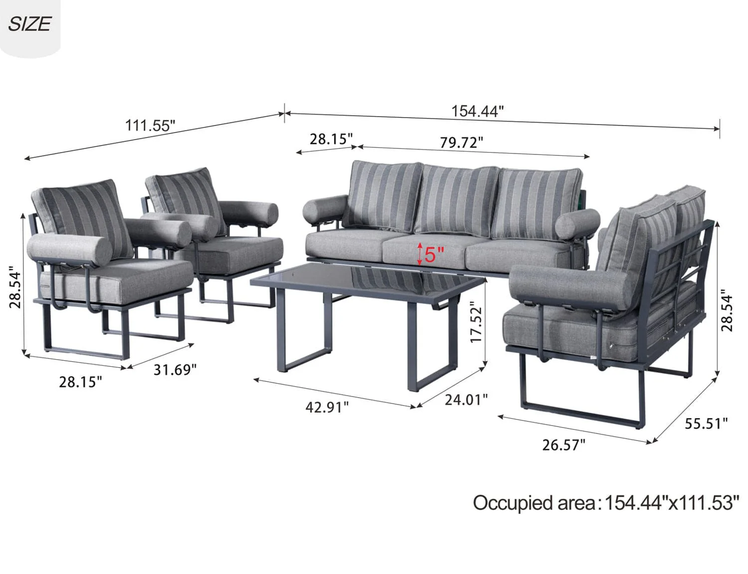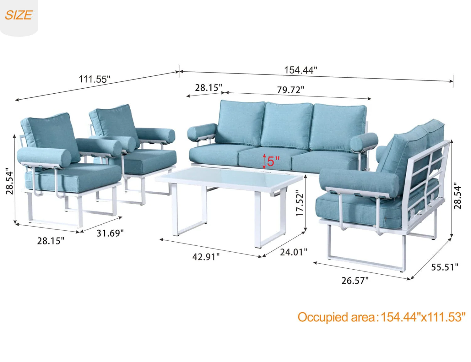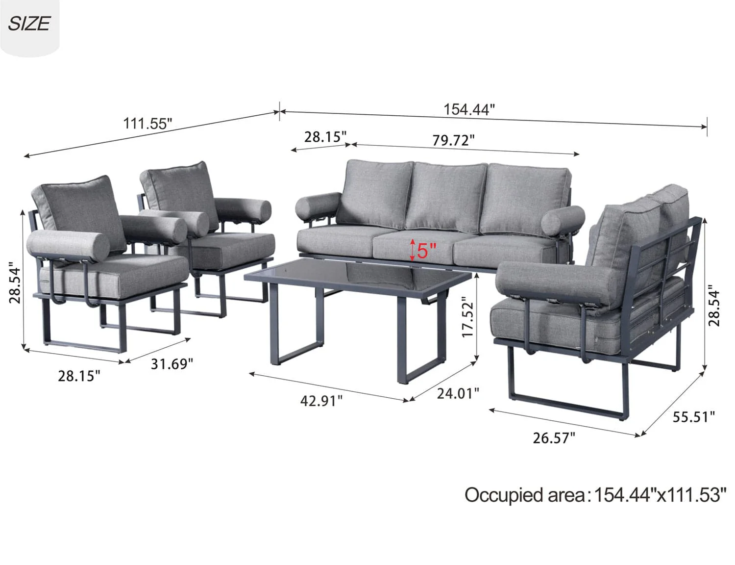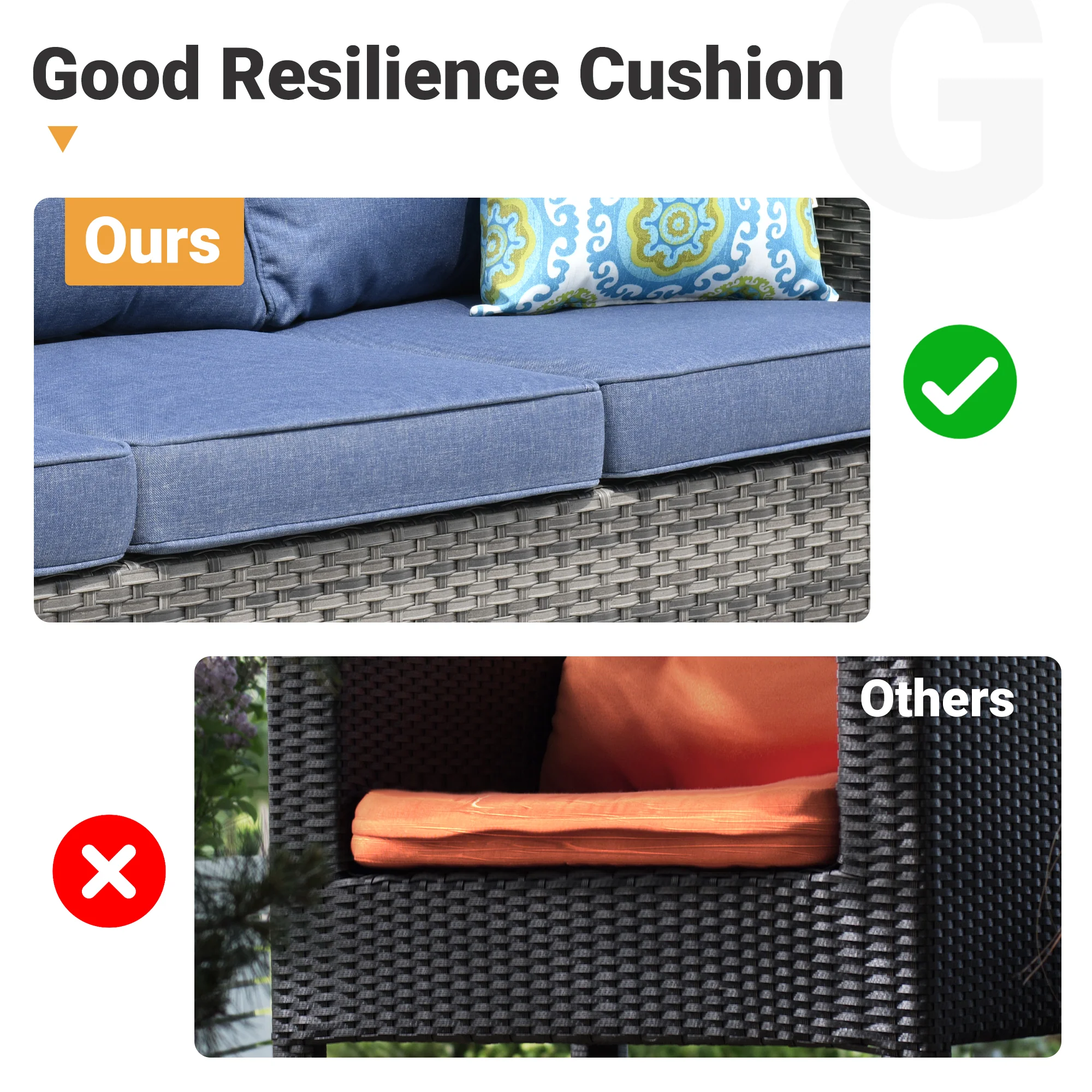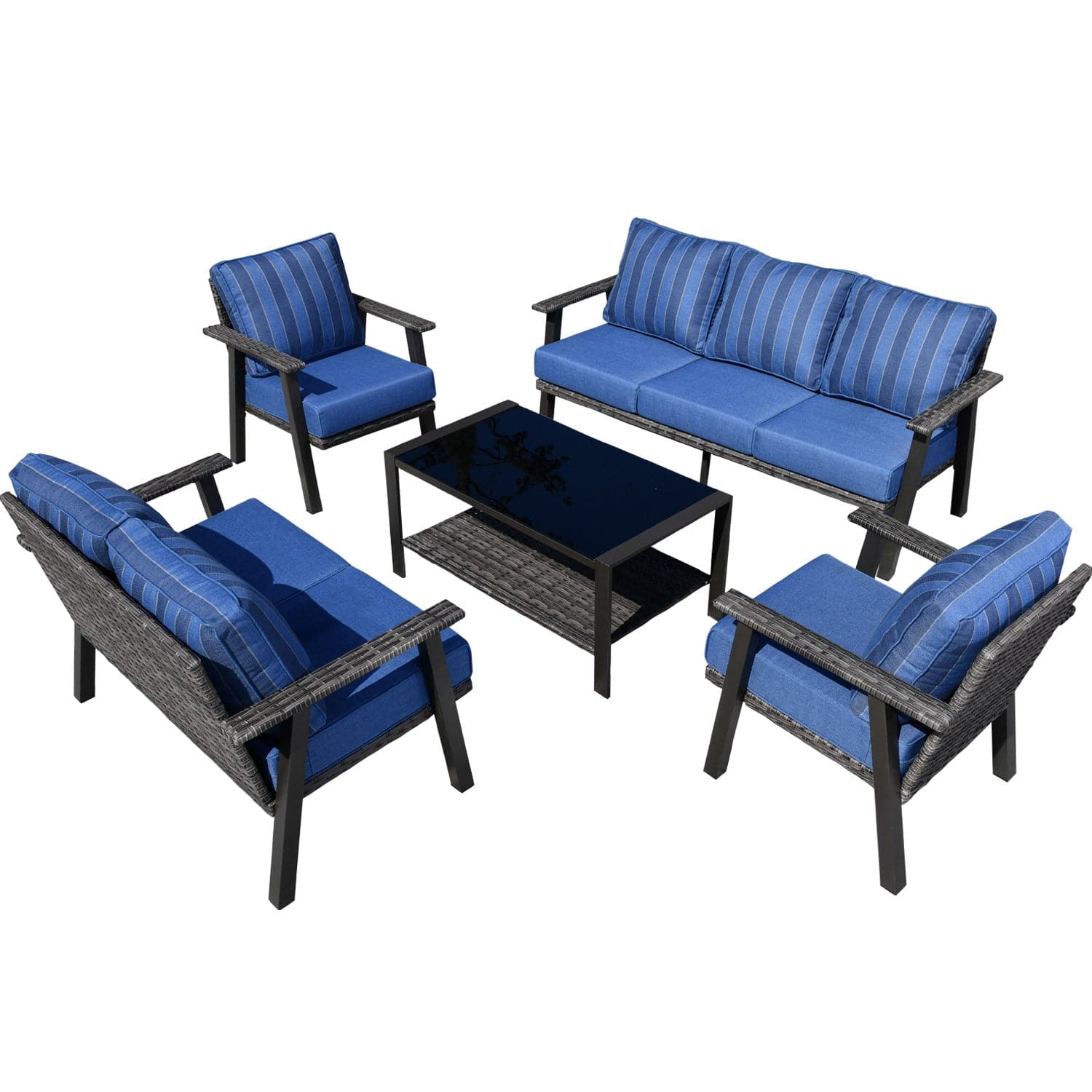 Ovios Patio Conversation Set 7 Person Seating with Table, 5''Cushion, Olefin Fabric
