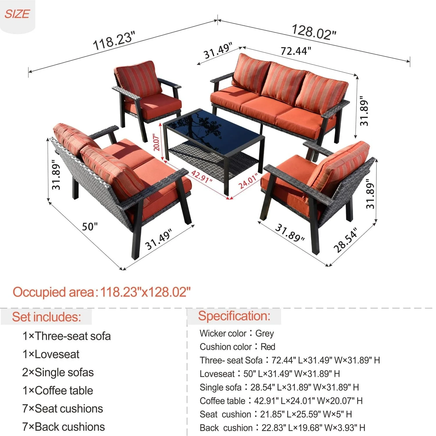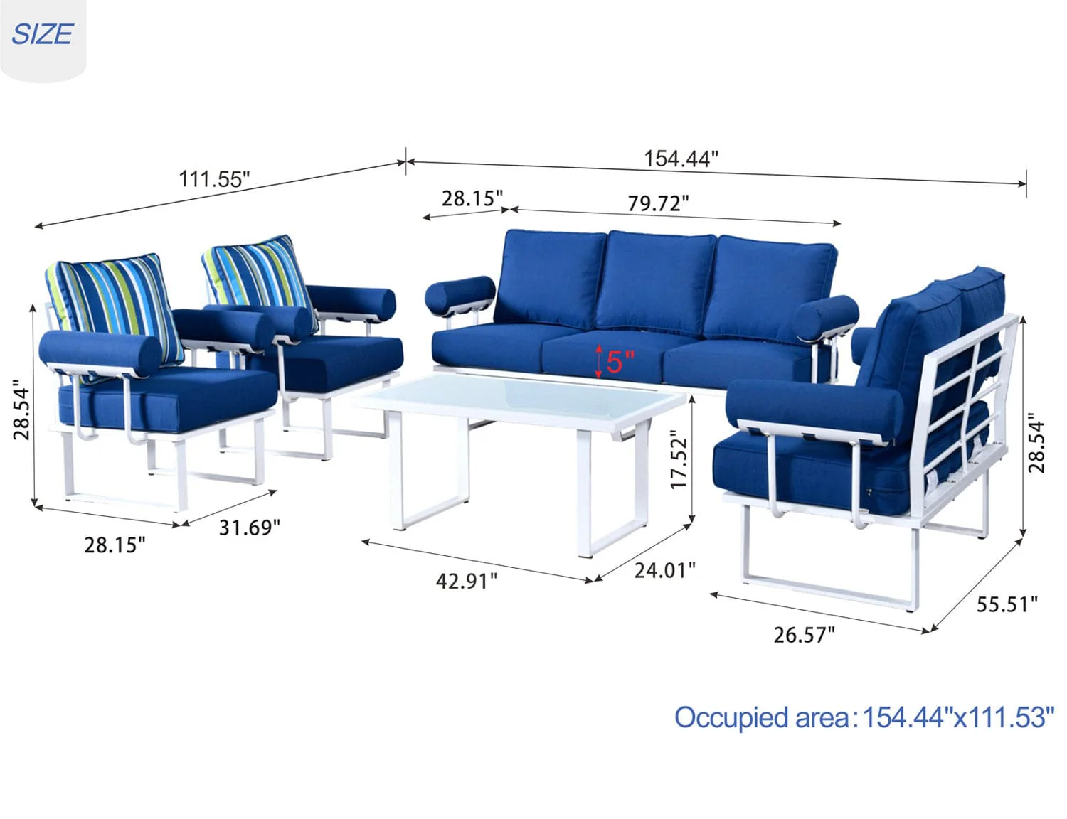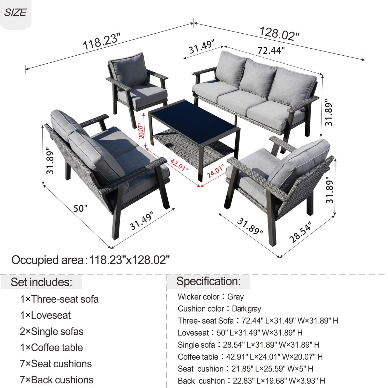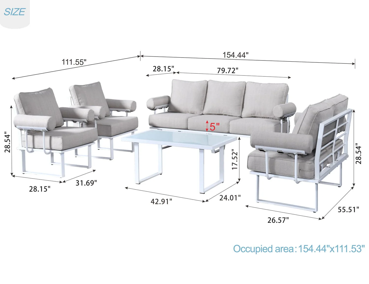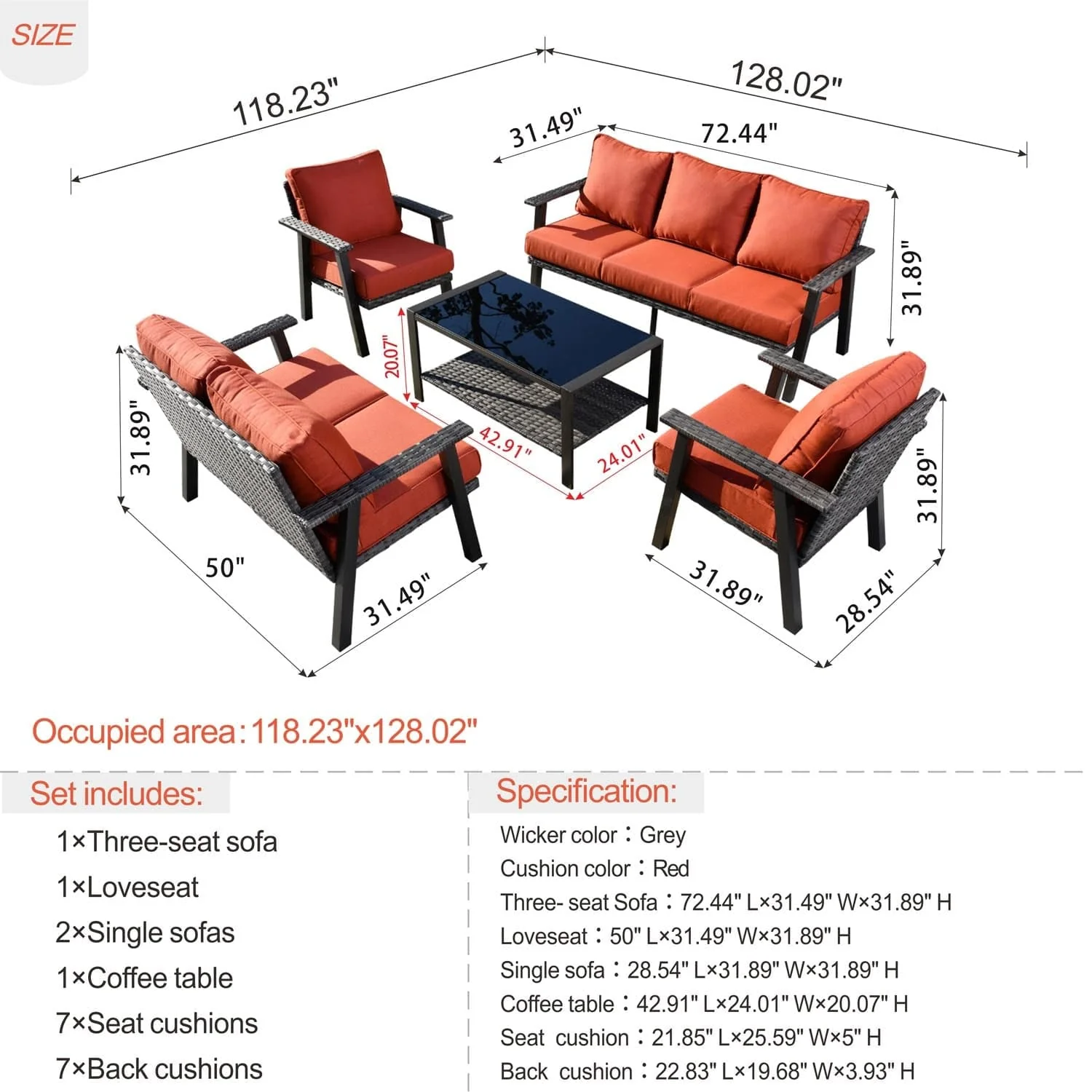 Ovios Patio Conversation Set 7 Person Seating with Table, 5''Cushion, Olefin Fabric