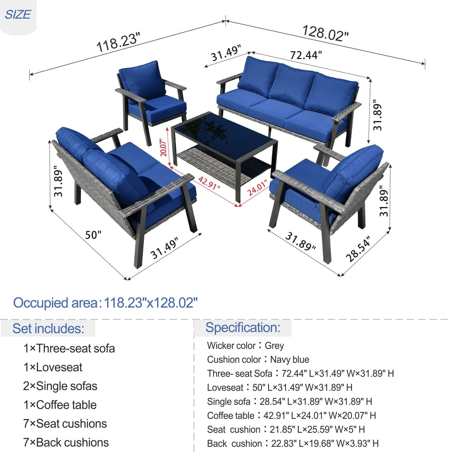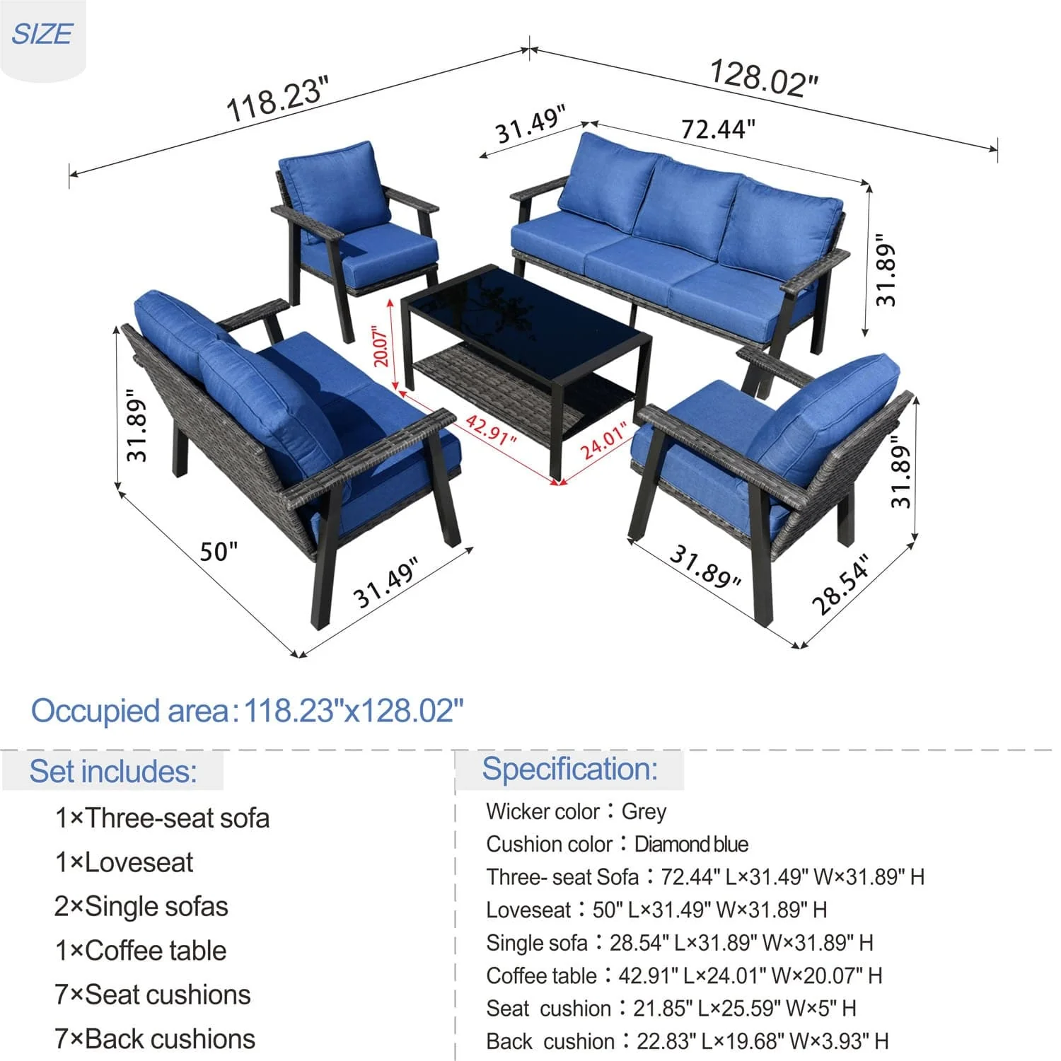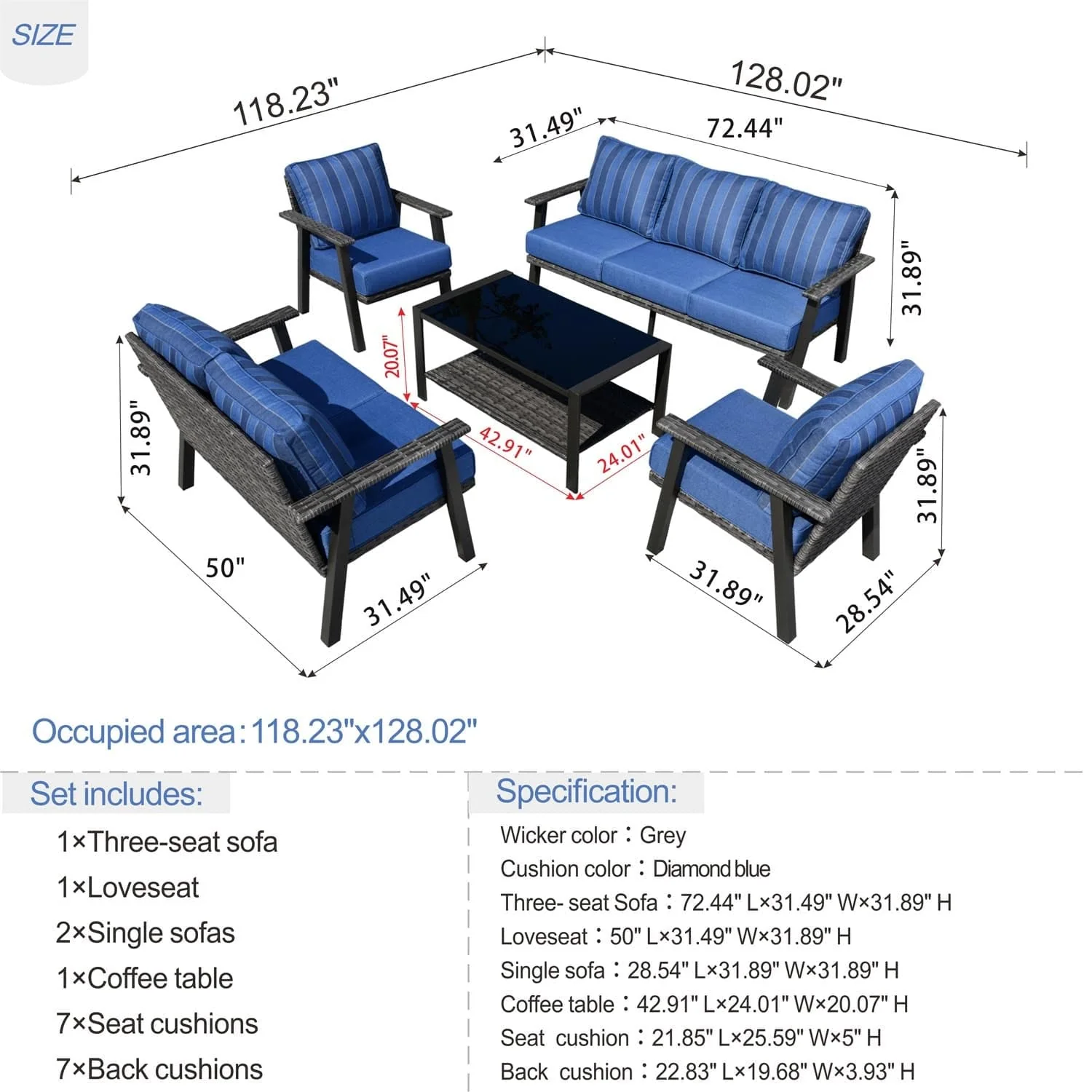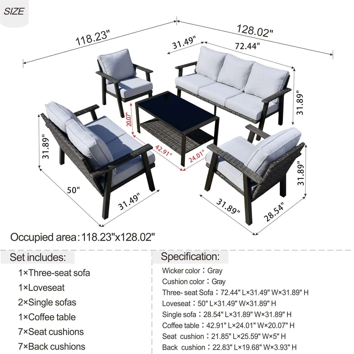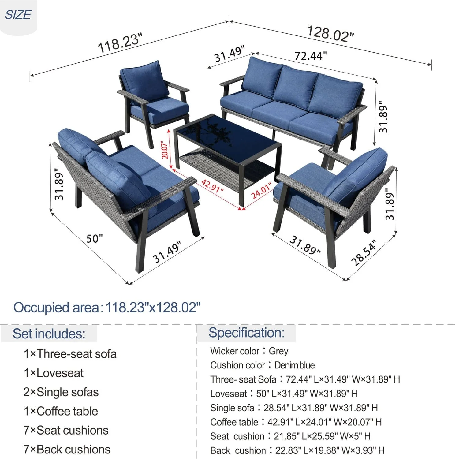 Ovios Patio Conversation Set 7 Person Seating with Table, 5''Cushion, Olefin Fabric