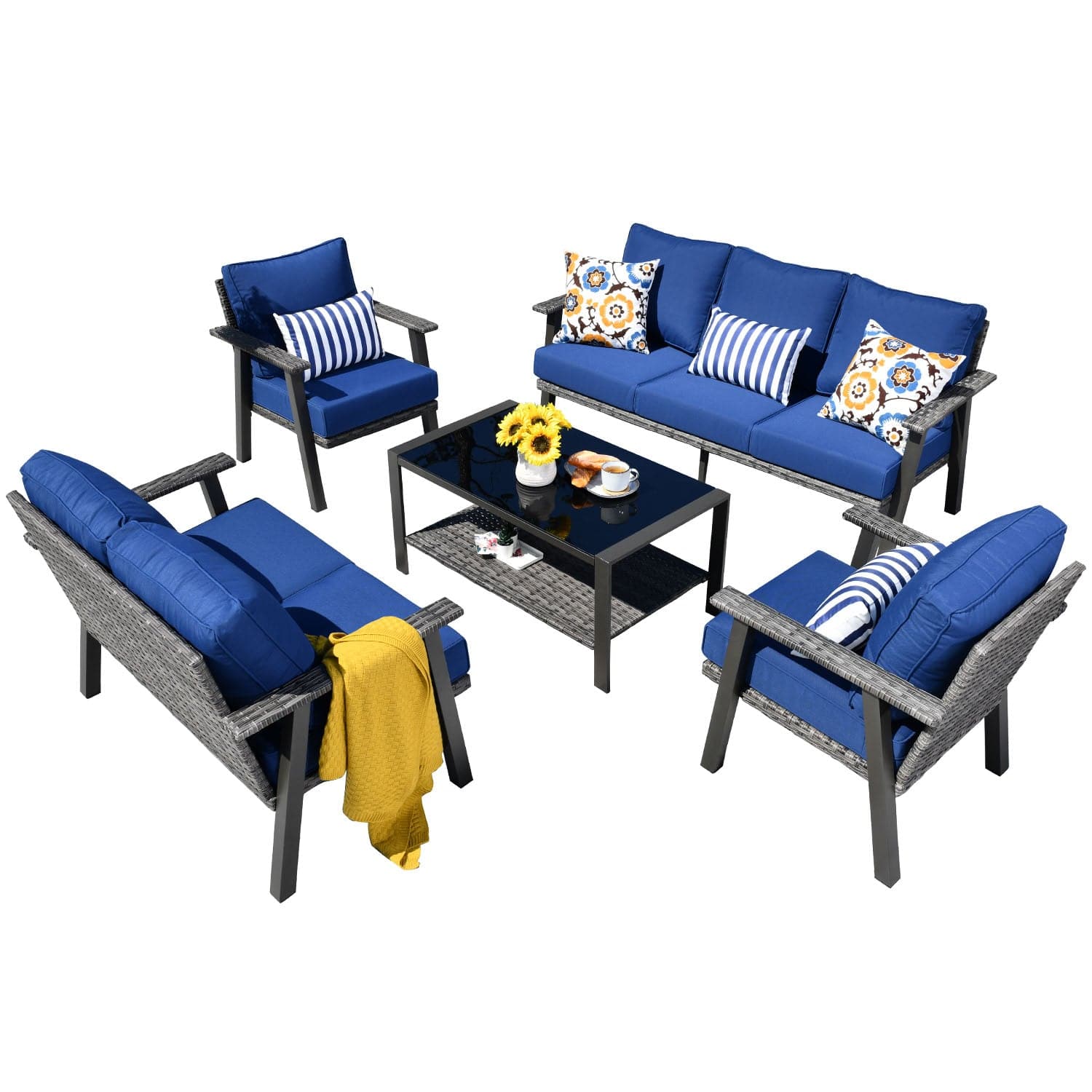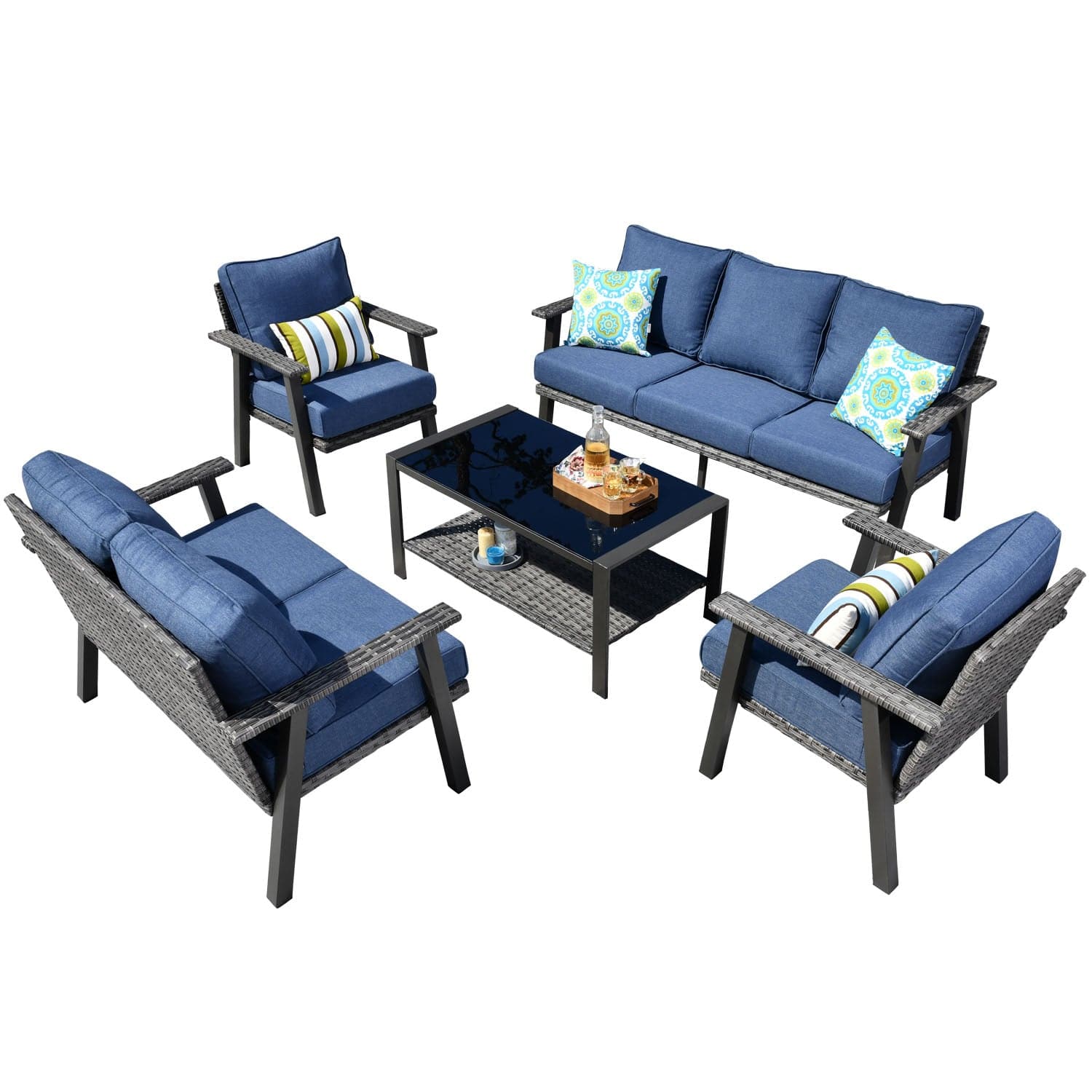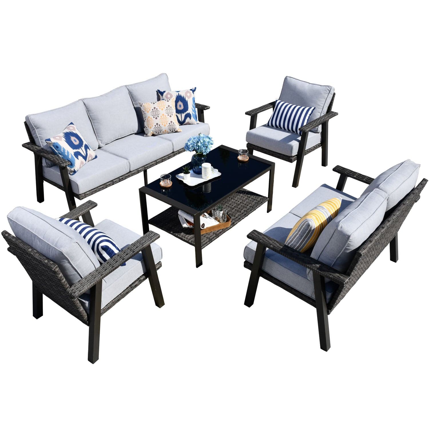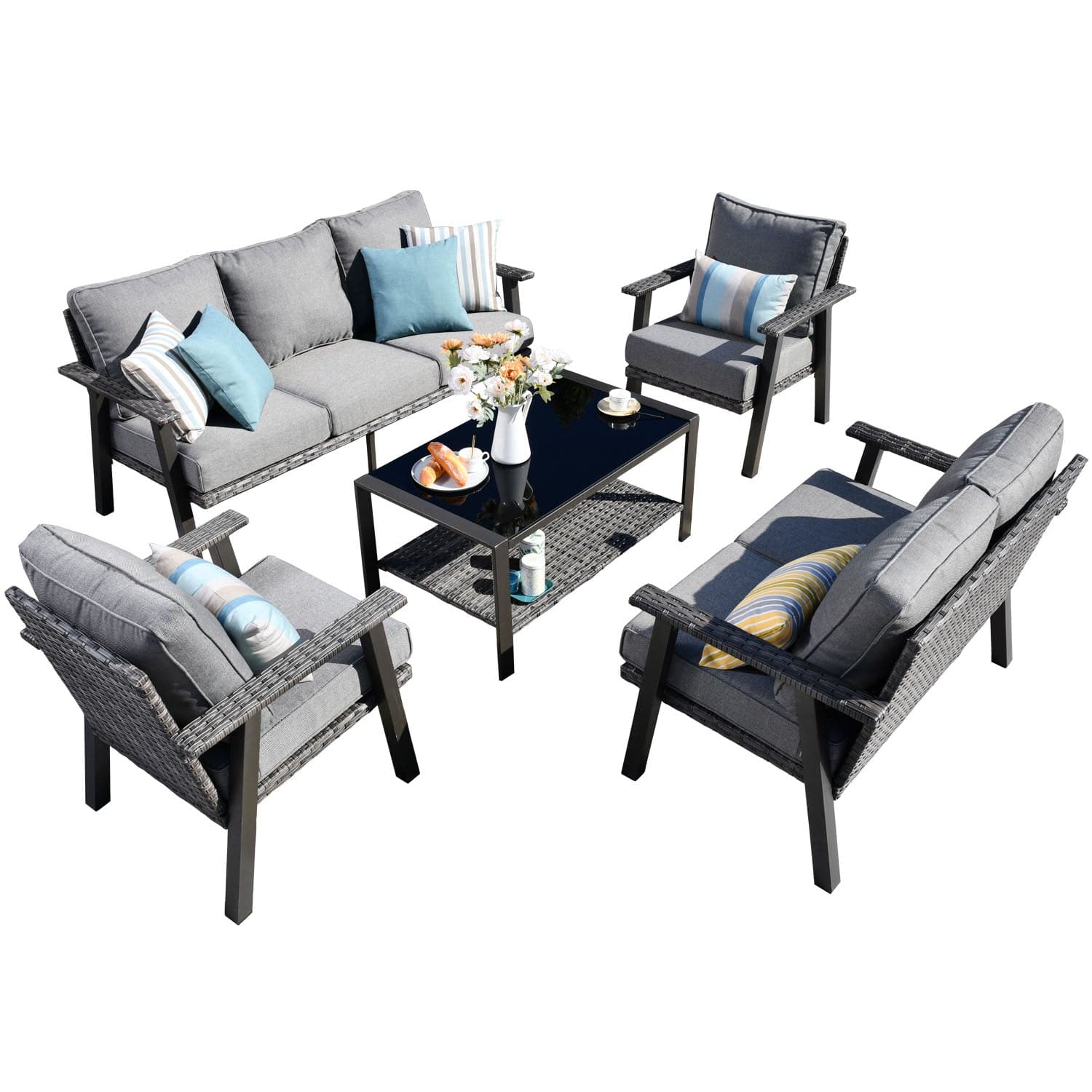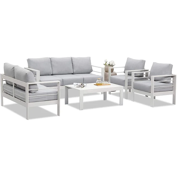 Ovios Patio Conversation Set 7-Person Seating with Table, Aluminum Frame, 5'' Cushion