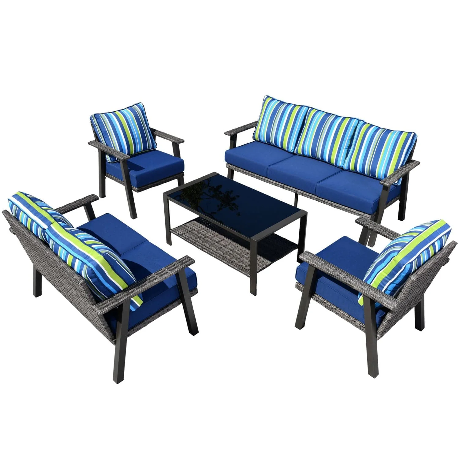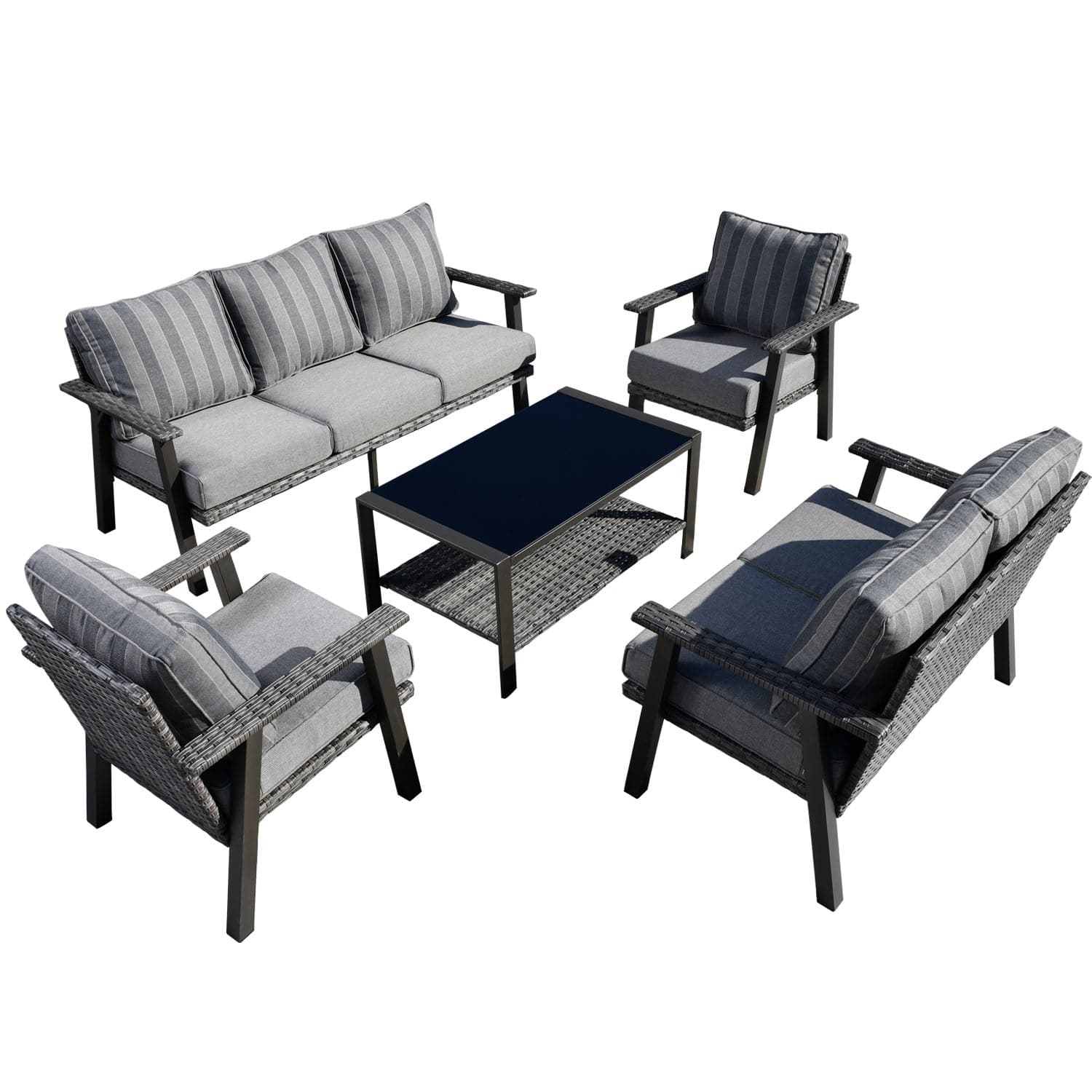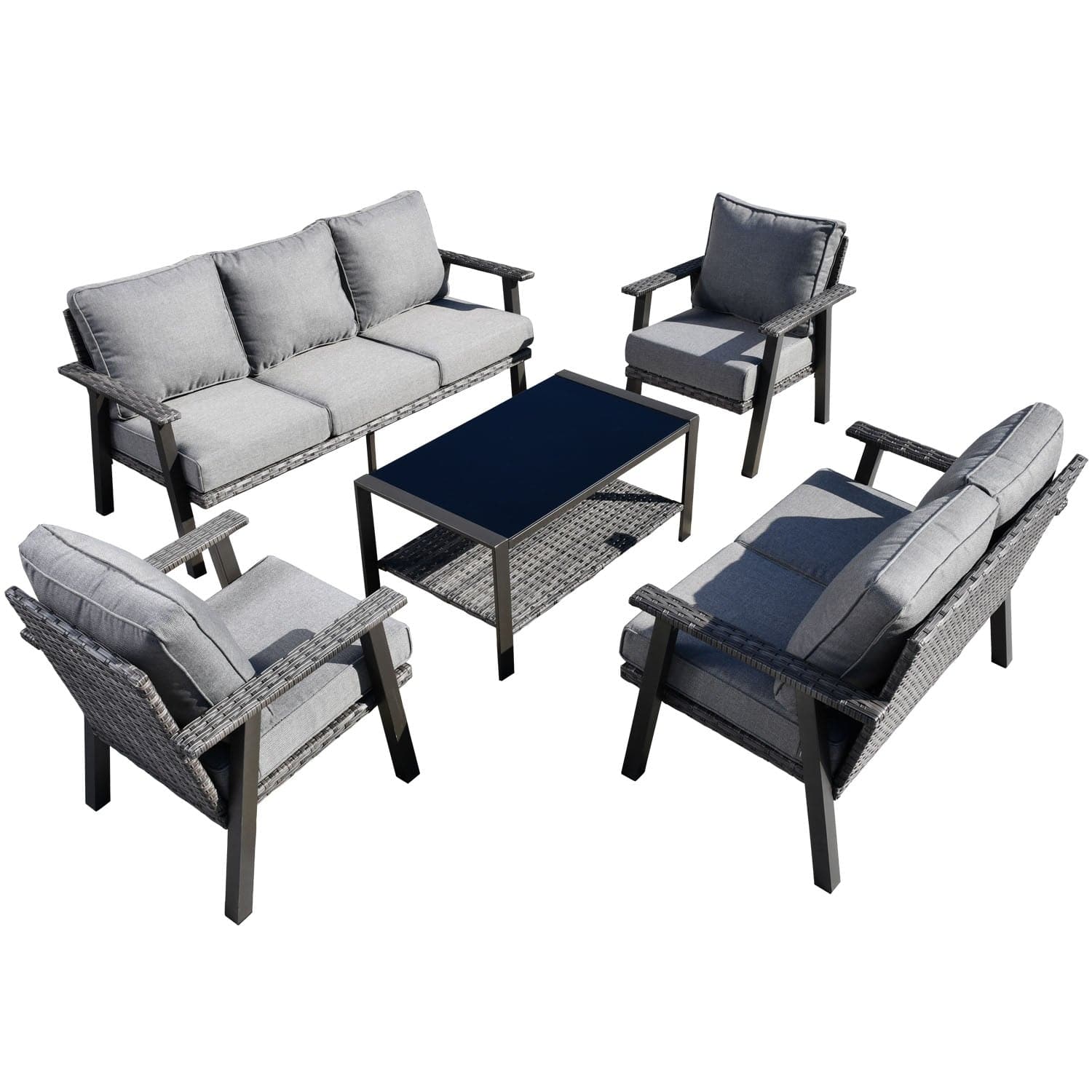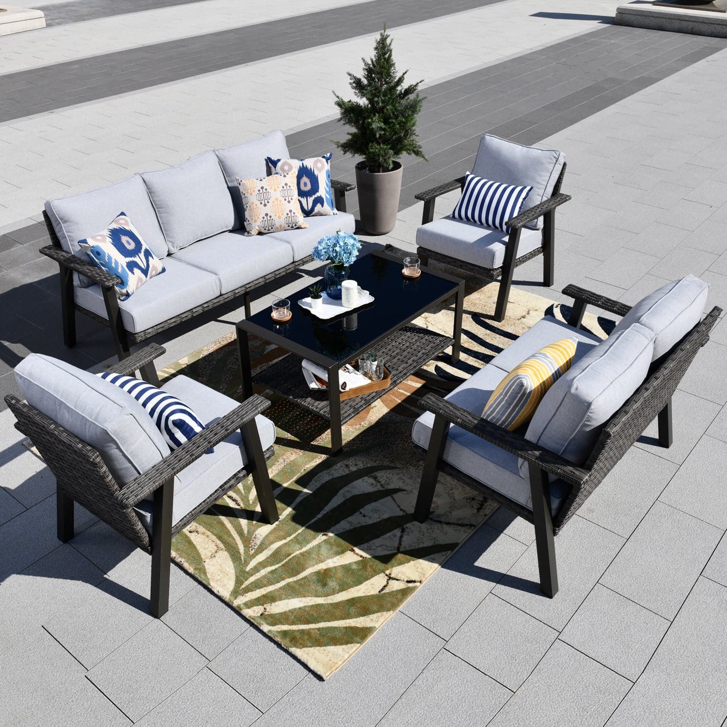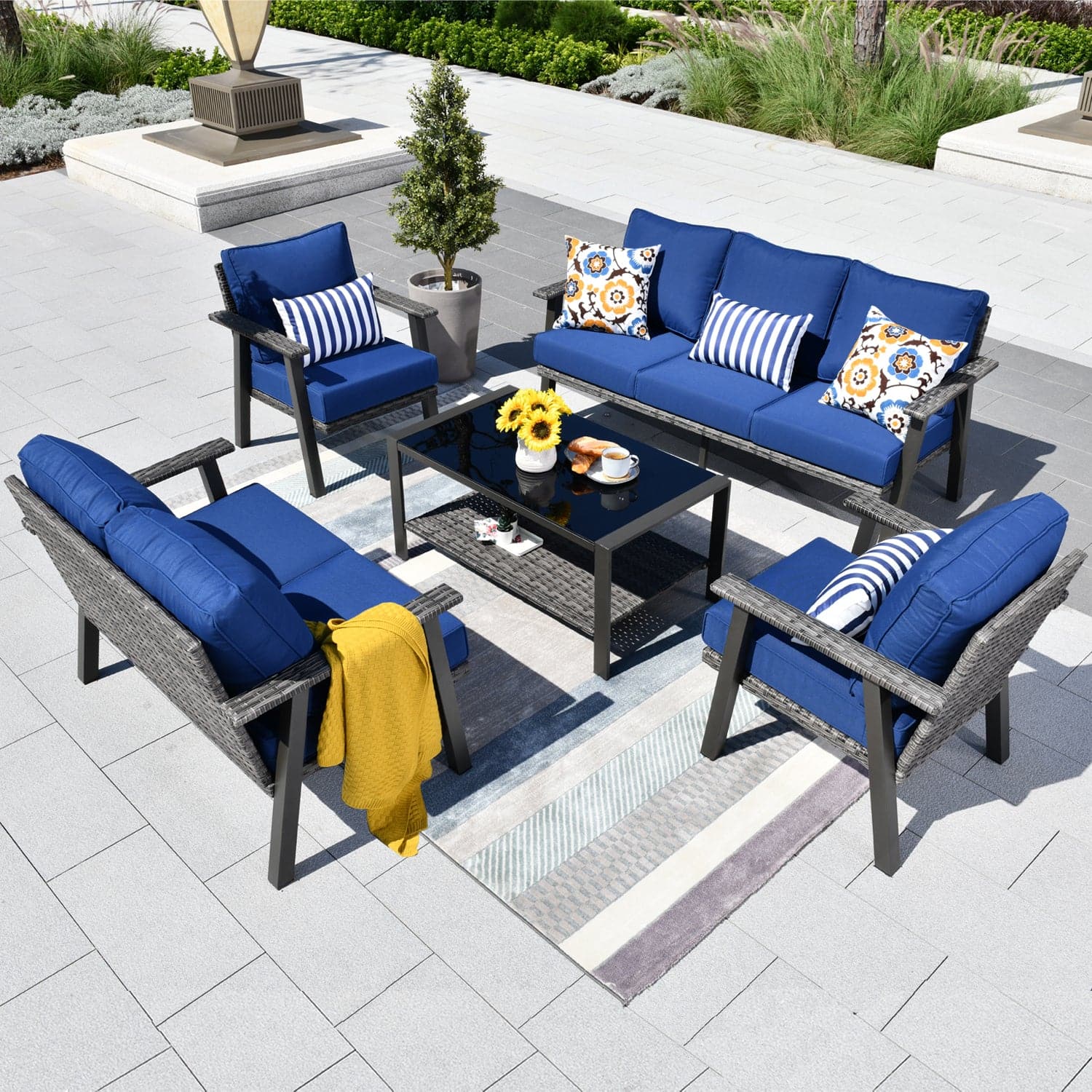 Ovios Patio Conversation Set 7-Person Seating with Table, Aluminum Frame, 5'' Cushion