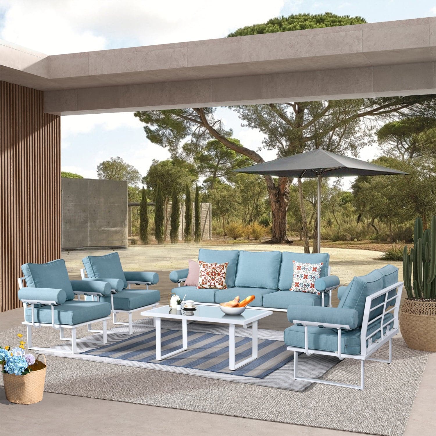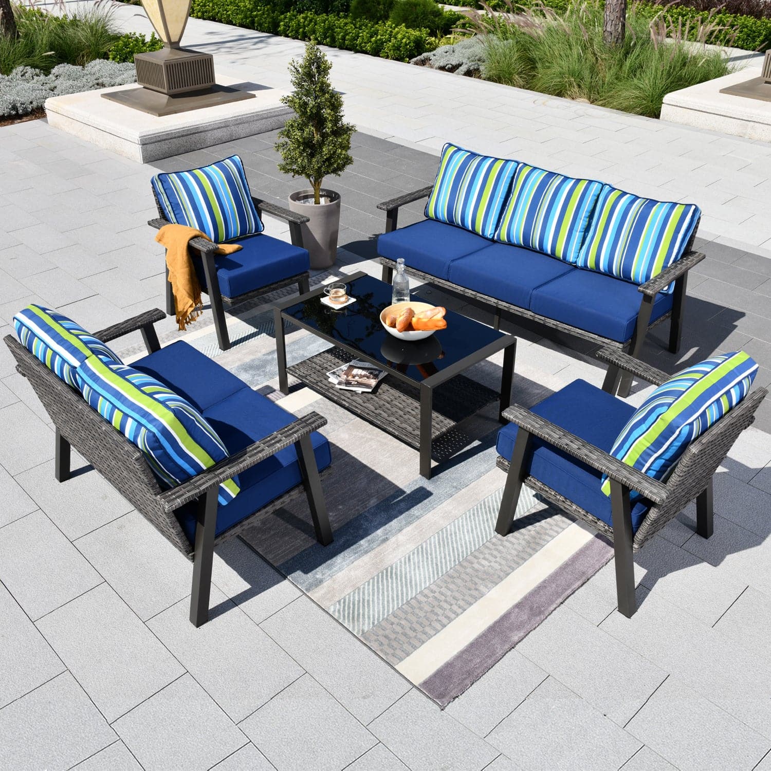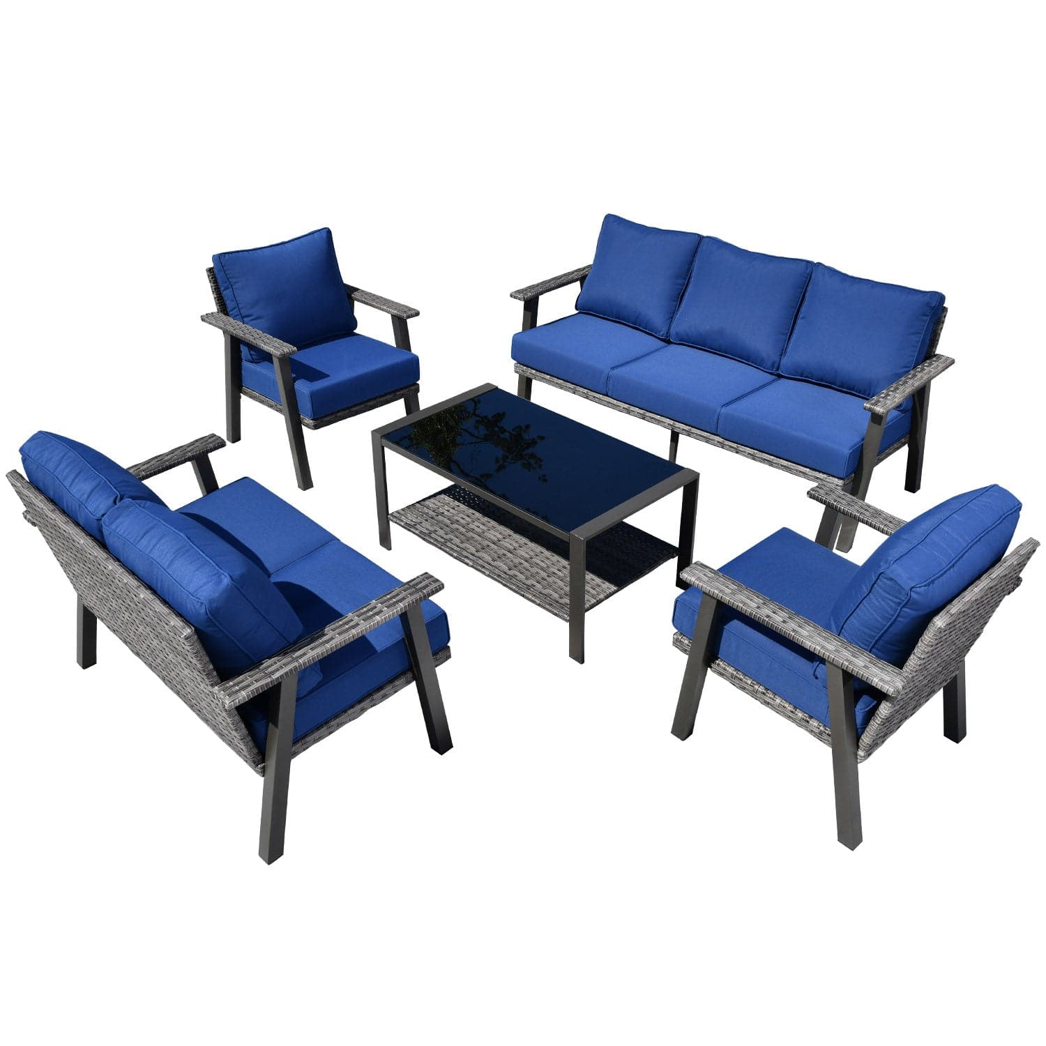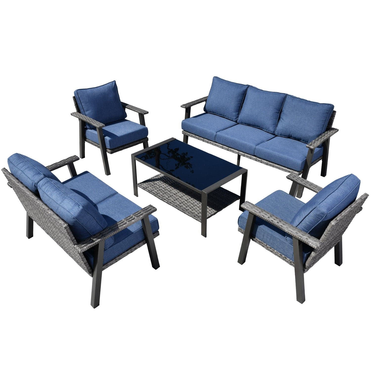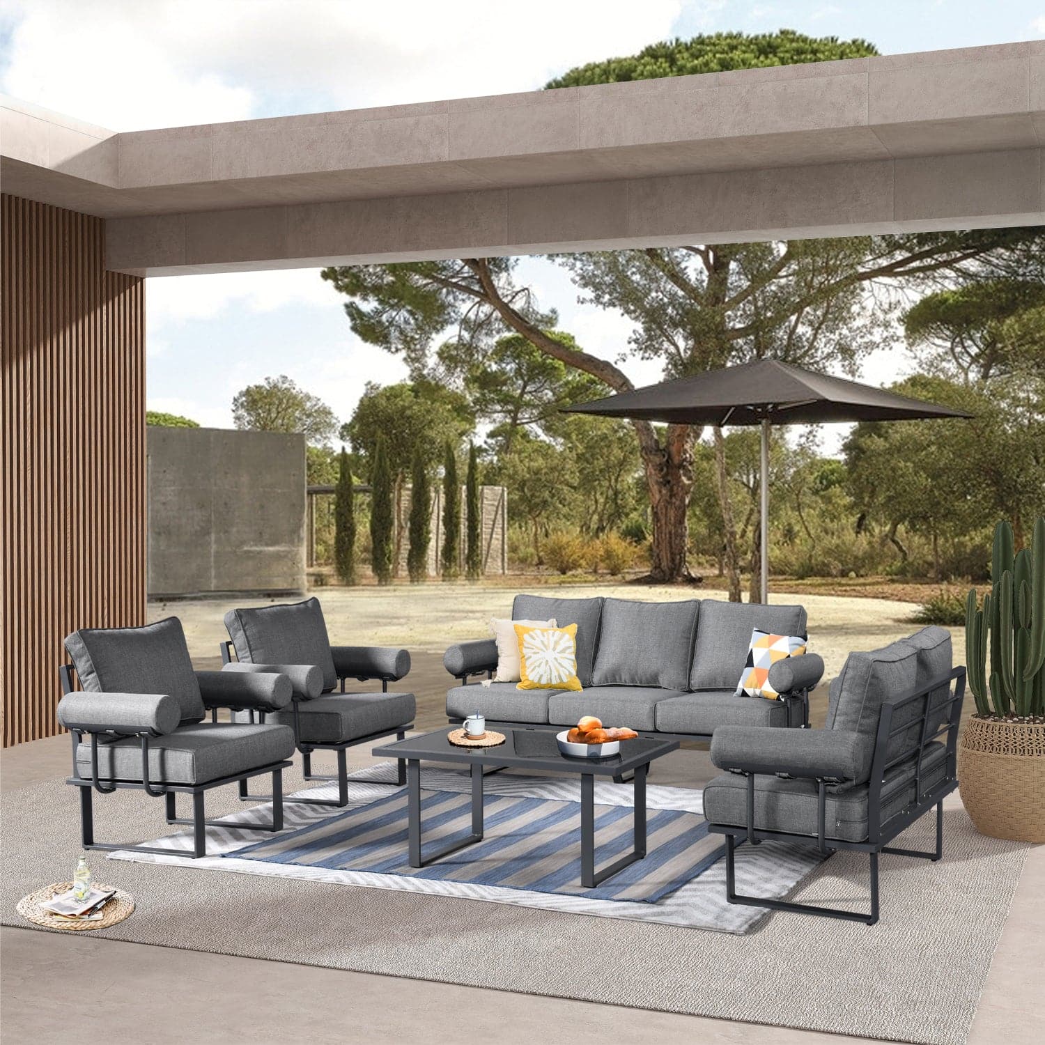Ovios Patio Conversation Set 7-Person Seating with Table, Aluminum Frame, 5'' Cushion