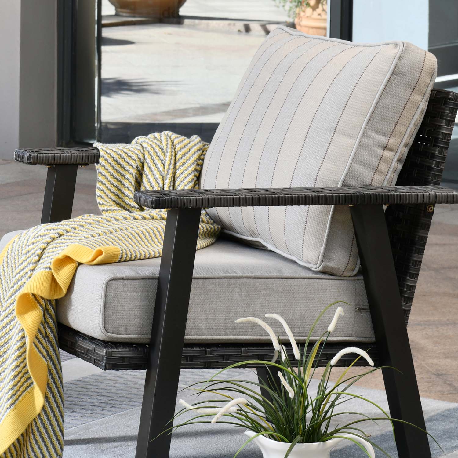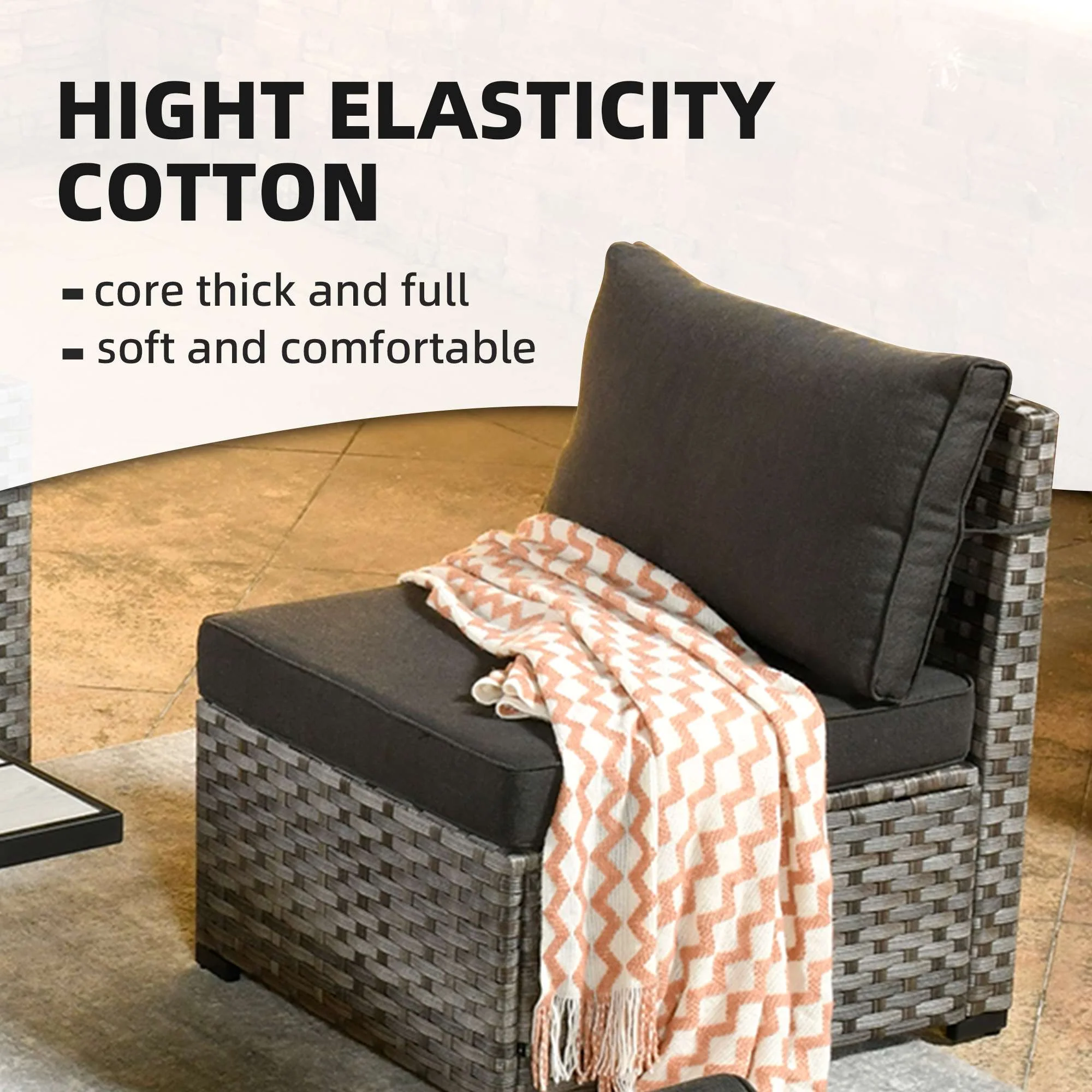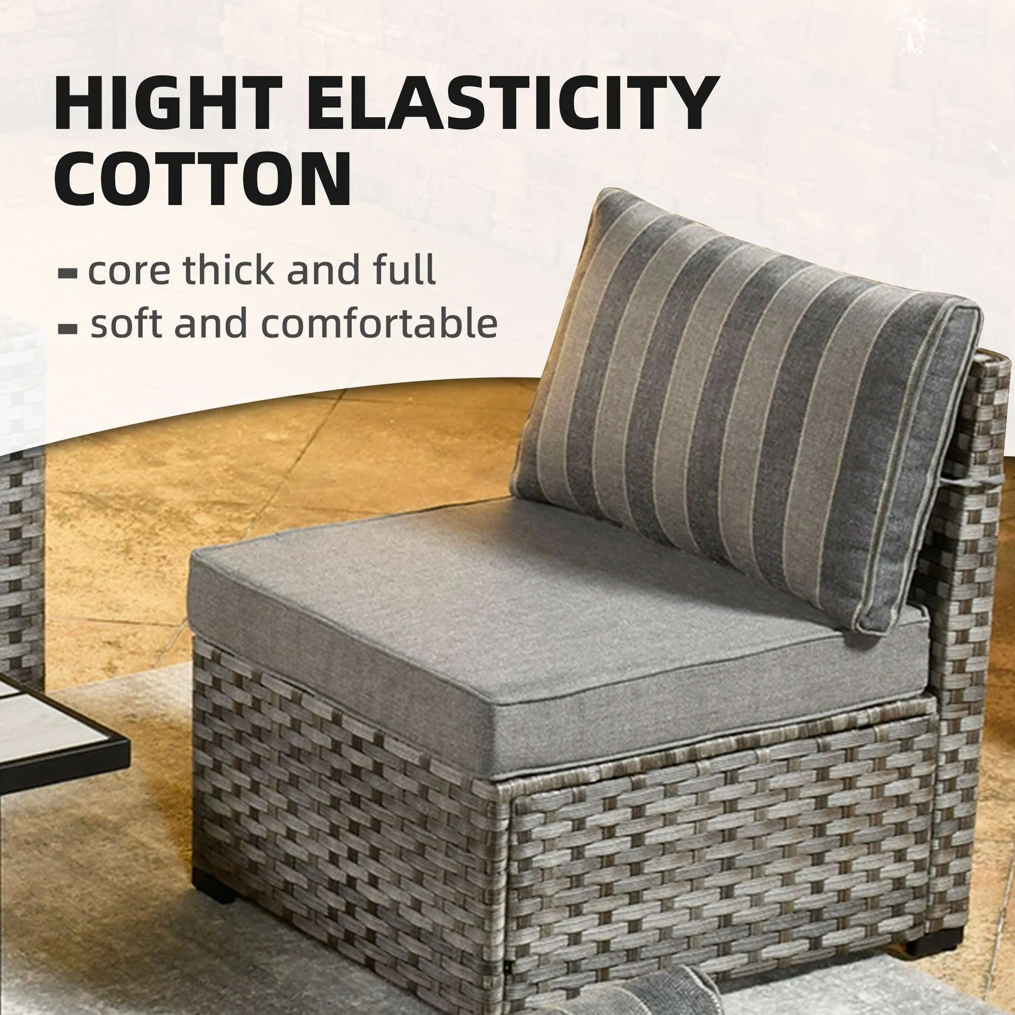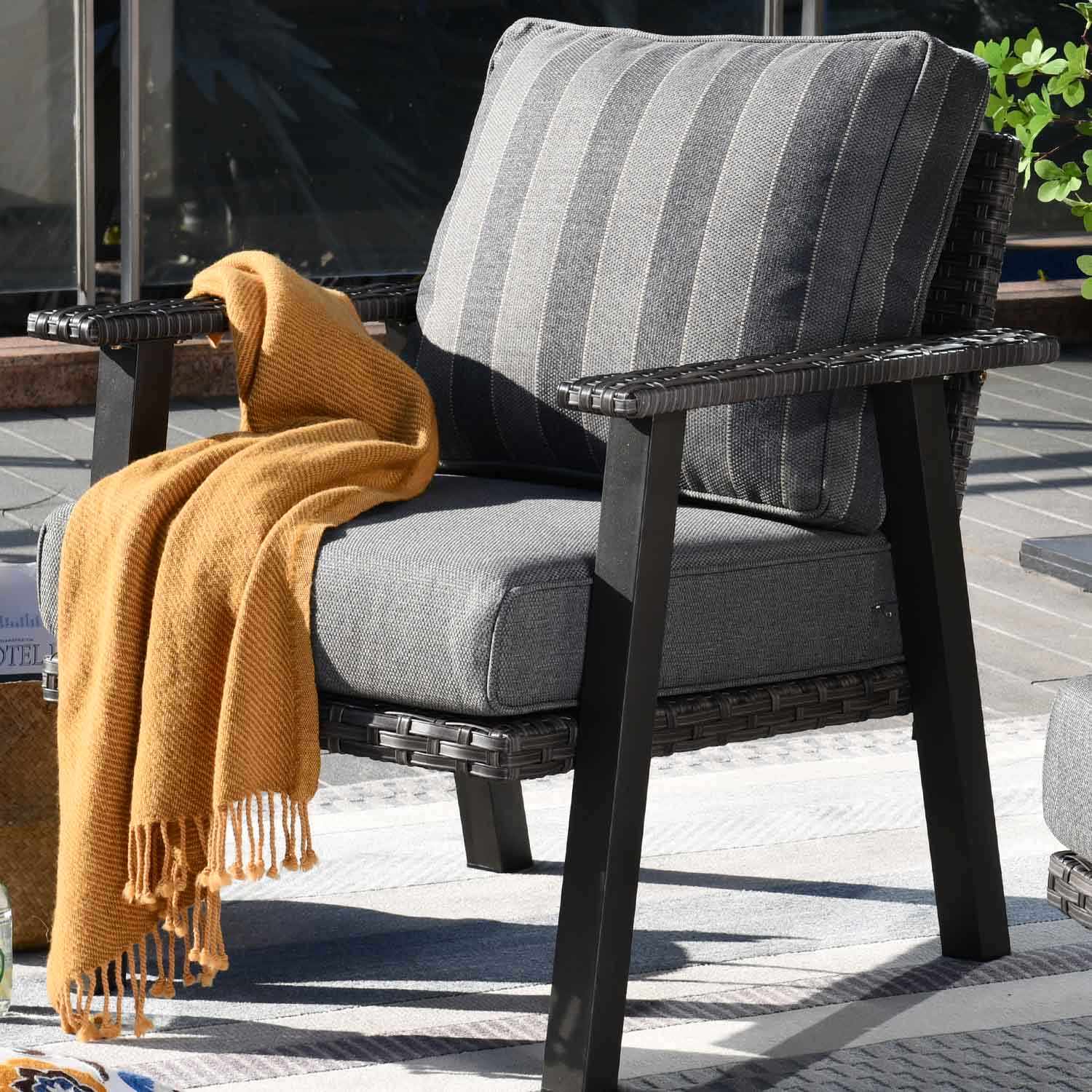 Grey Wicker Black Cushion