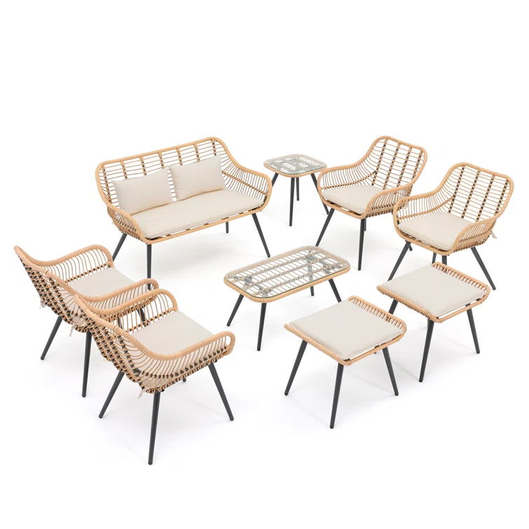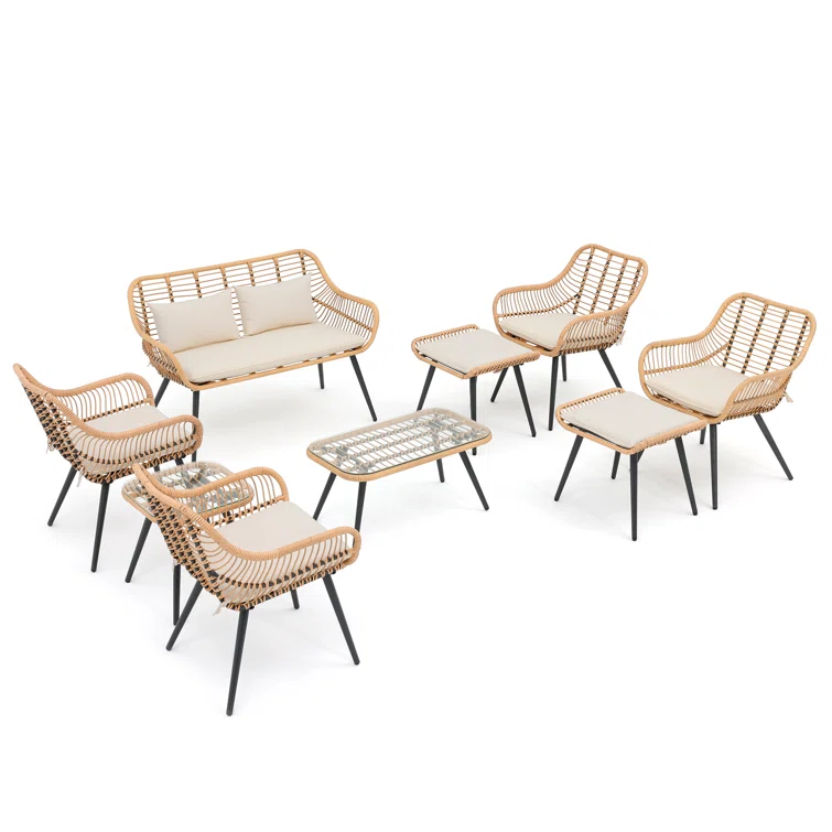 Ovios Athena Series Outdoor Patio Furniture Set 8-Piece with Cushions All Weather Wicker