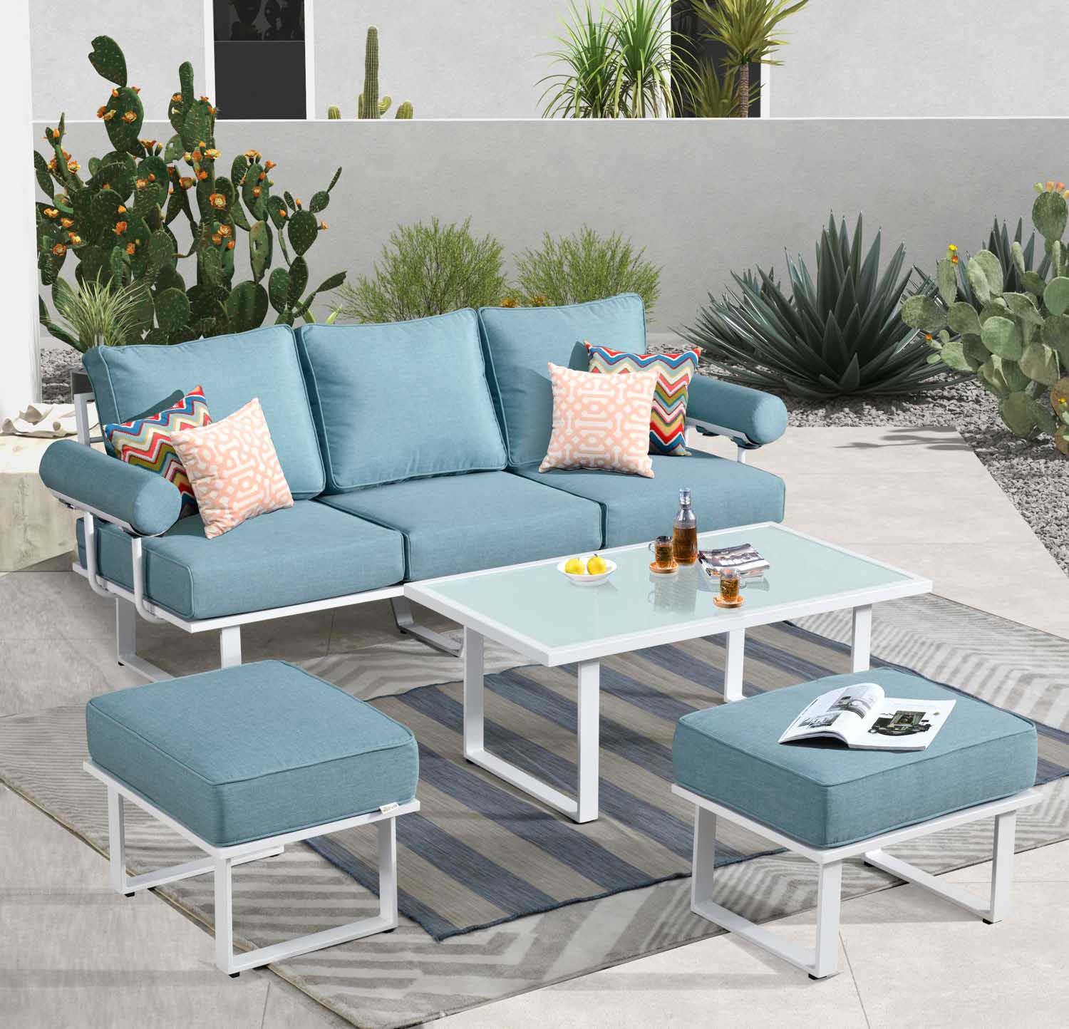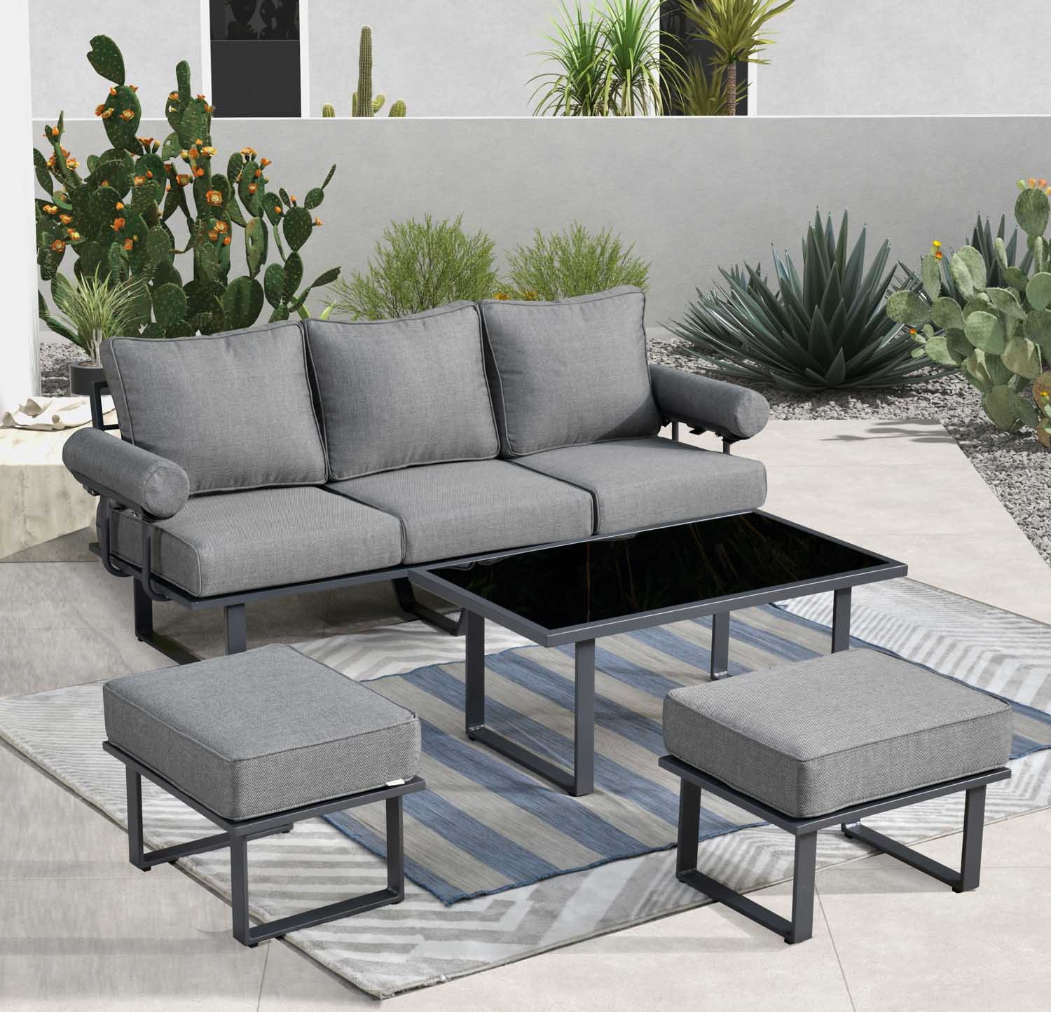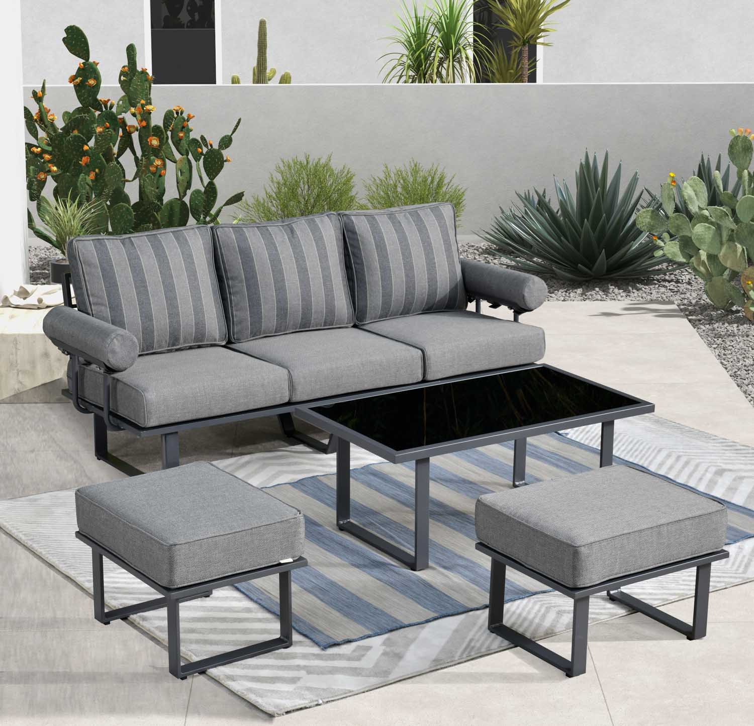 Ovios Outdoor Couch New Vultros 3-Piece High Back with Ottoman