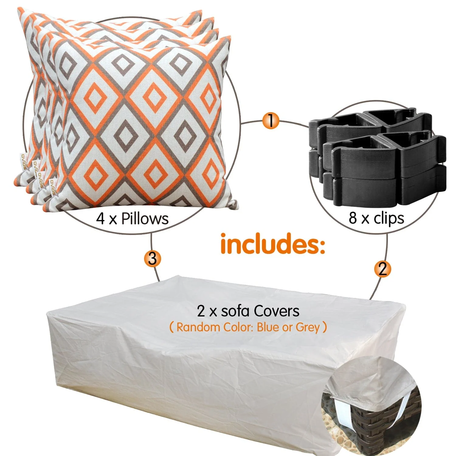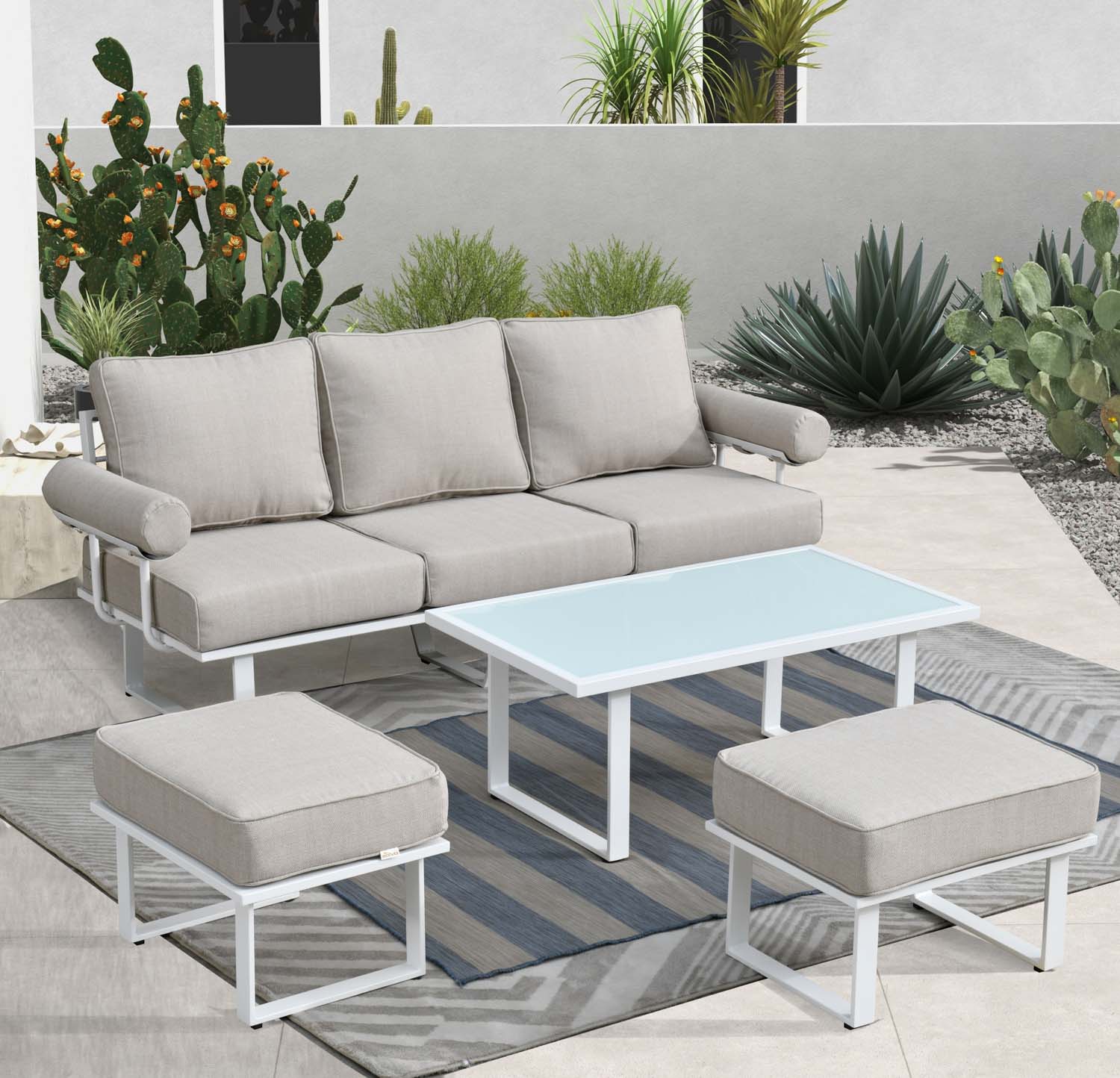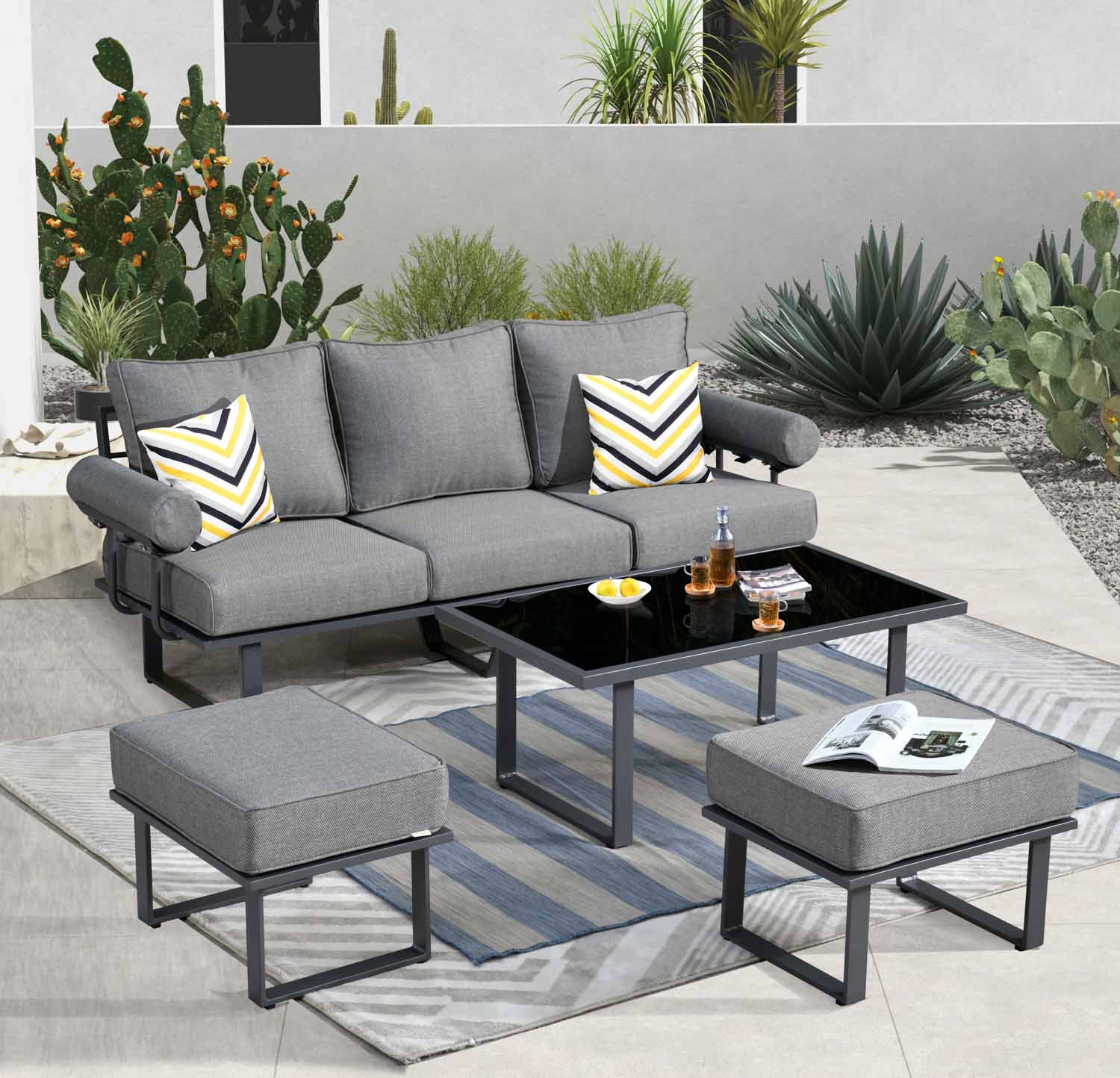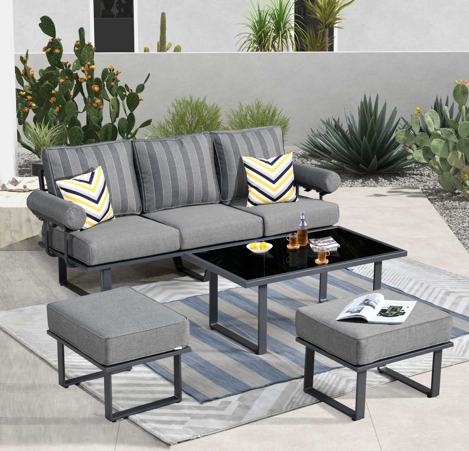 Ovios Outdoor Couch New Vultros 3-Piece High Back with Ottoman
