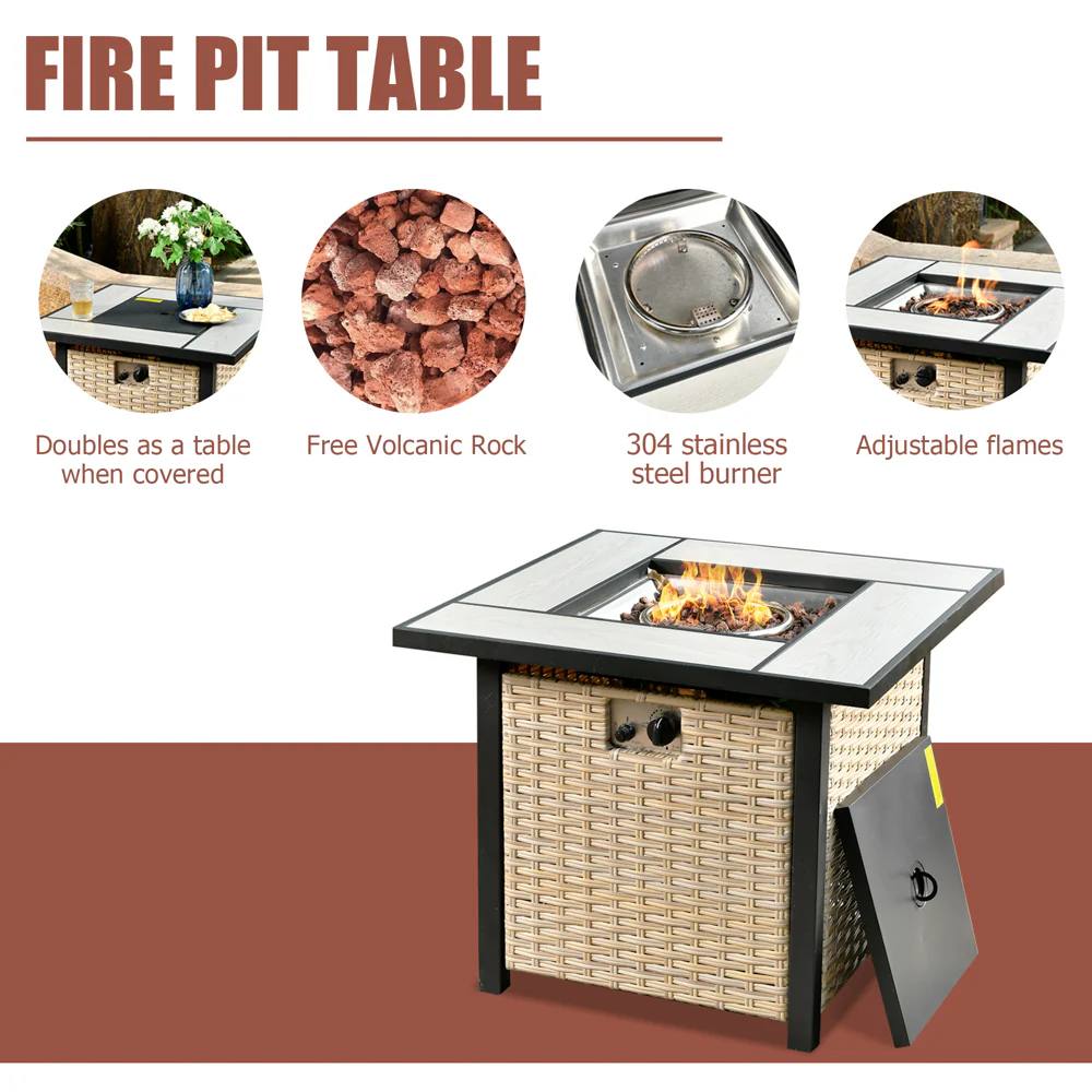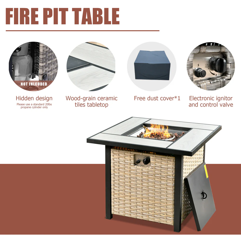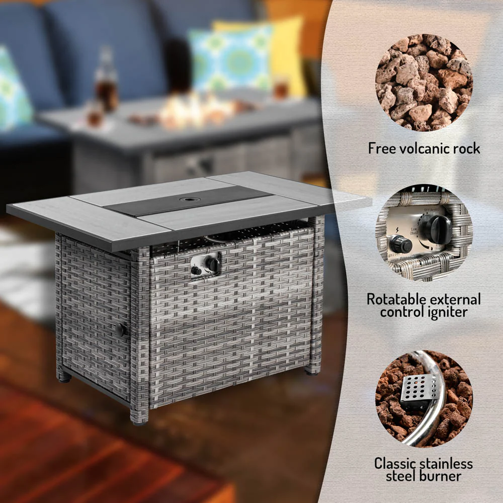 Ovios Rectangle Patio Propane Outdoor 42.12'' Fire Pit Table with Lid