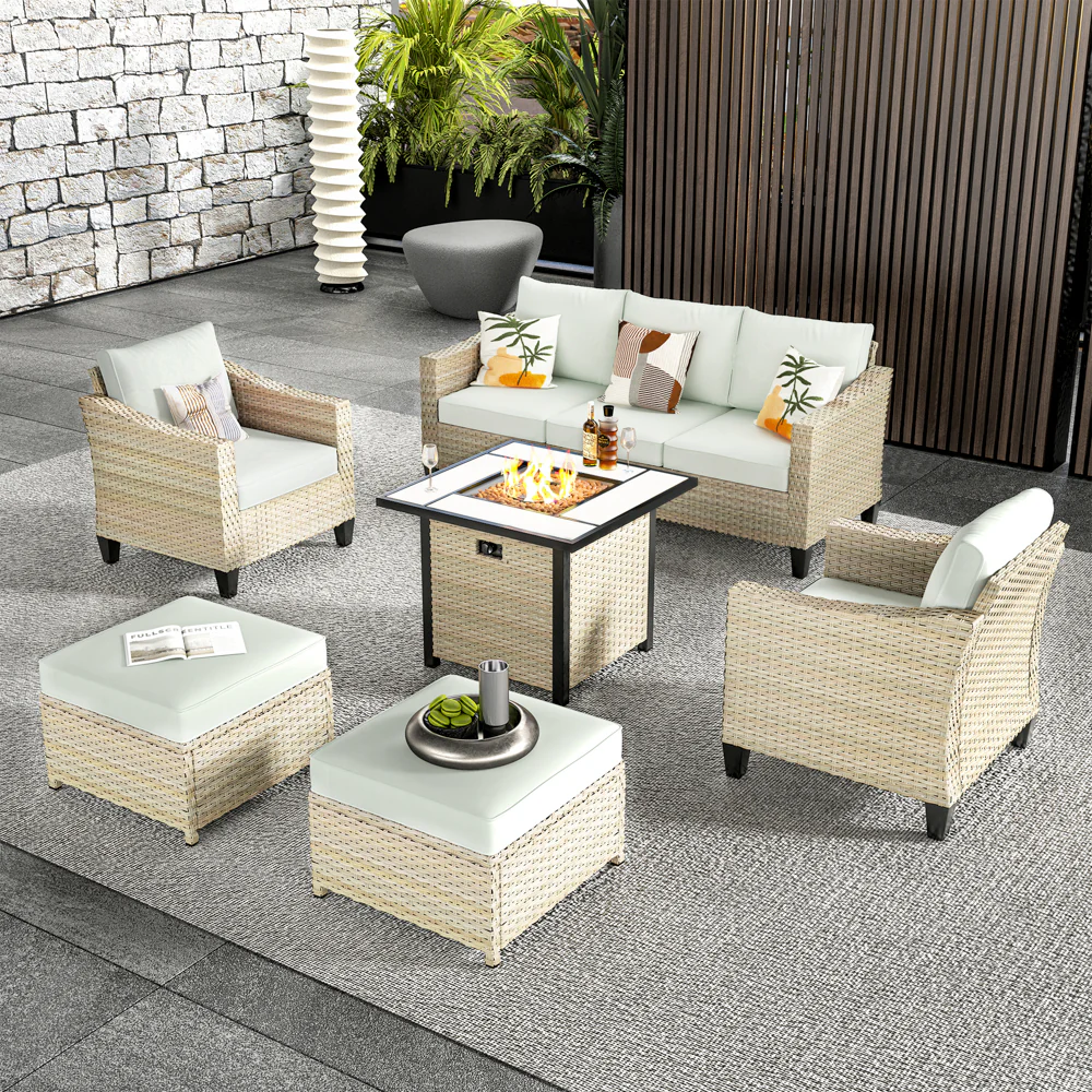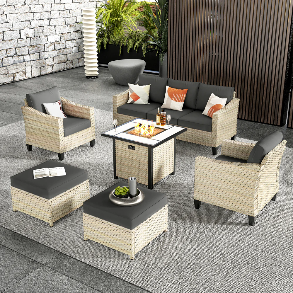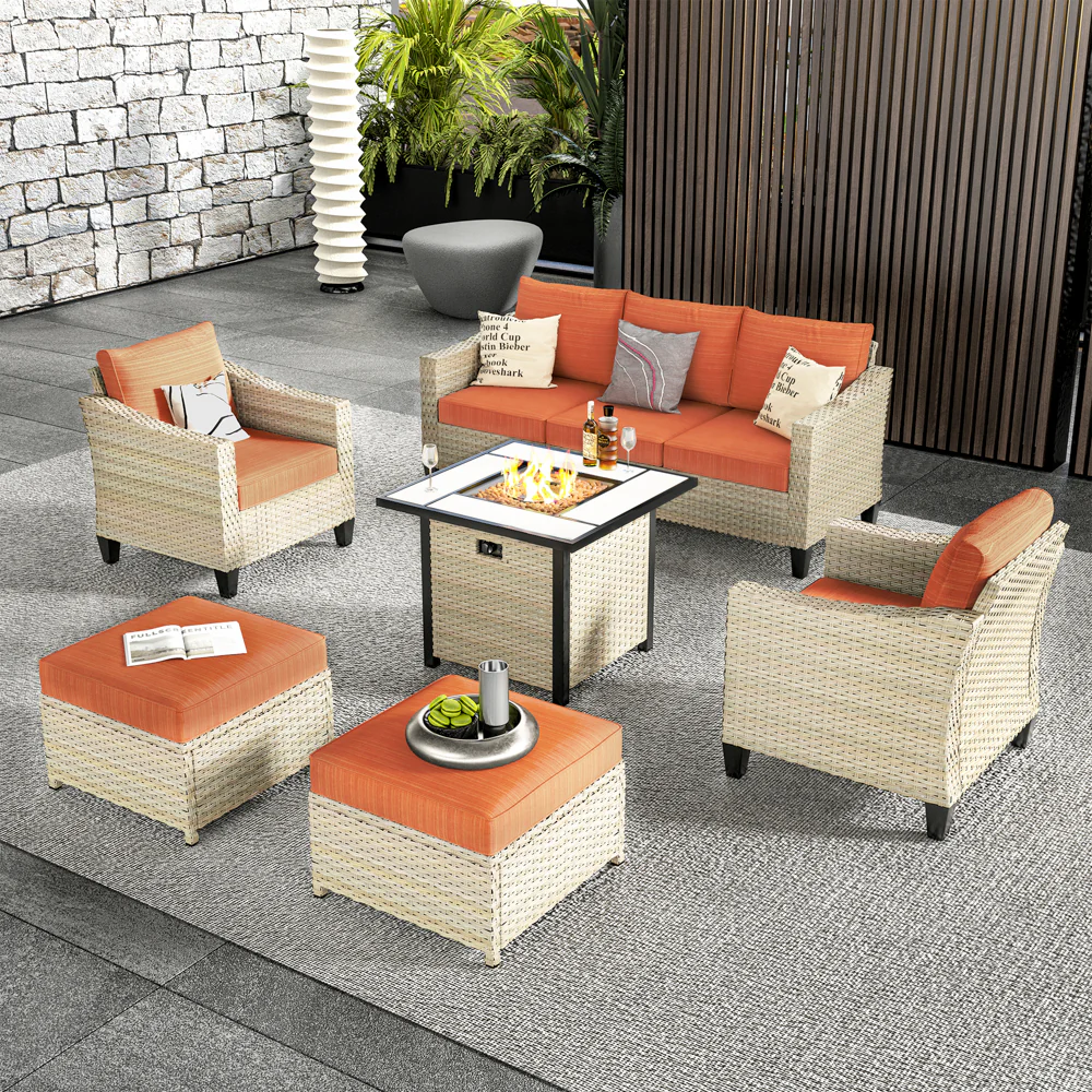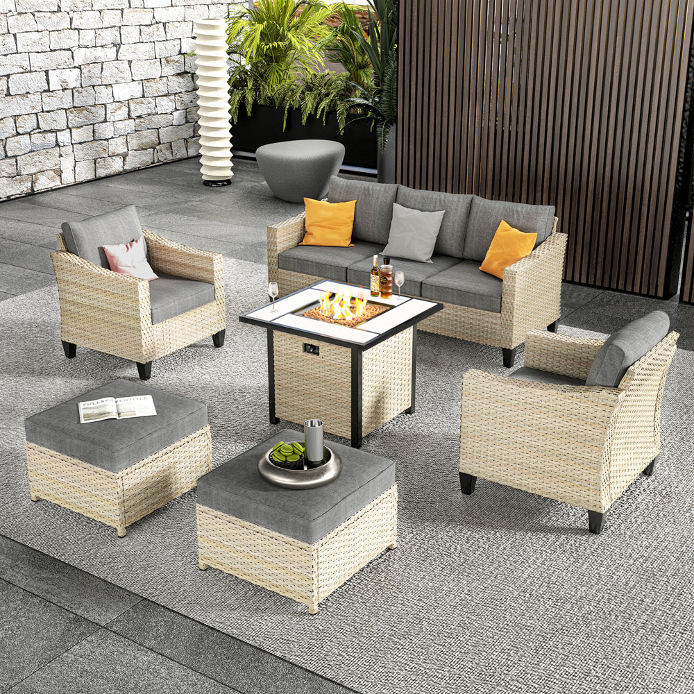Ovios Athena Series Outdoor Patio Furniture Set with 30'' Fire Pit Table 6-Piece