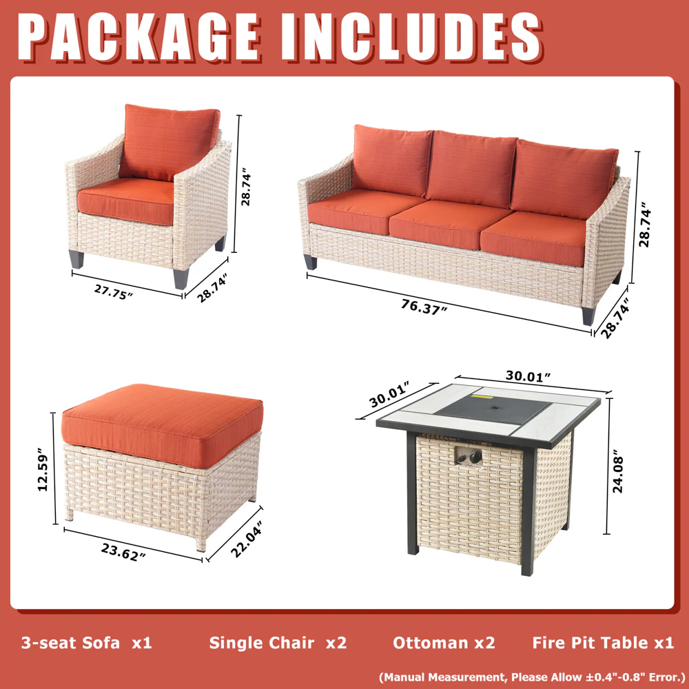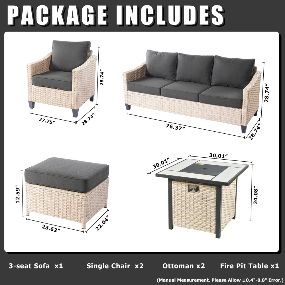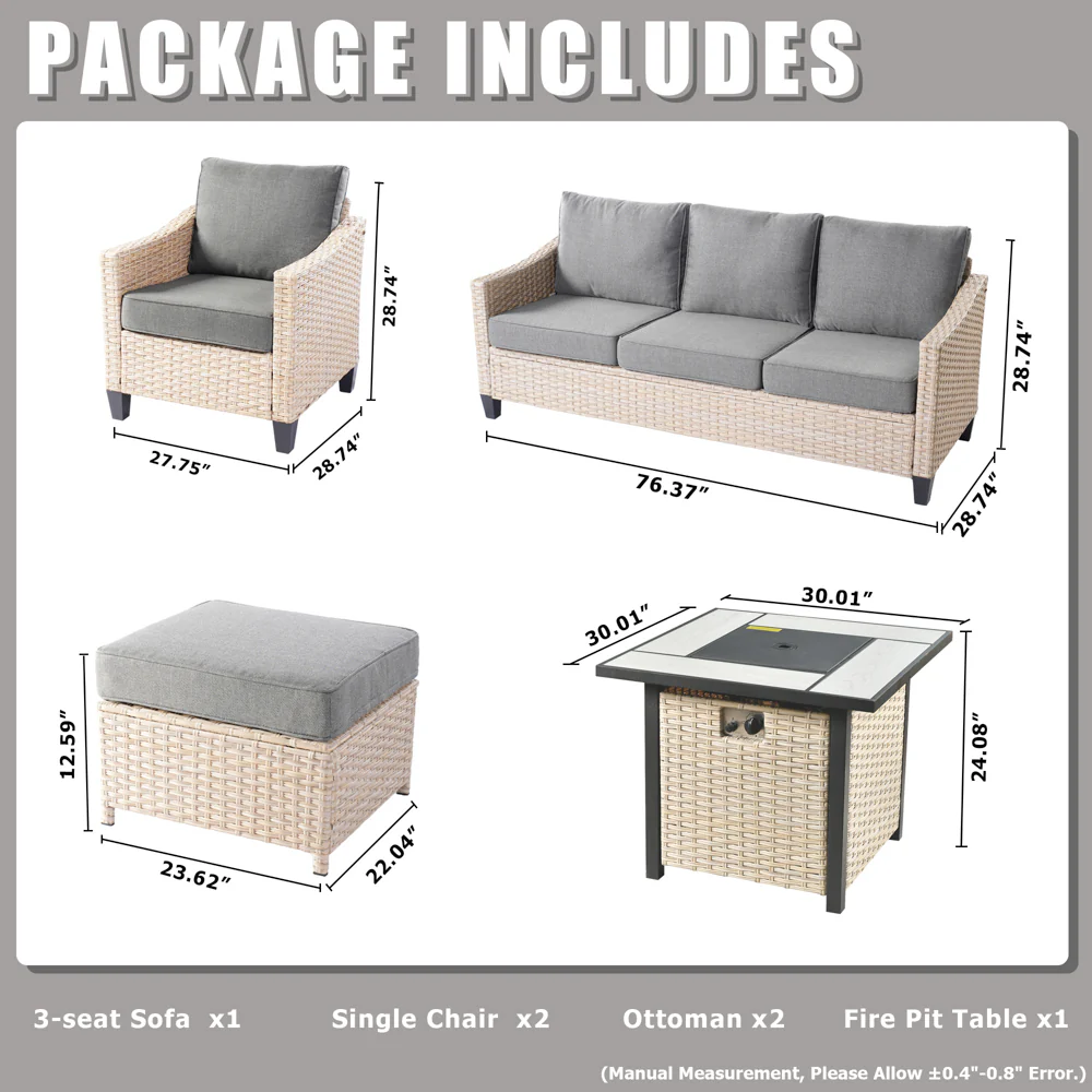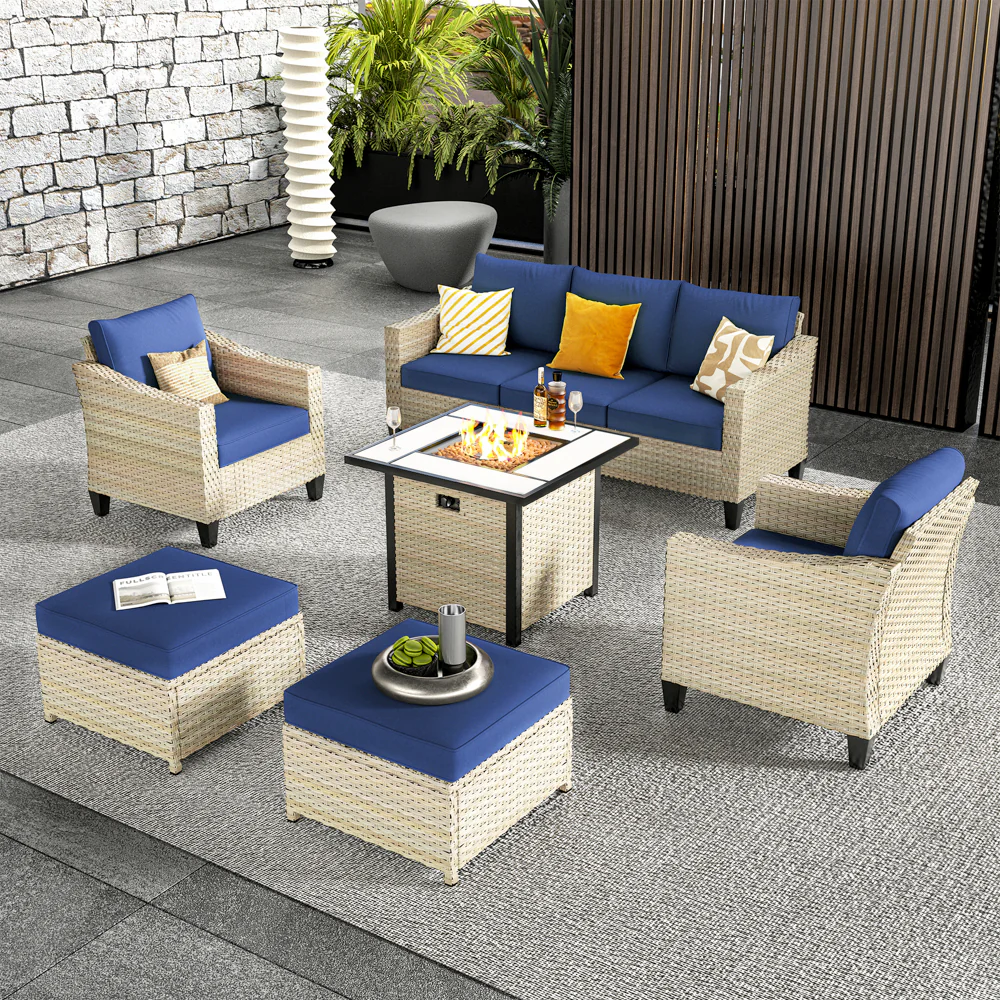 Ovios Athena Series Outdoor Patio Furniture Set with 30'' Fire Pit Table 6-Piece