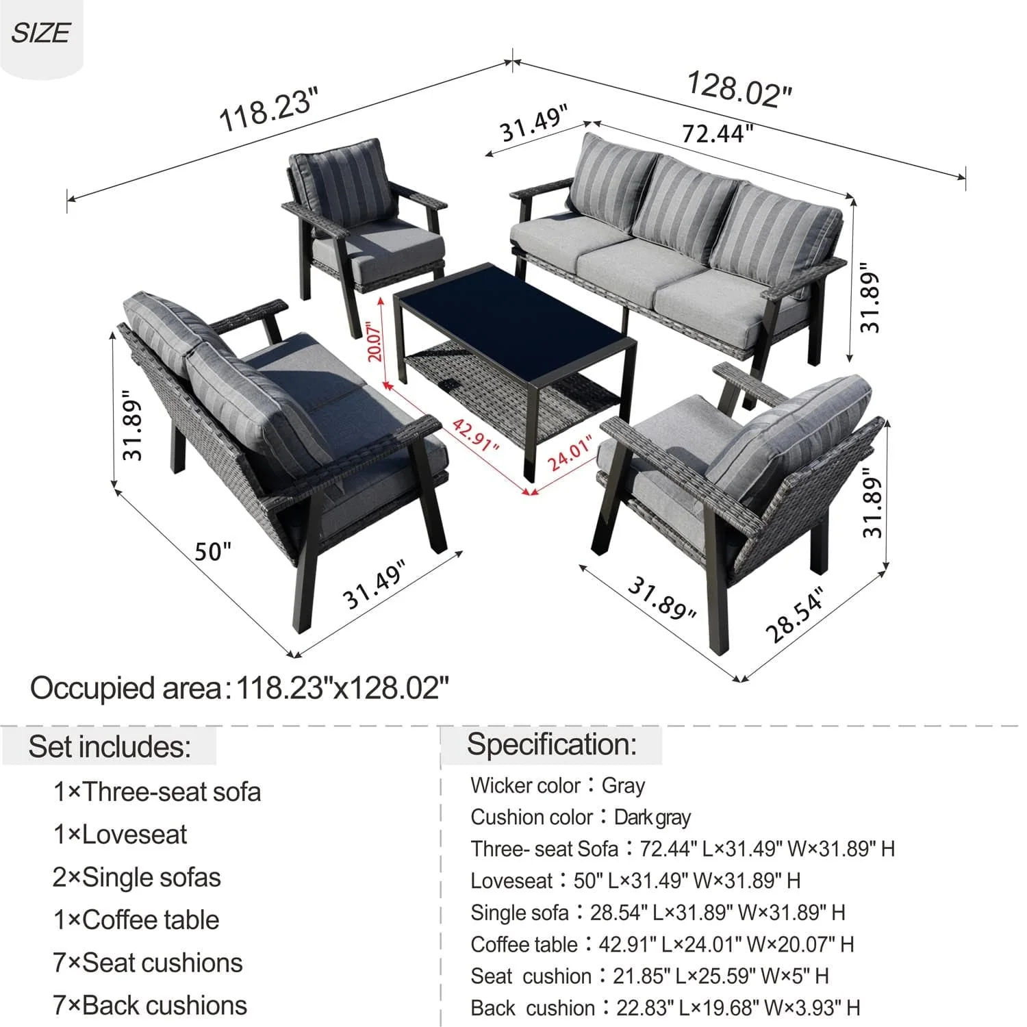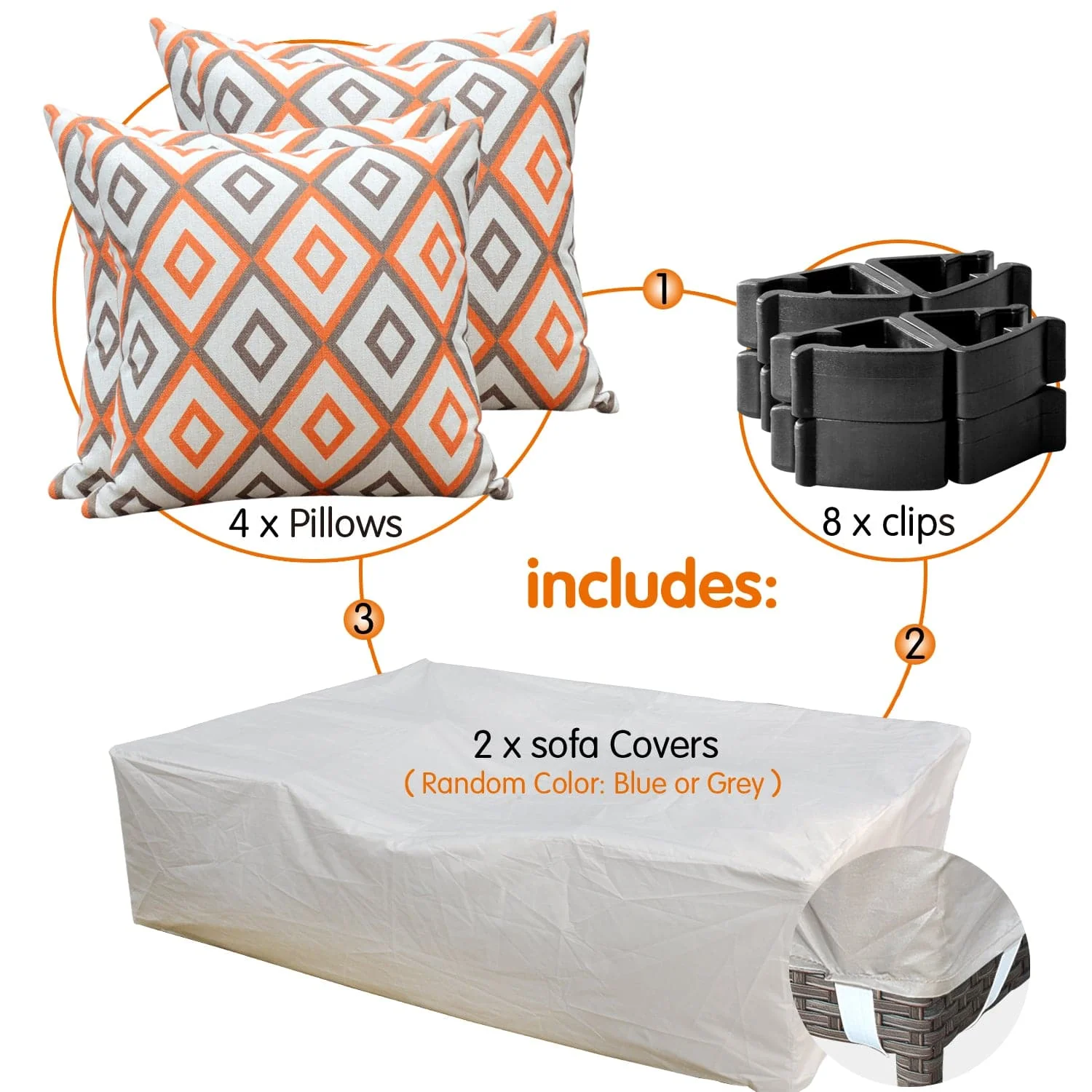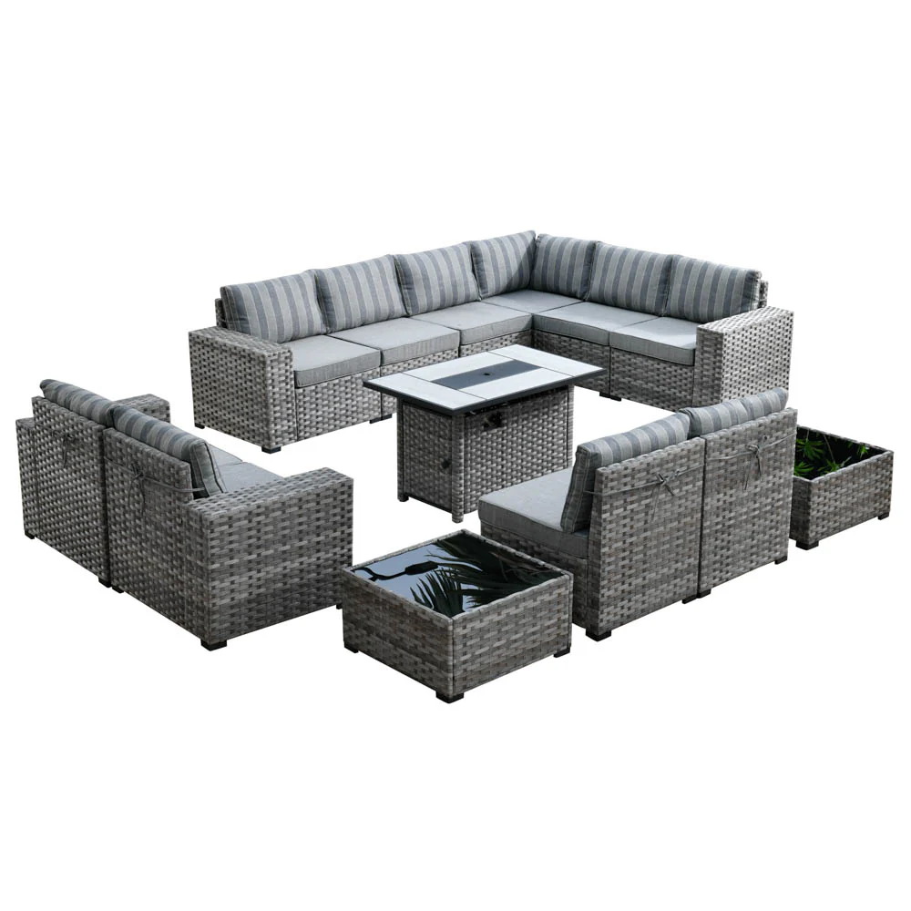Ovios Patio Furniture Set Bigger Size 12-Piece with Grey Sunbrella, King Series, Fully Assembled