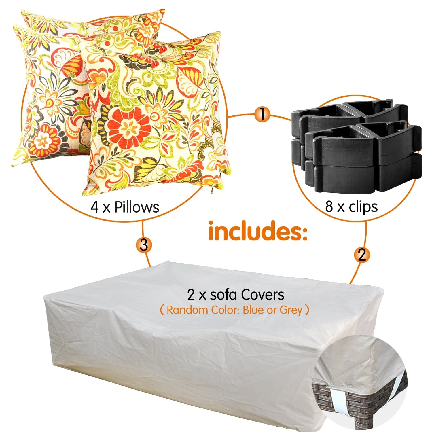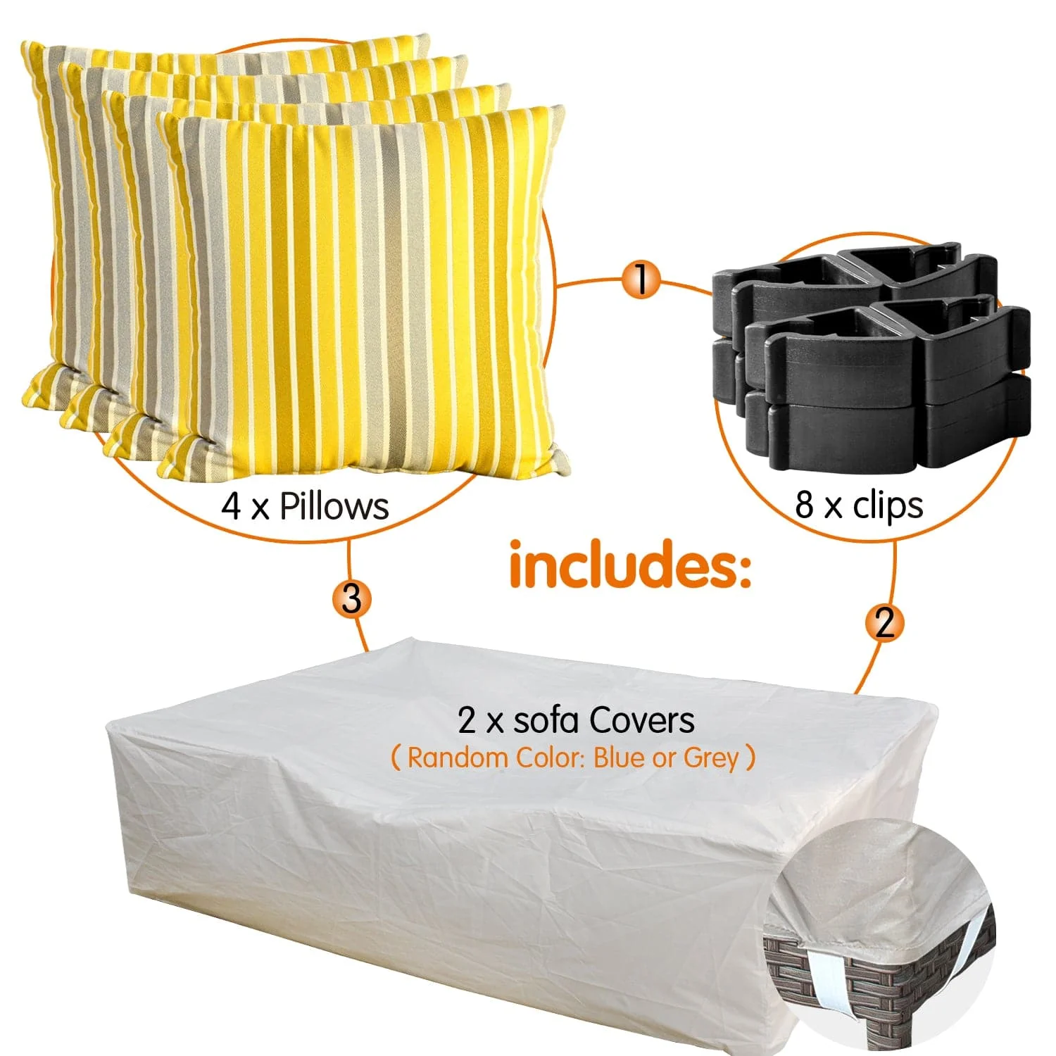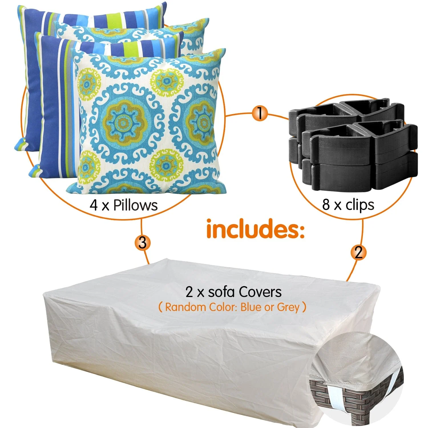 Ovios Patio Furniture Set Bigger Size 12-Piece with Grey Sunbrella, King Series, Fully Assembled