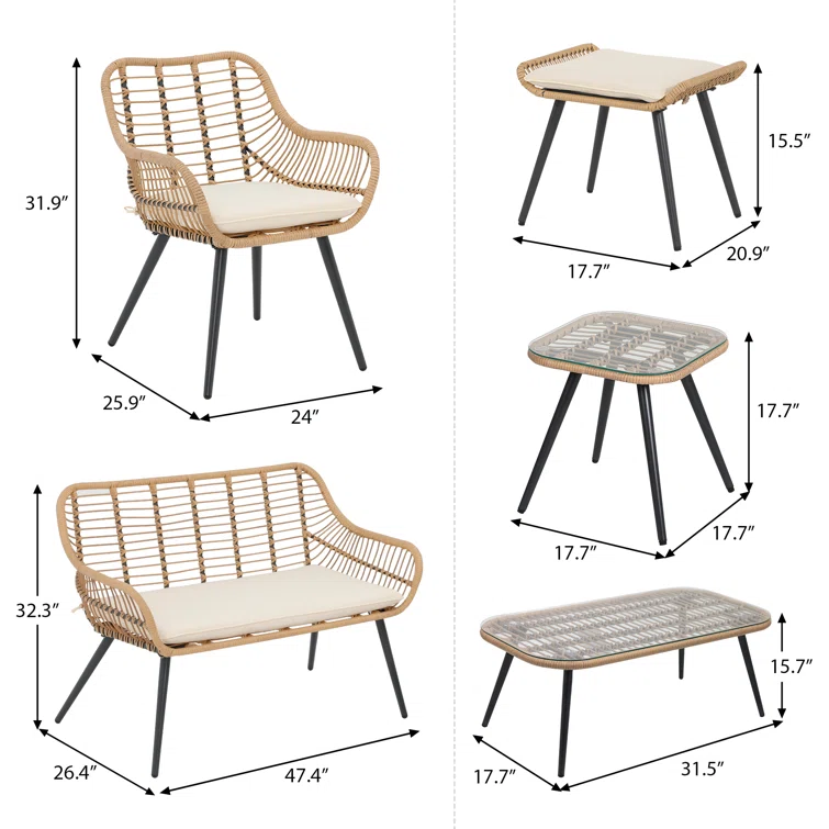 5 - Person Outdoor Seating Group with Cushions