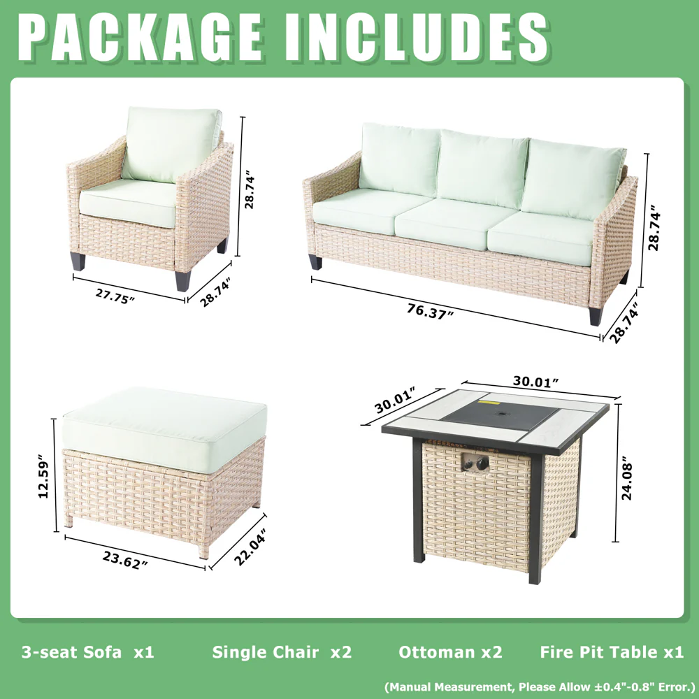 Ovios 7 Pieces Patio Furniture Set with 7.68'' Broad Handrails and 30'' Fire Pit Table