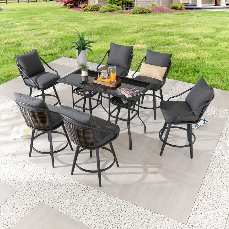 Ovios Patio Conversation Set 7-Piece with Swivel Chairs and Table Kenard