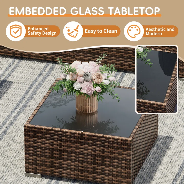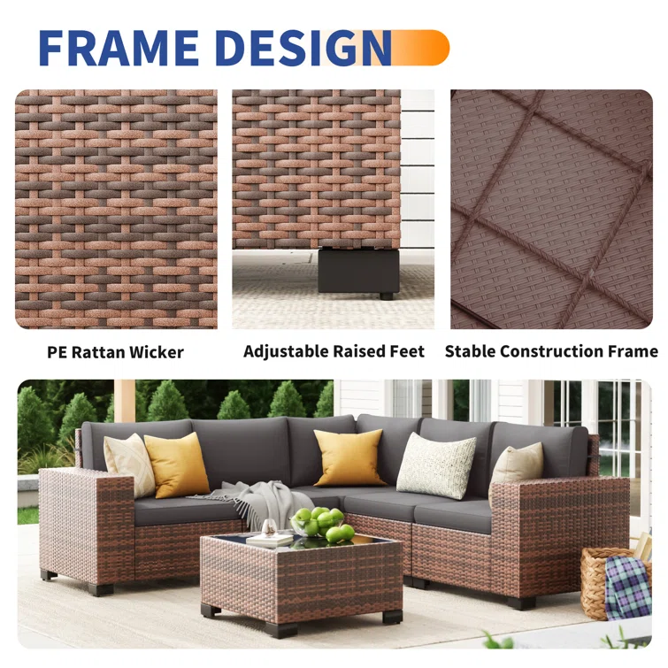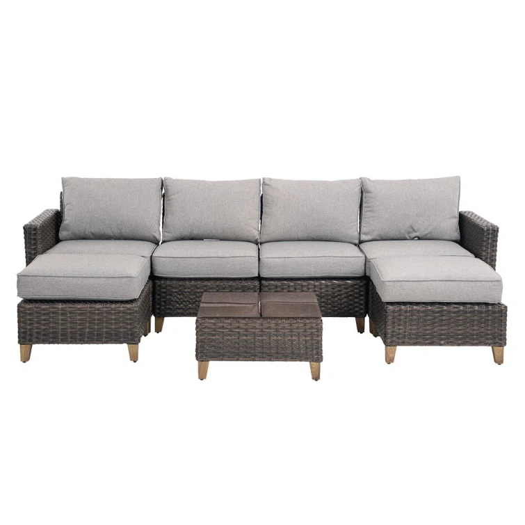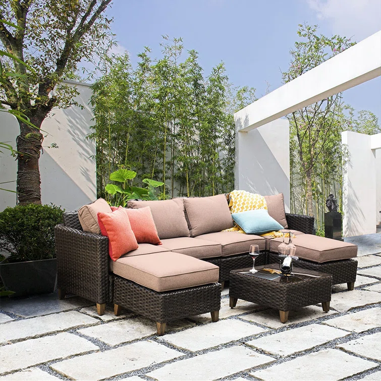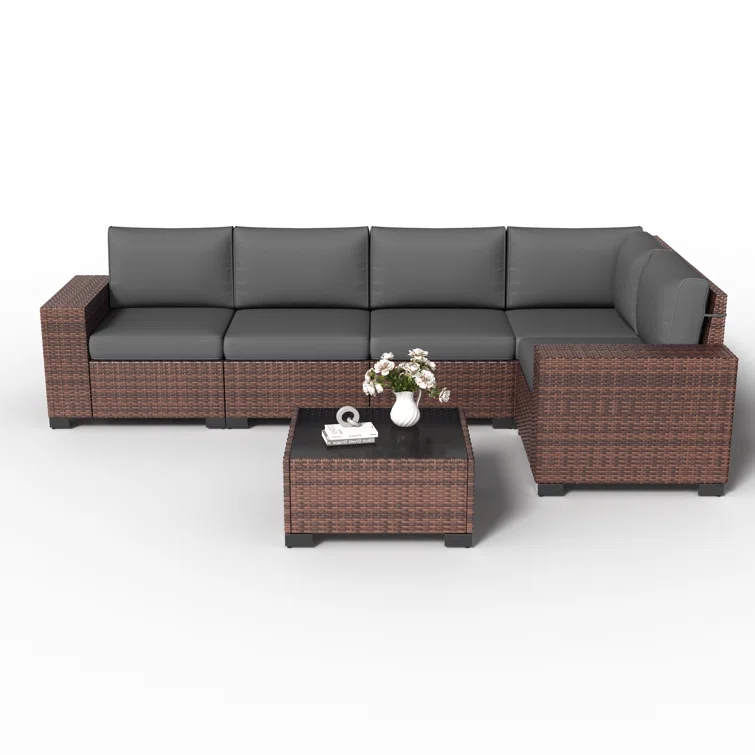 5 - Person Outdoor Rattan Sectional Seating Group With Cushions