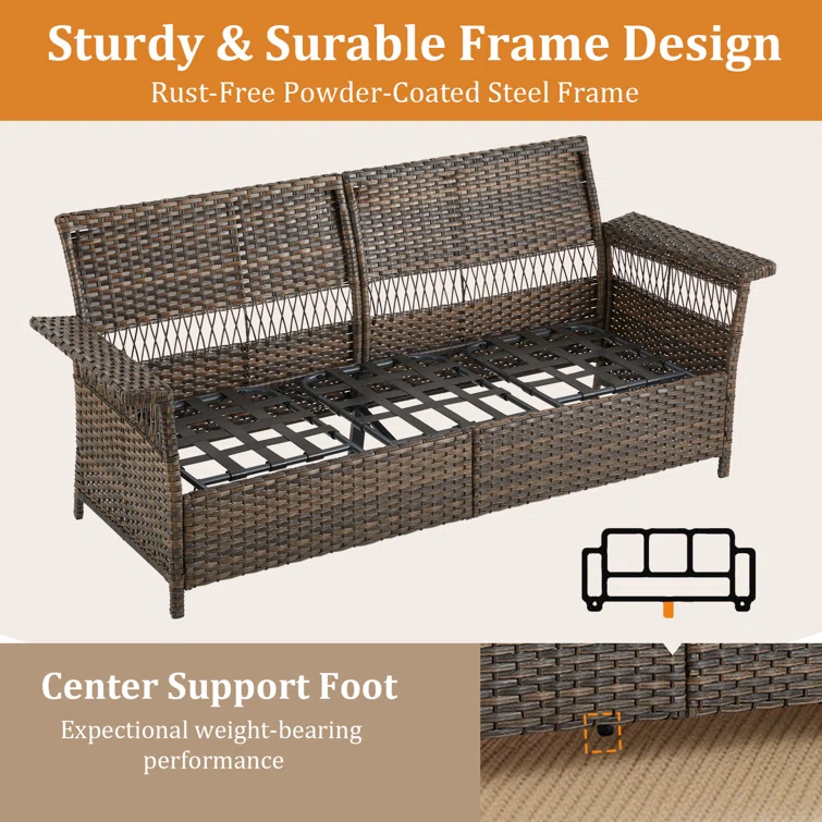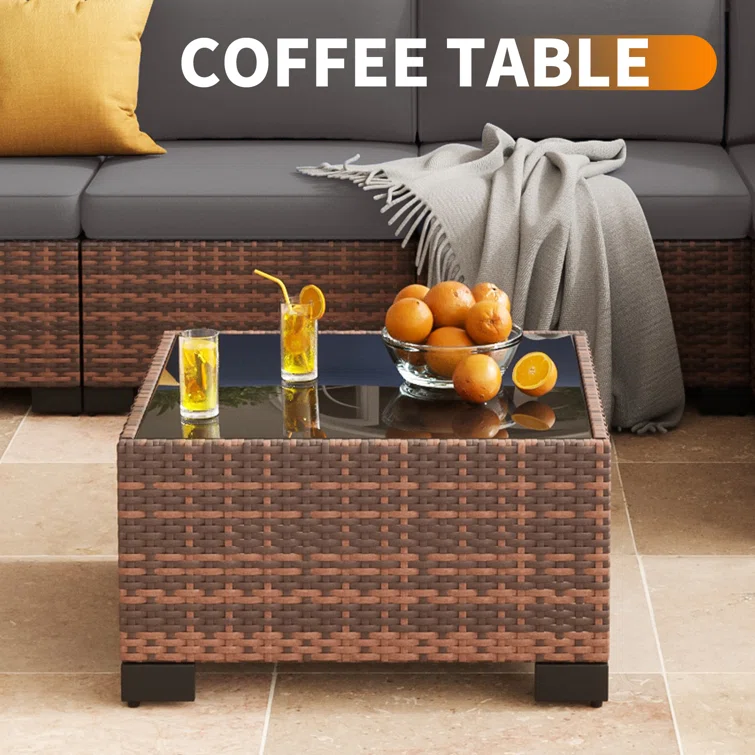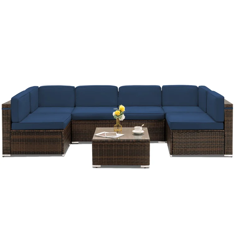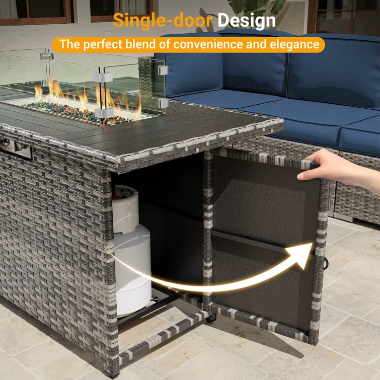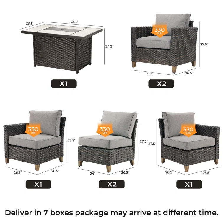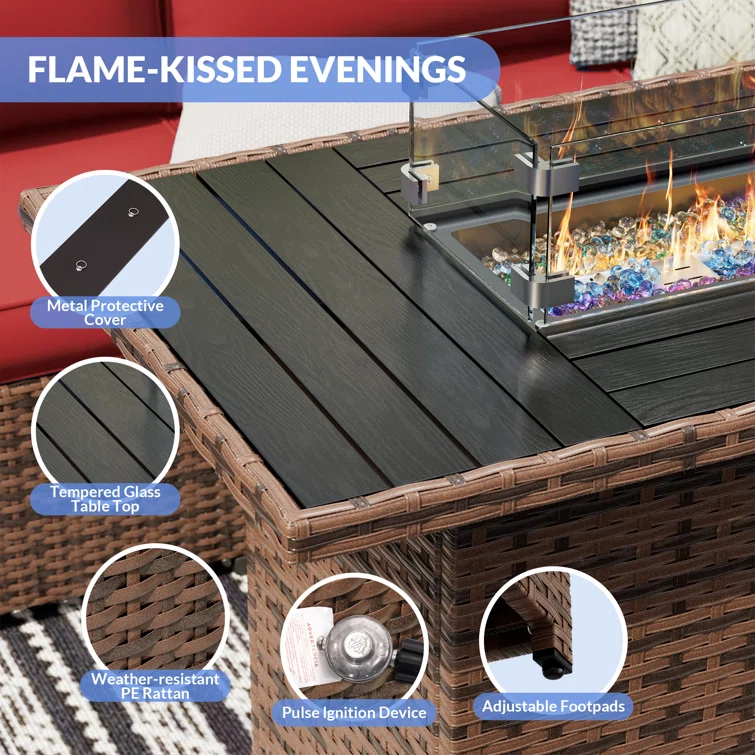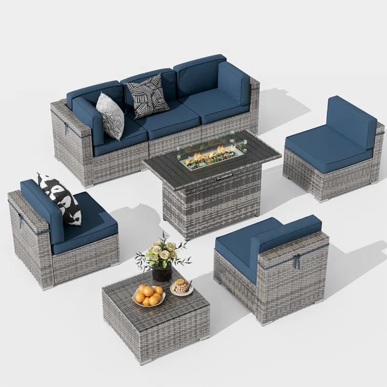 Melbourne 7-Pieces Wicker Sofa Seating Group with Fire Pit Table Conversation Set