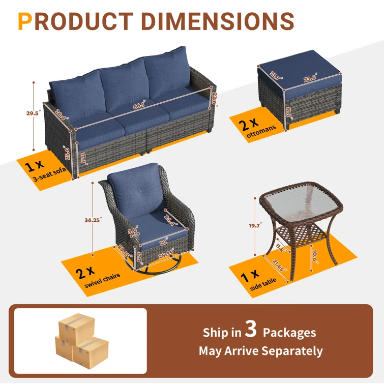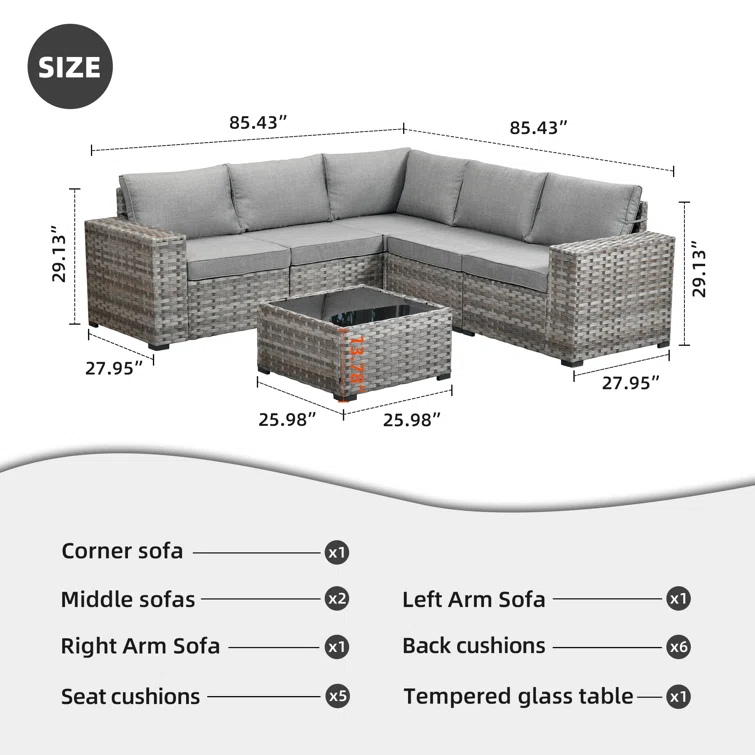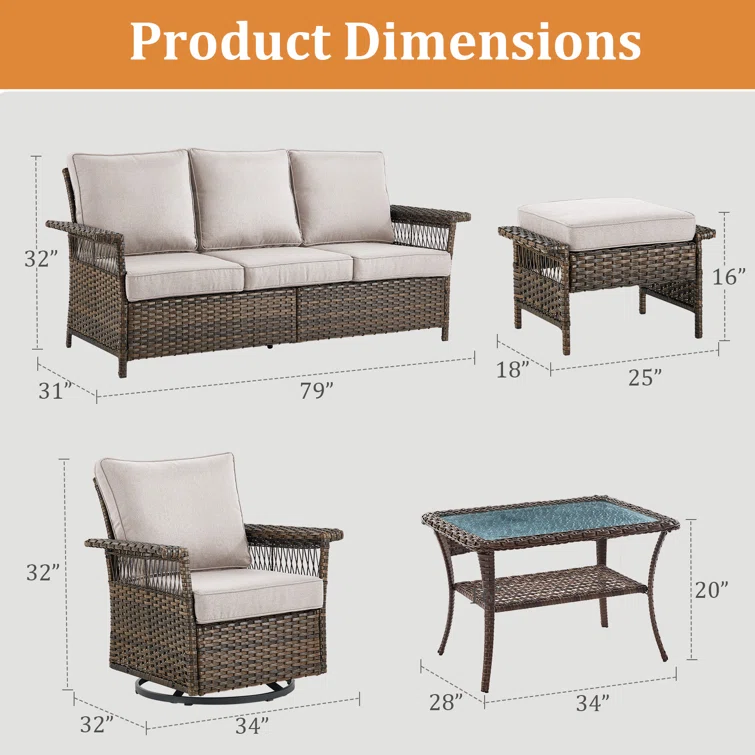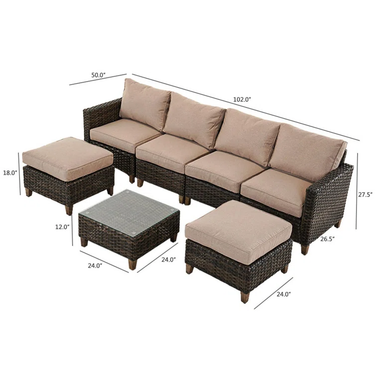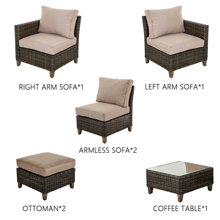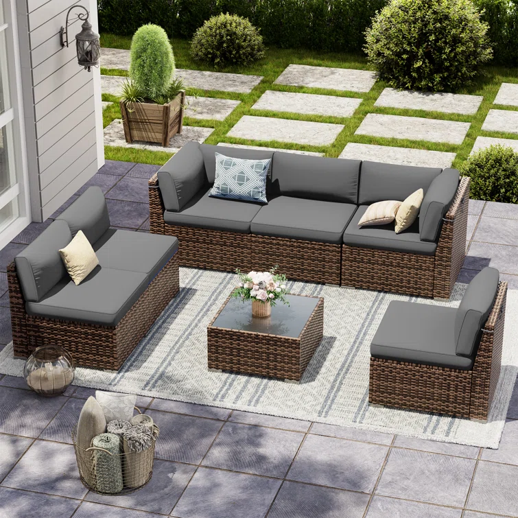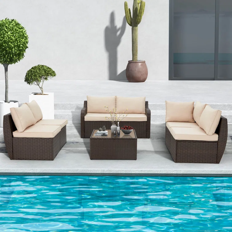 5 - Person Outdoor Seating Group with Cushions (Set of 6)