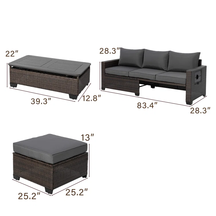 Albrechtice 6 - Person Outdoor Seating Group with Cushions (Set of 3)