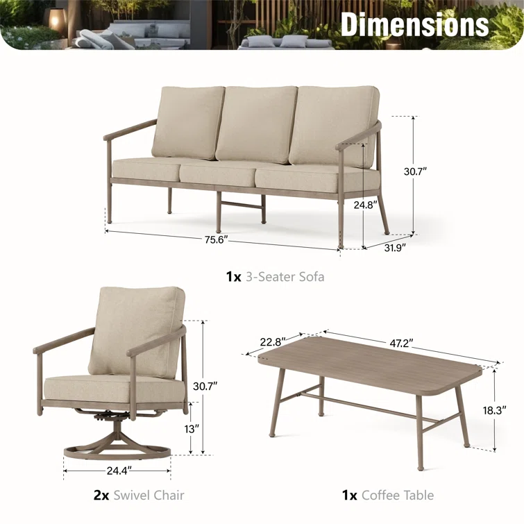 Arriona Metal 5 - Person Patio Conversation Set with Swivel Lounge Chairs
