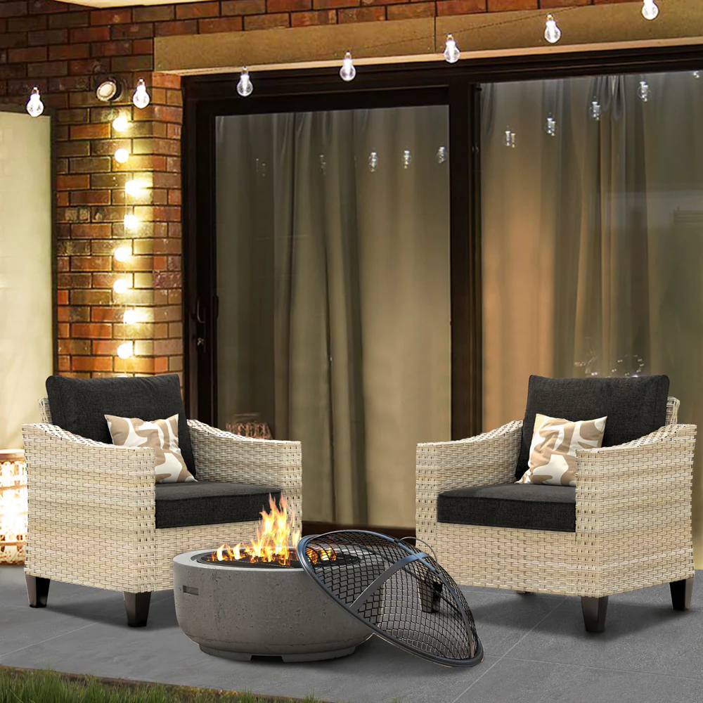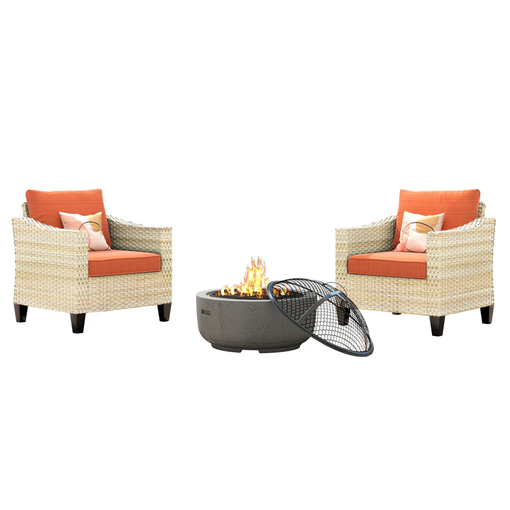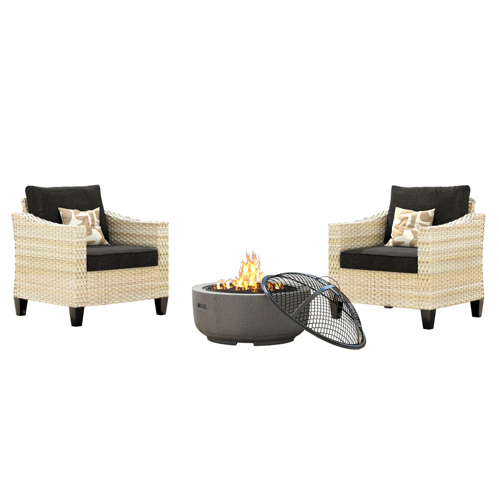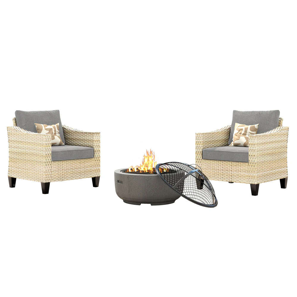 Ovios Athena Series Outdoor Patio Furniture Set with Fire Pit 3-Piece