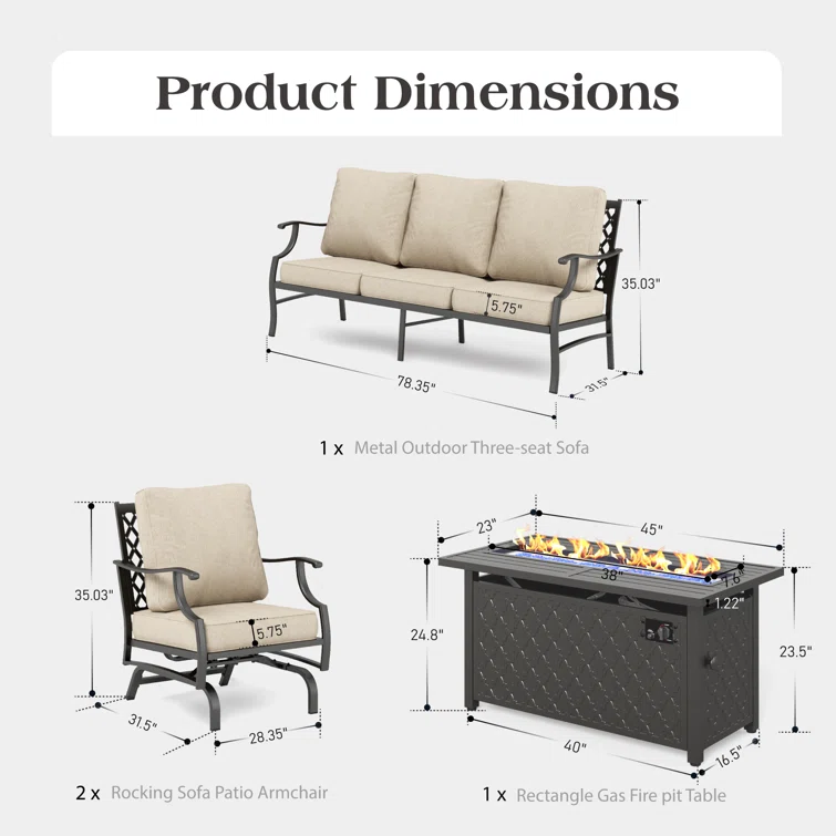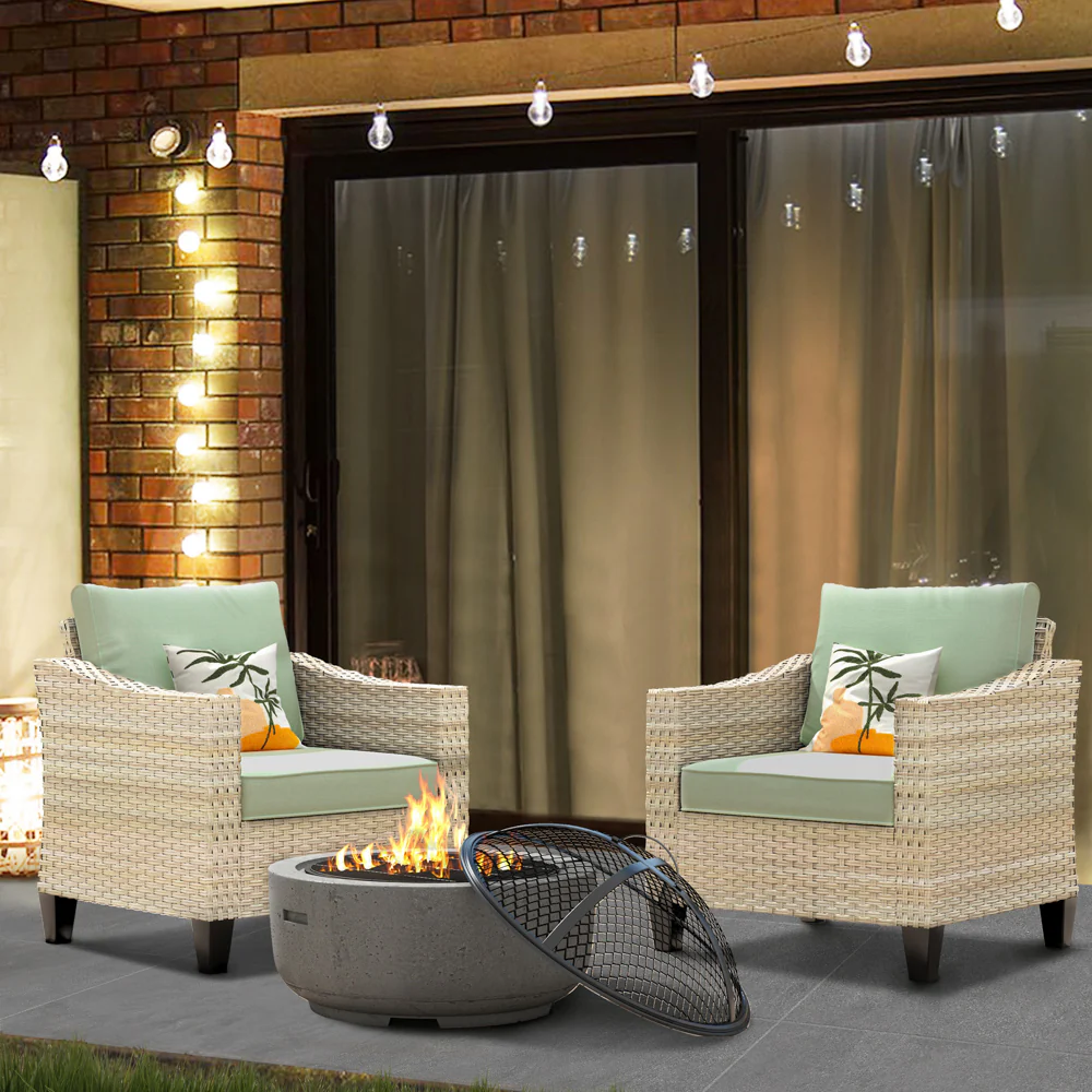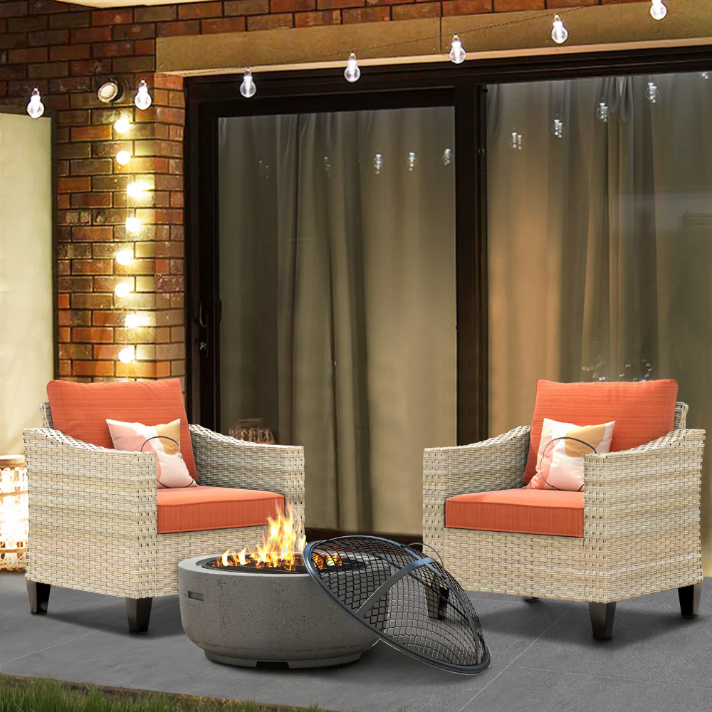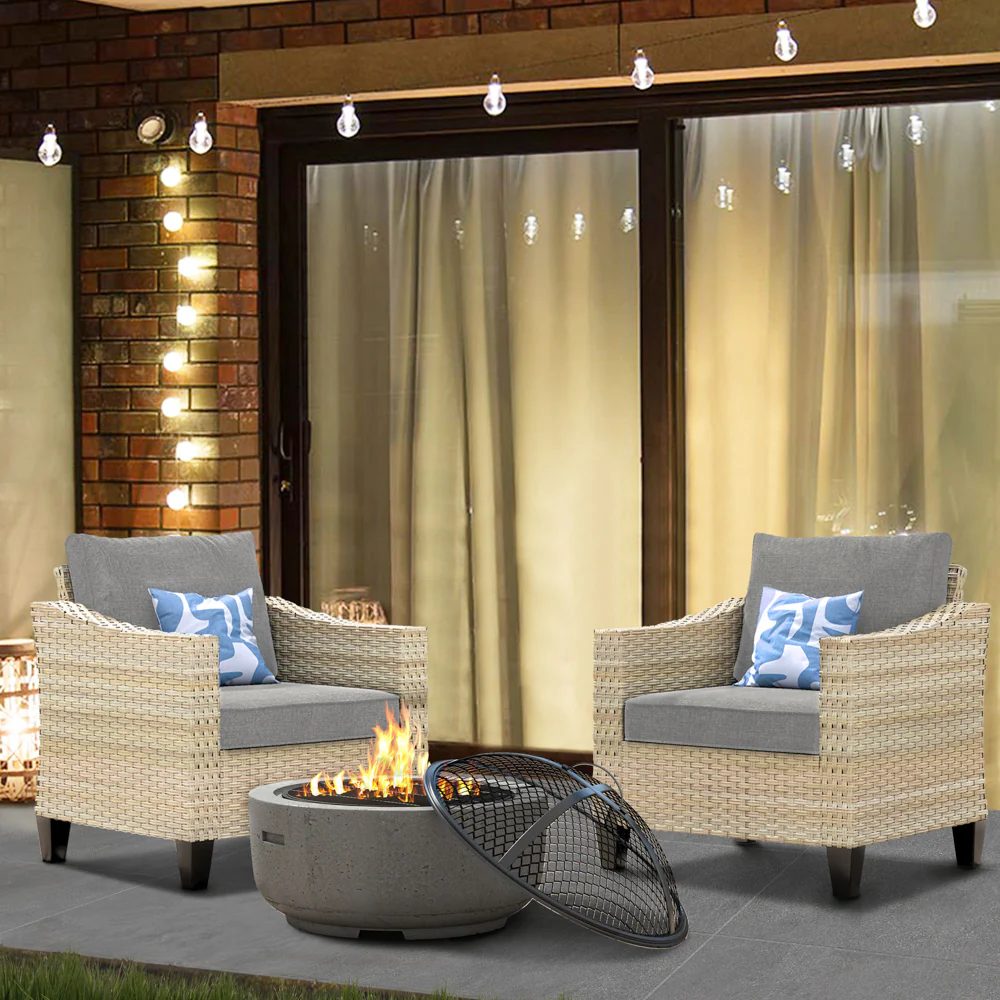 Ovios Athena Series Outdoor Patio Furniture Set with Fire Pit 3-Piece