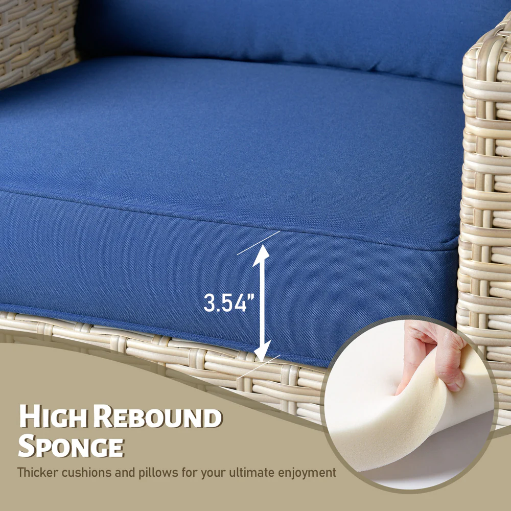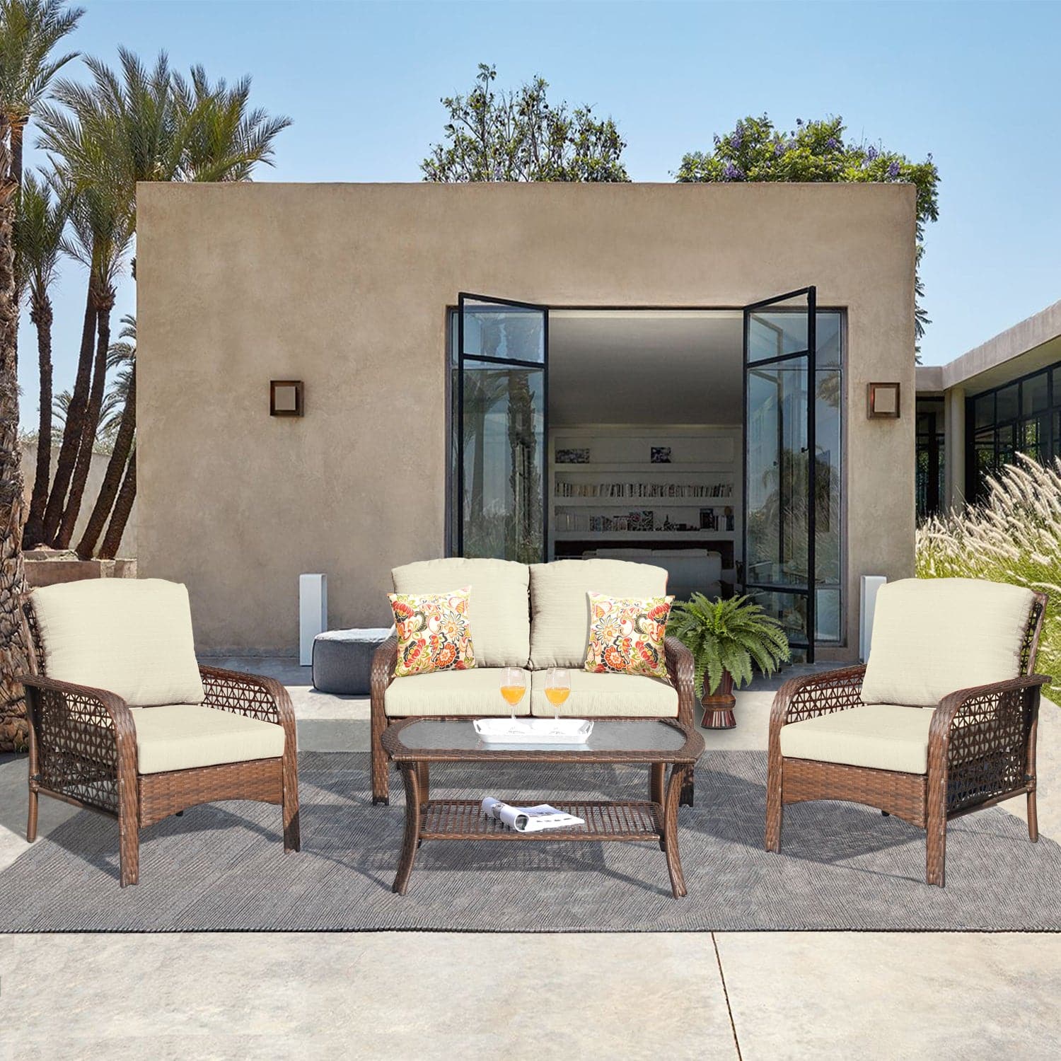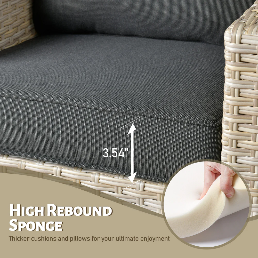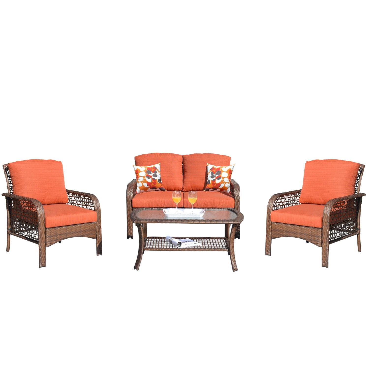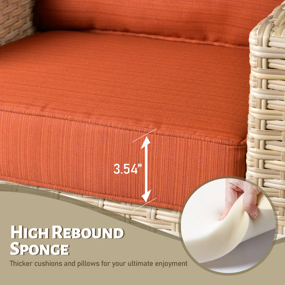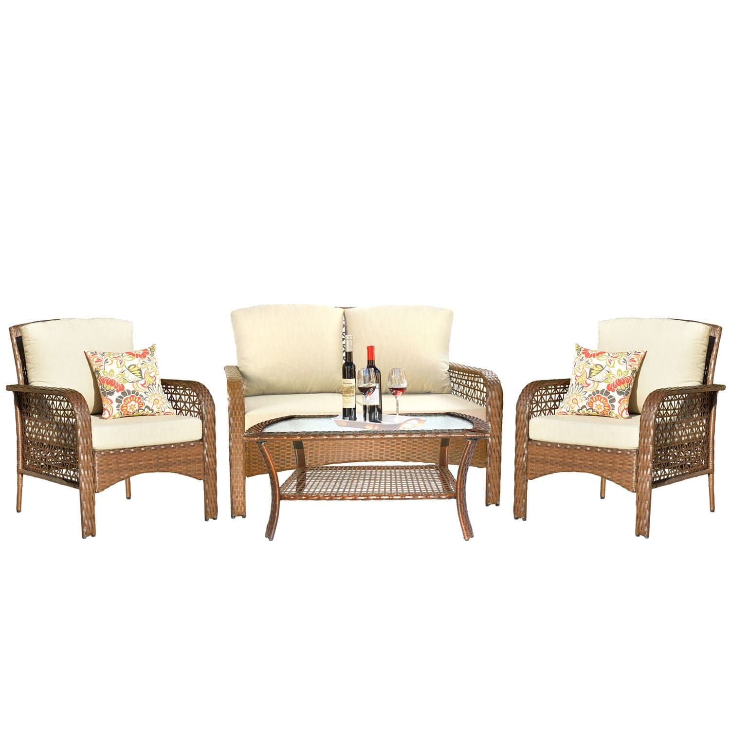 Ovios Patio Furniture 4-Piece High Back Brown Wicker Set with Cushion