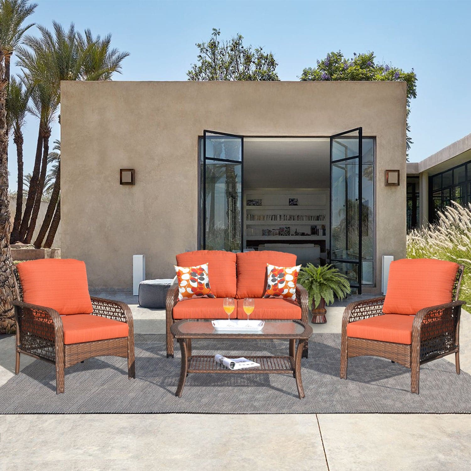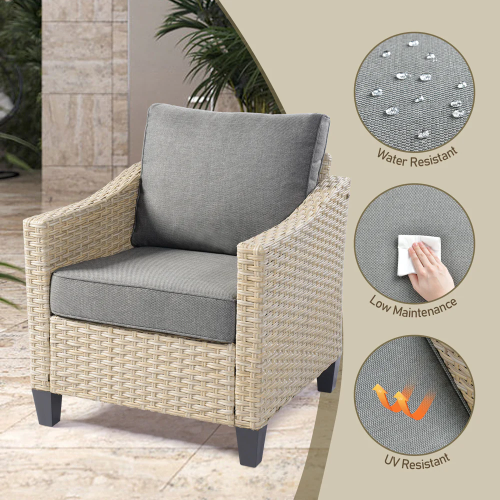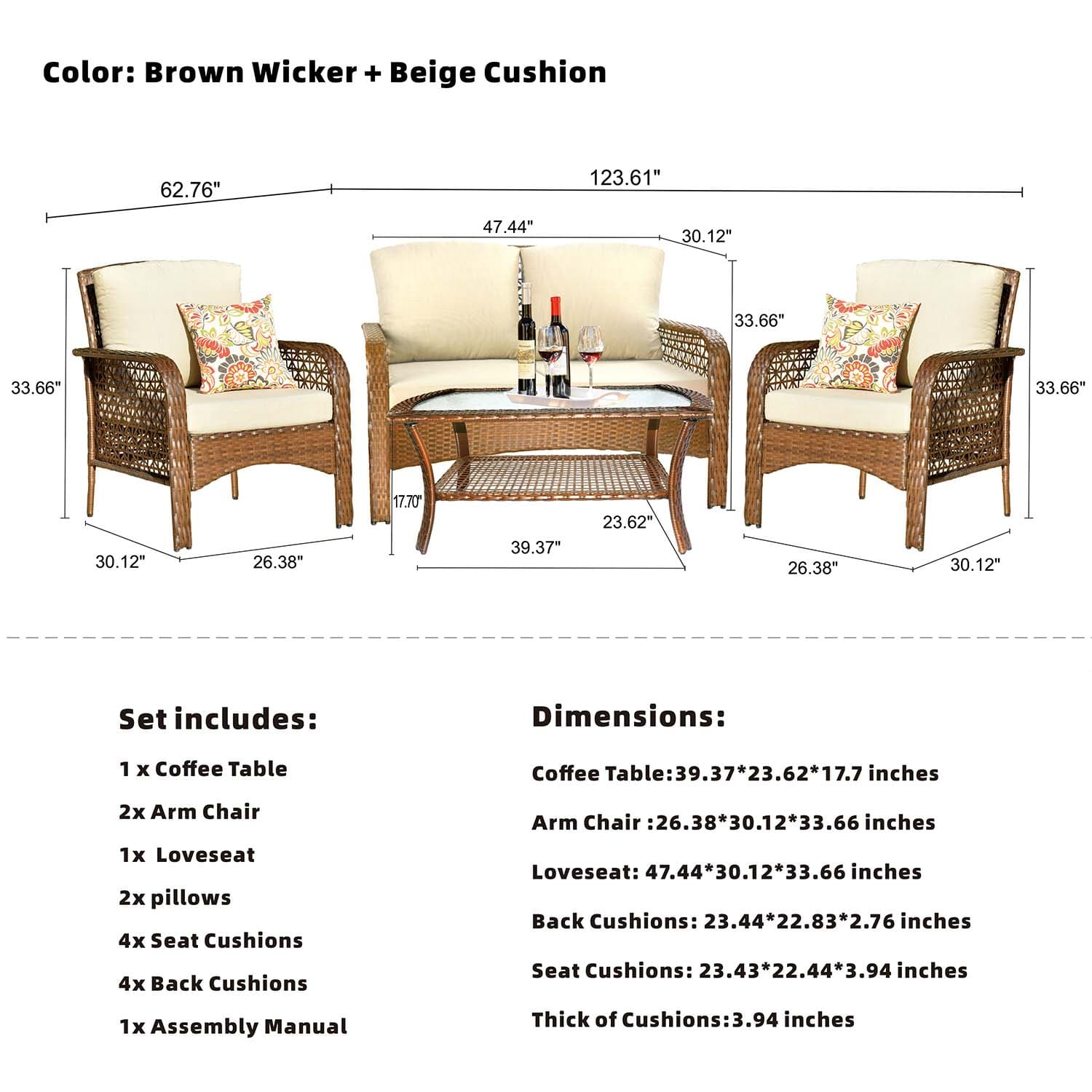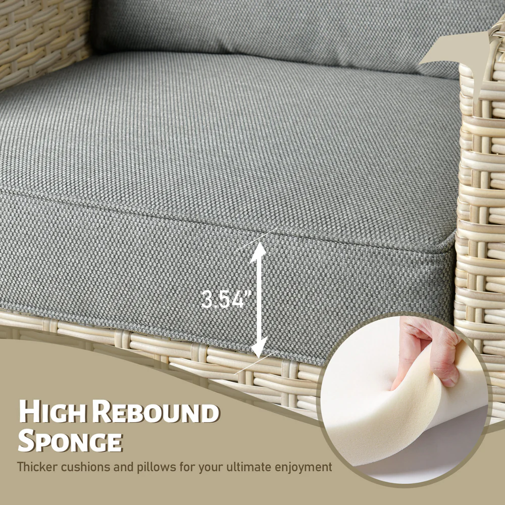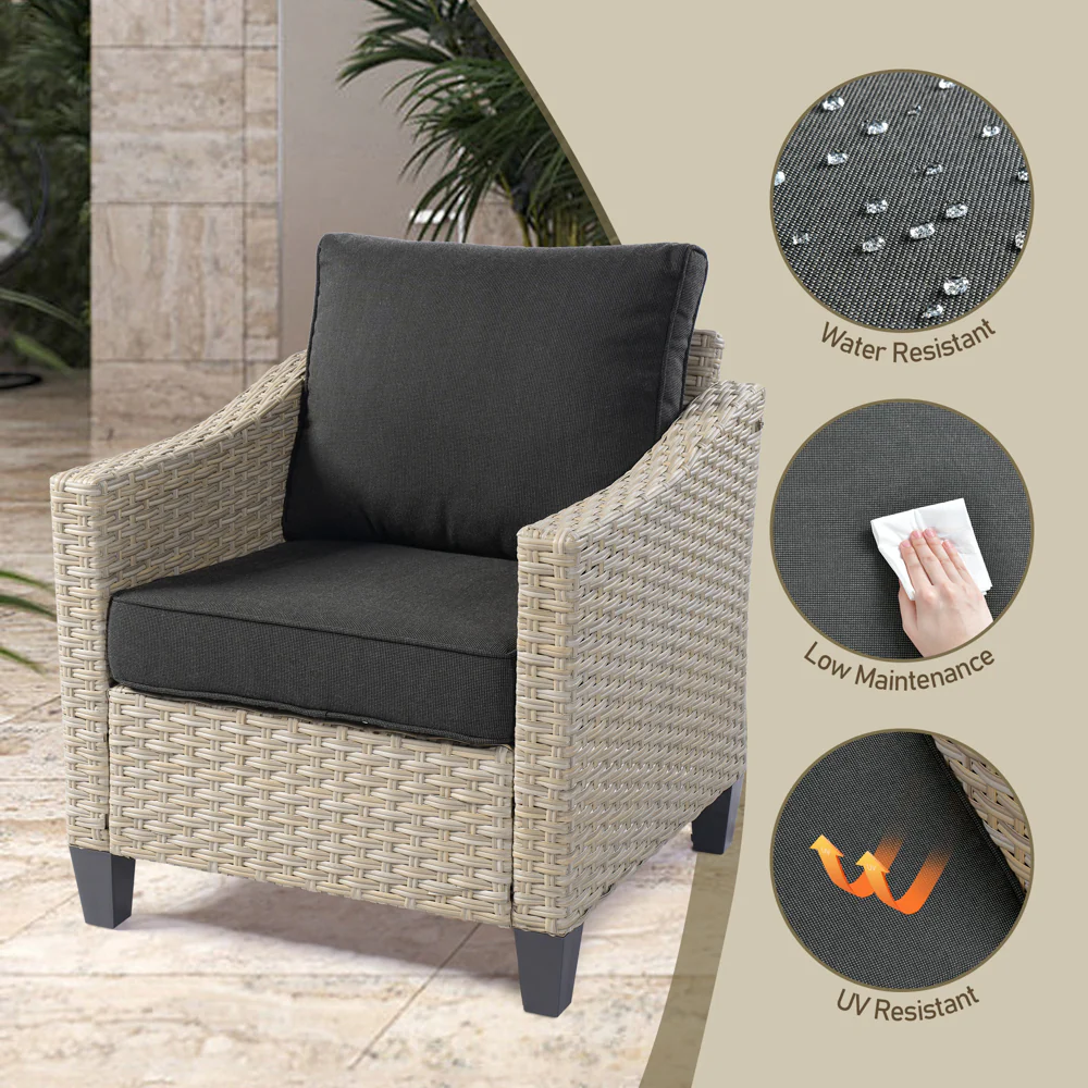 Ovios Patio Furniture 4-Piece High Back Brown Wicker Set with Cushion