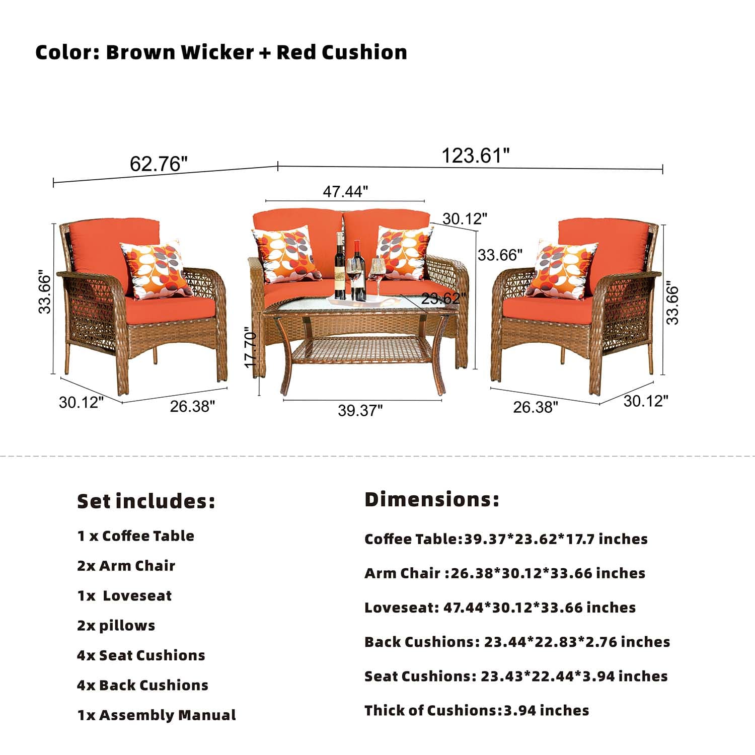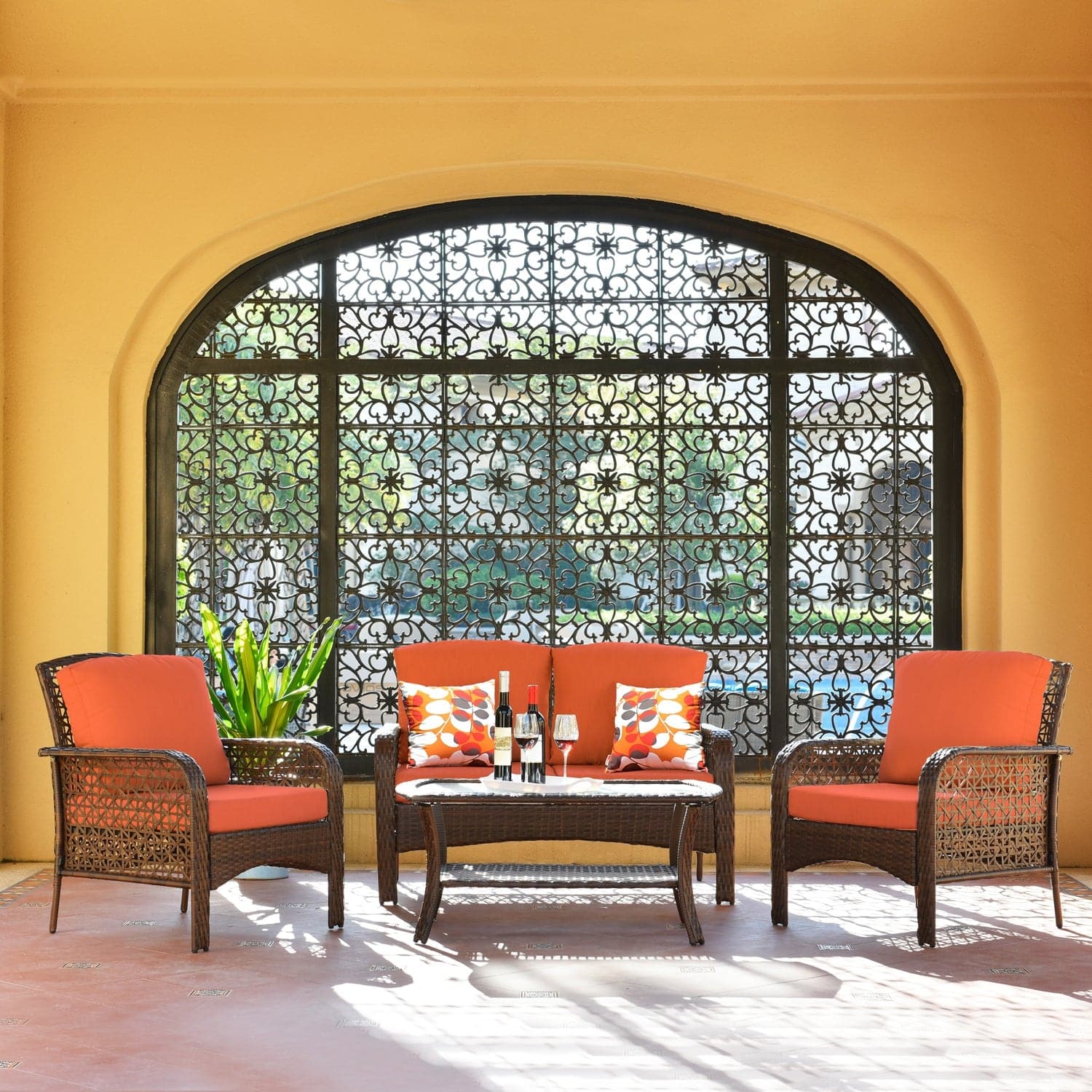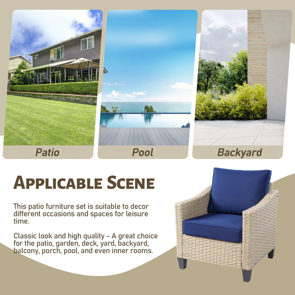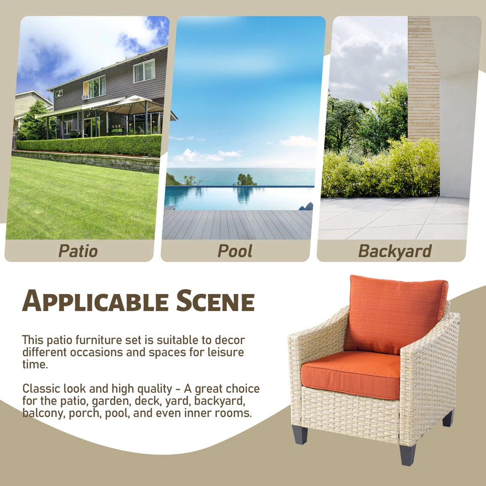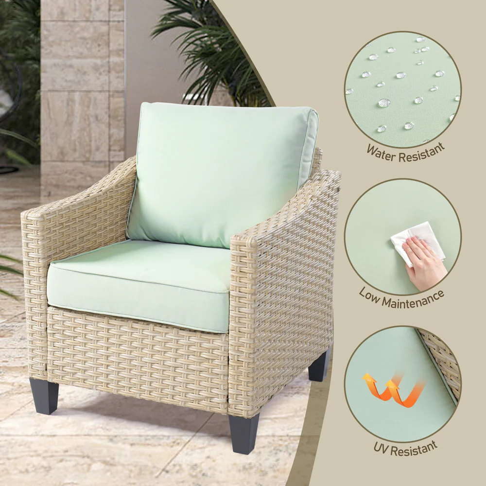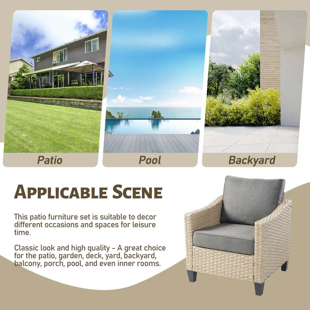 Ovios Patio Furniture 4-Piece High Back Brown Wicker Set with Cushion