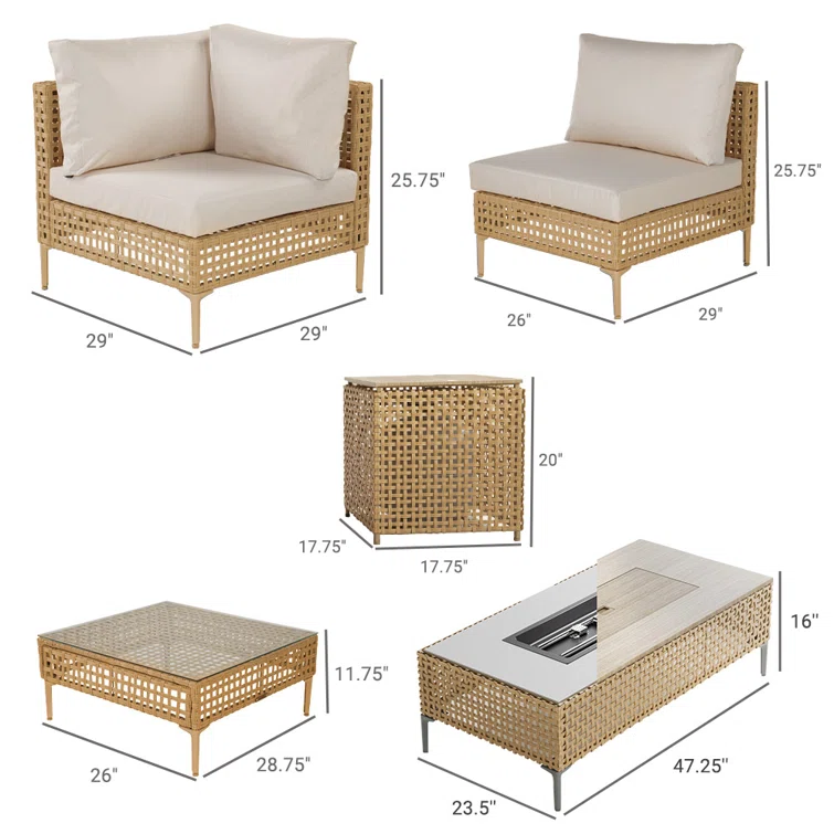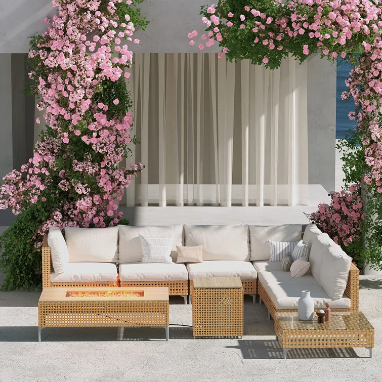 9-Piece Outdoor Furniture Sectional Seating Group for 6 Person with Fire Pit Table