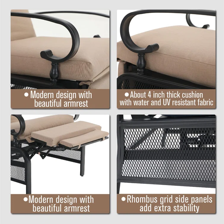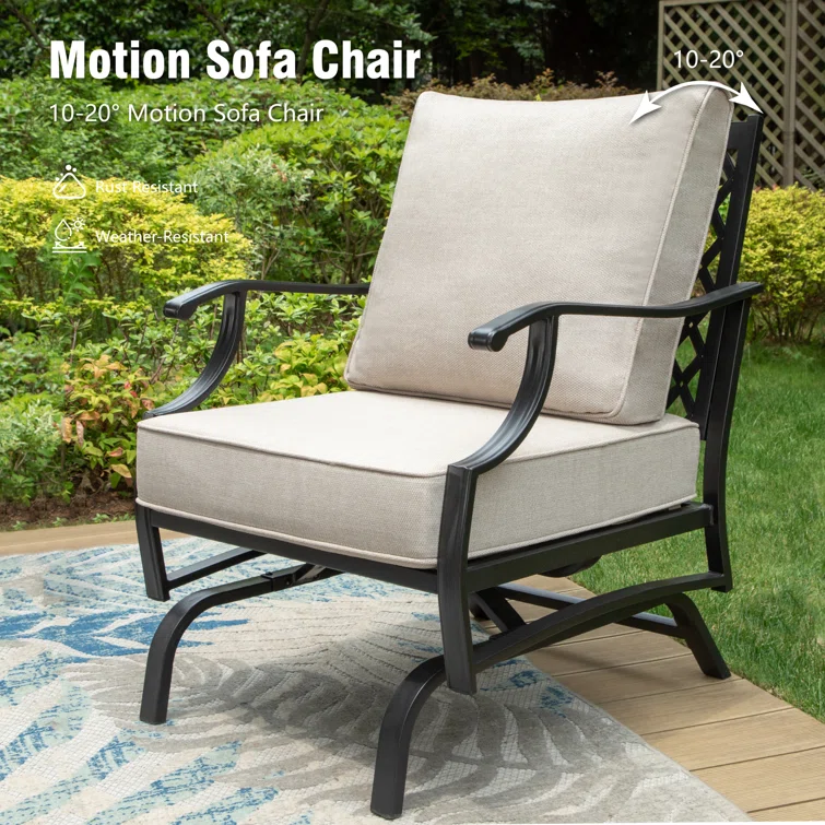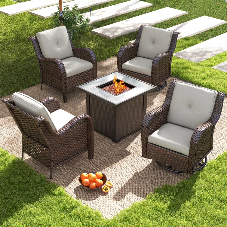 Asfand 5 - Person Patio Conversation Set with Rocking Lounge Chairs & Firepit Table