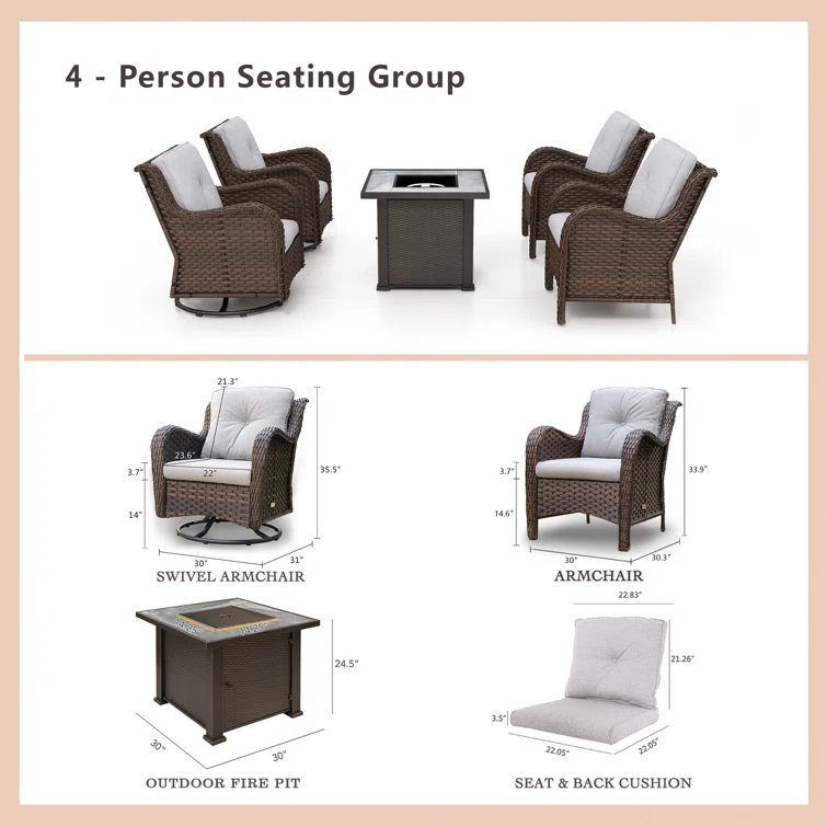 Rian 4 - Person Outdoor Seating Group with Cushions